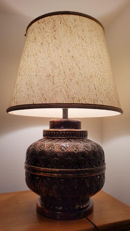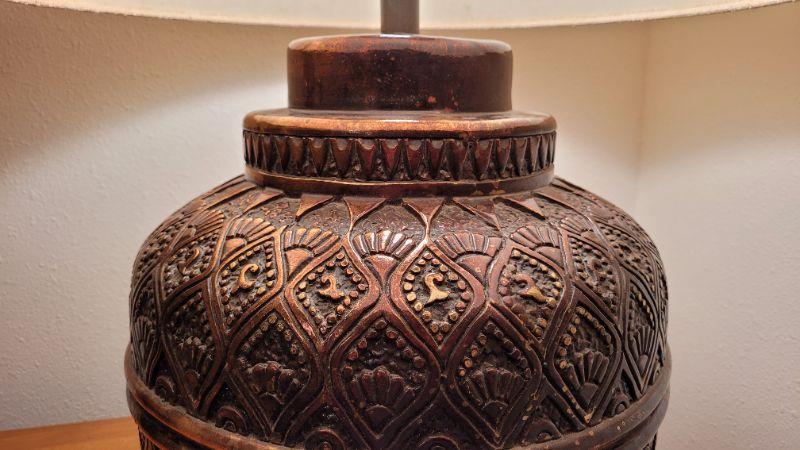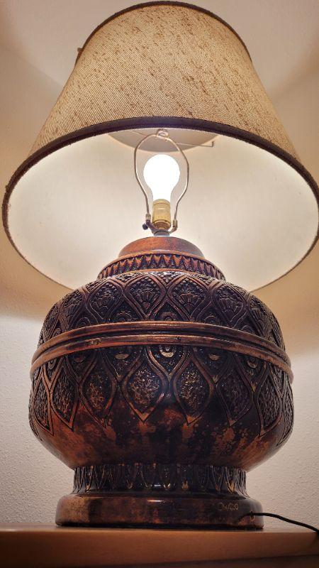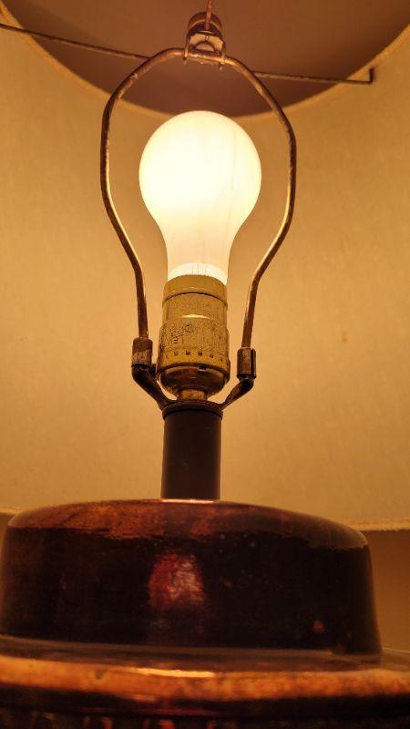 Lot 983: 30" Tall Copper Glaze Ceramic Table Lamp by HOUSE OF LAMPS (shade discoloration)