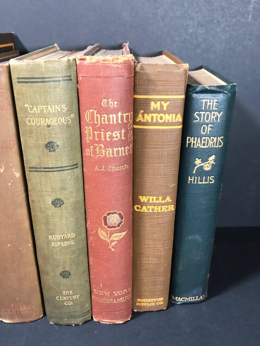 LOT 3D: Antique Books - Rudyard Kipling's Captain Courageous (1897), Willa Cather's My Antonia (1918), Rev. Alfred J Church's The Chantry Priest of Barnet (1884) & More
