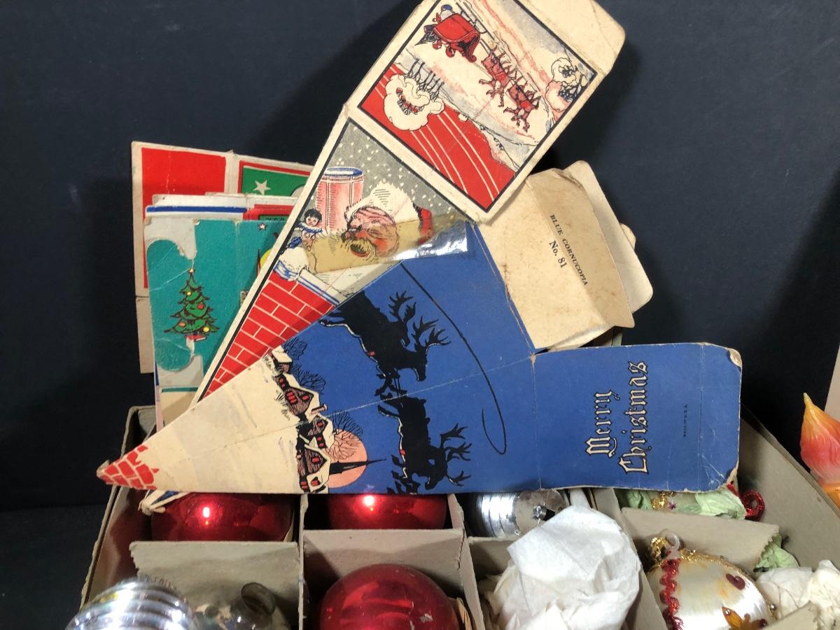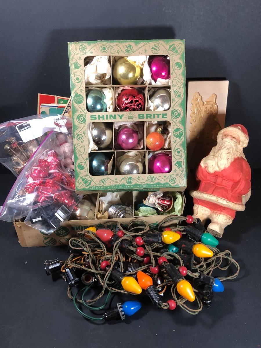 LOT 21D: Vintage Christmas Collection - Ornaments, Paper Mache Pulp Santa & More