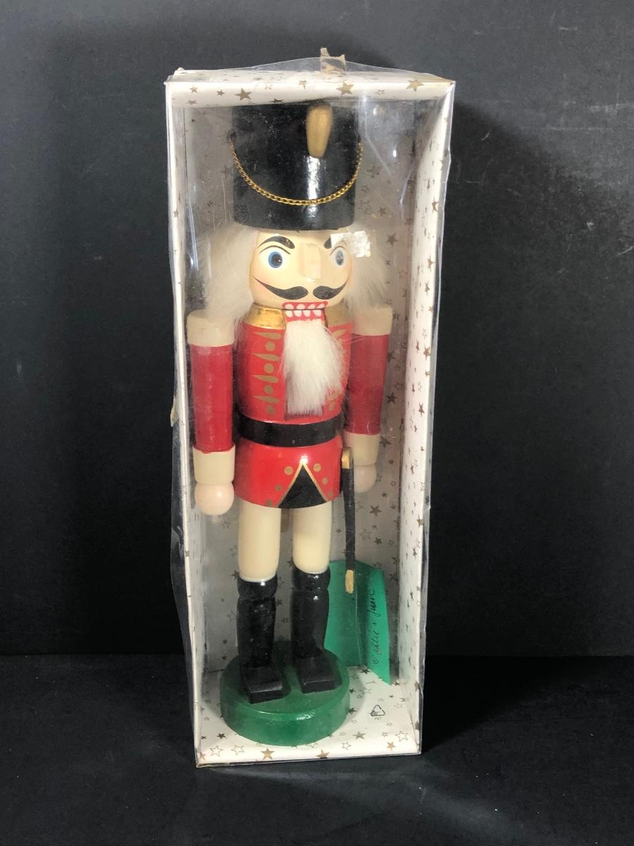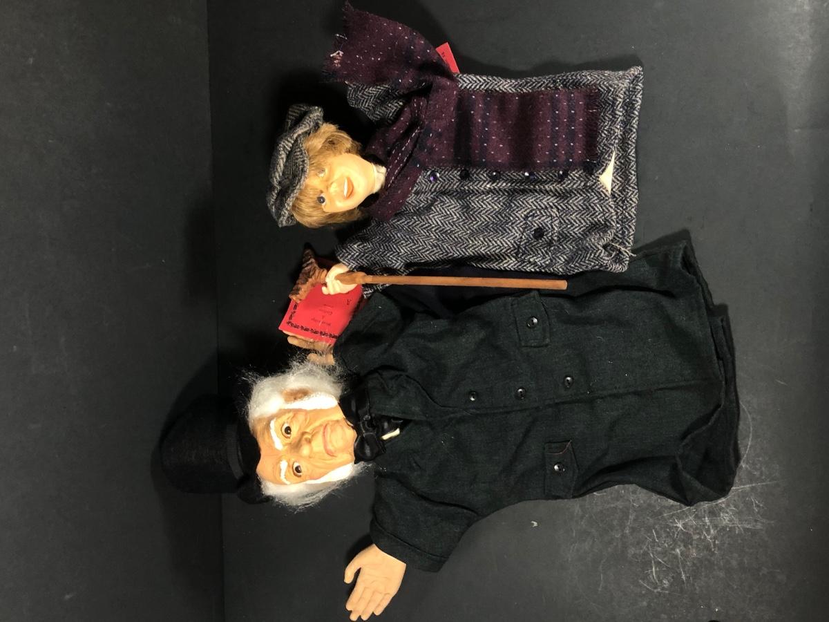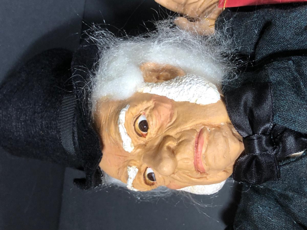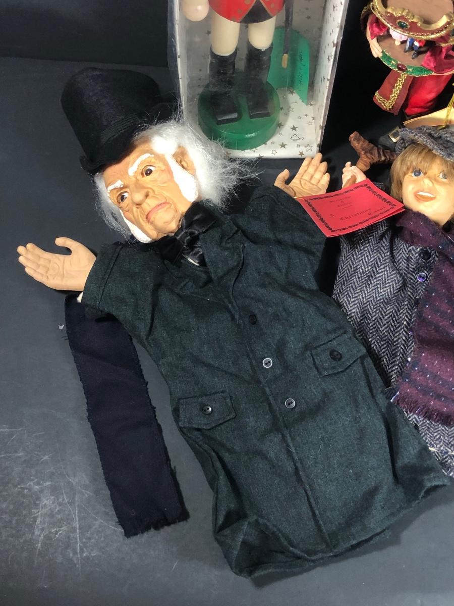 LOT 22D: Vintage Strawbridge & Clothier A Christmas Carol Scrooge & Tiny Tim Puppets, Kurt S Adler Santa Figure & Nutcracker in Box