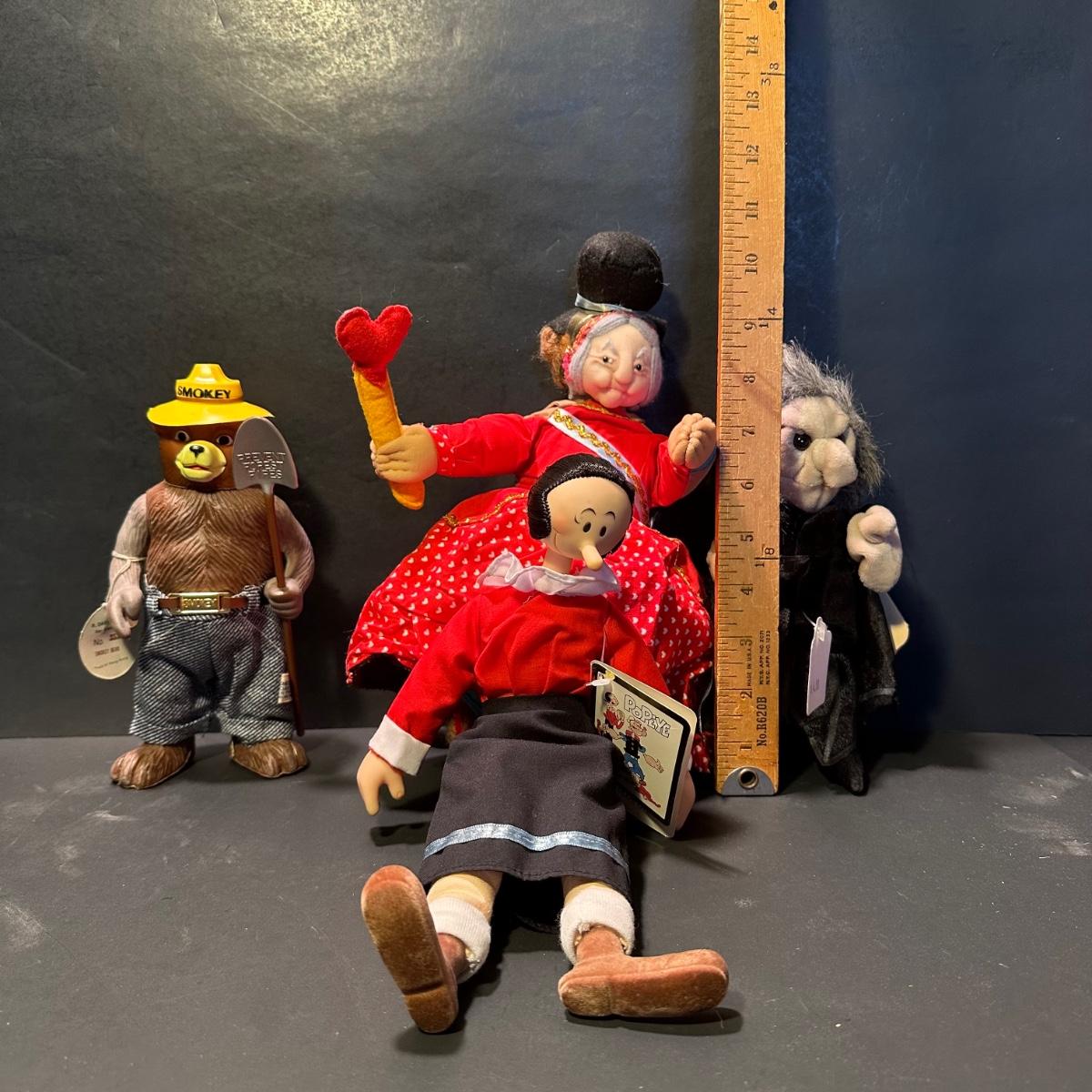 LOT 45L: Collection Of Vintage Dolls - Smoky The Bear, Popeye, Alice In Wonderland & More