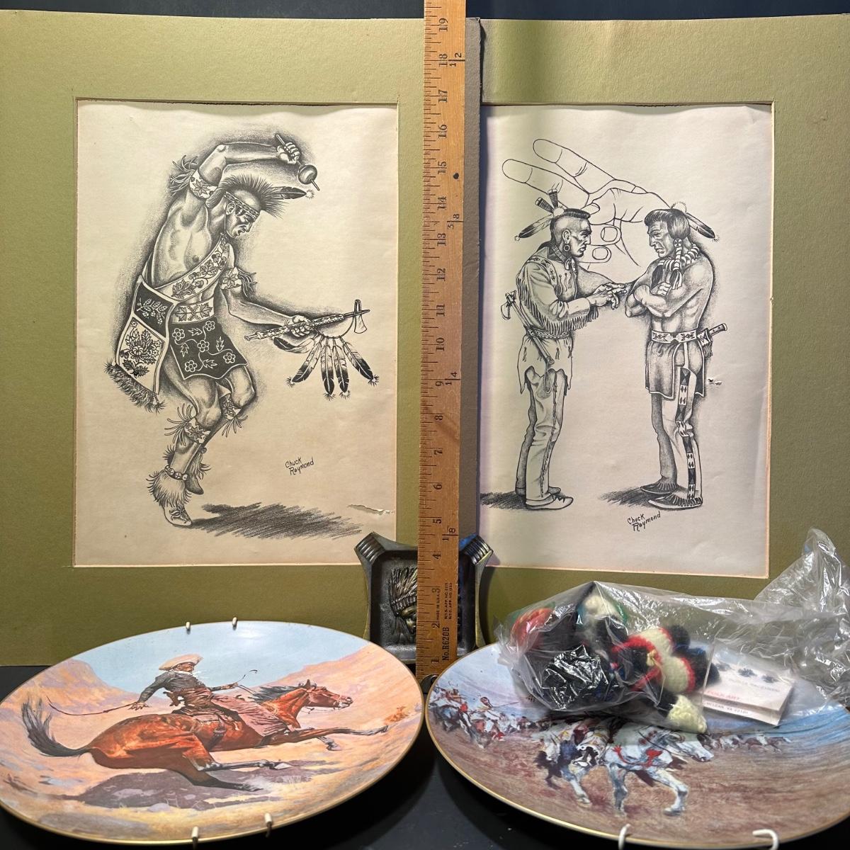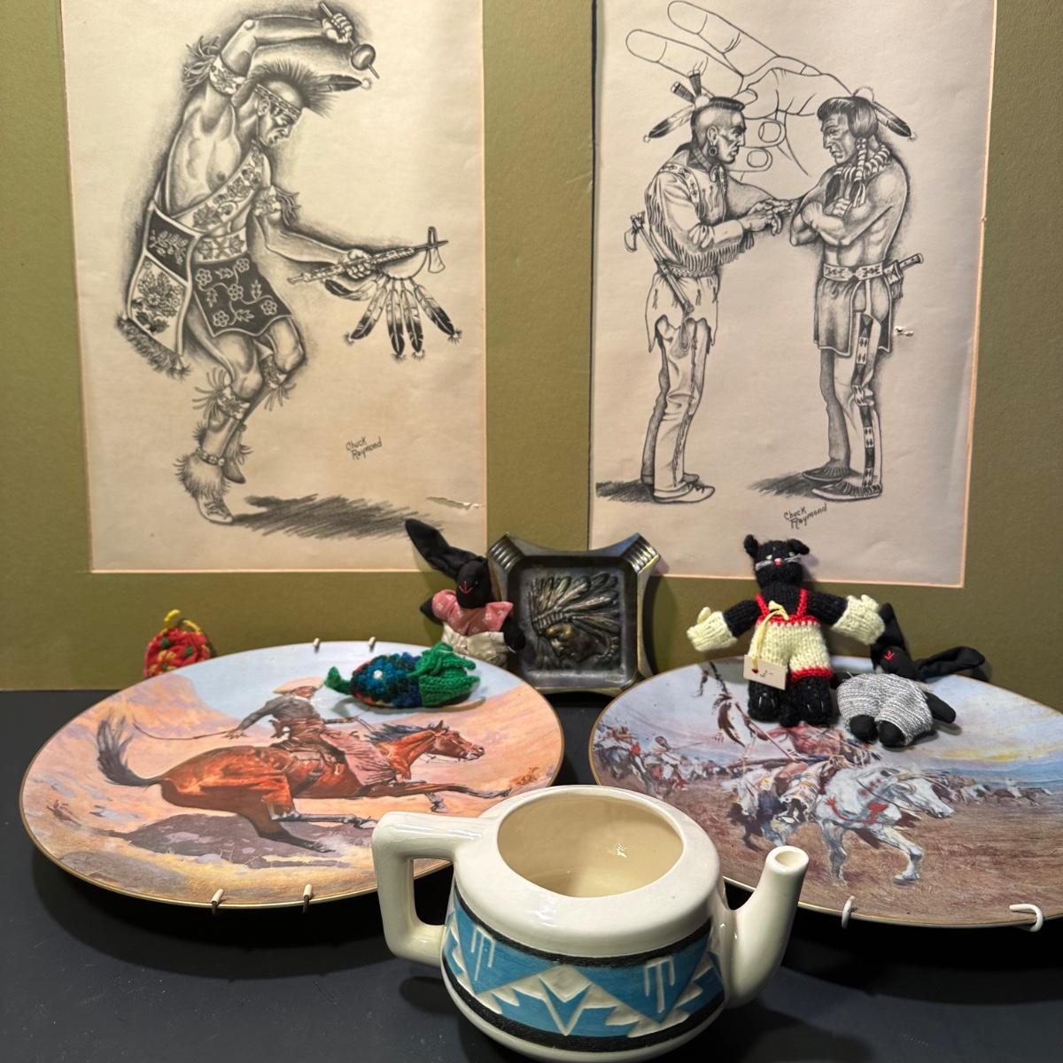 LOT 53L: Native American Collection - Drawings, Decorative Plates, Ashtray, Pottery & More