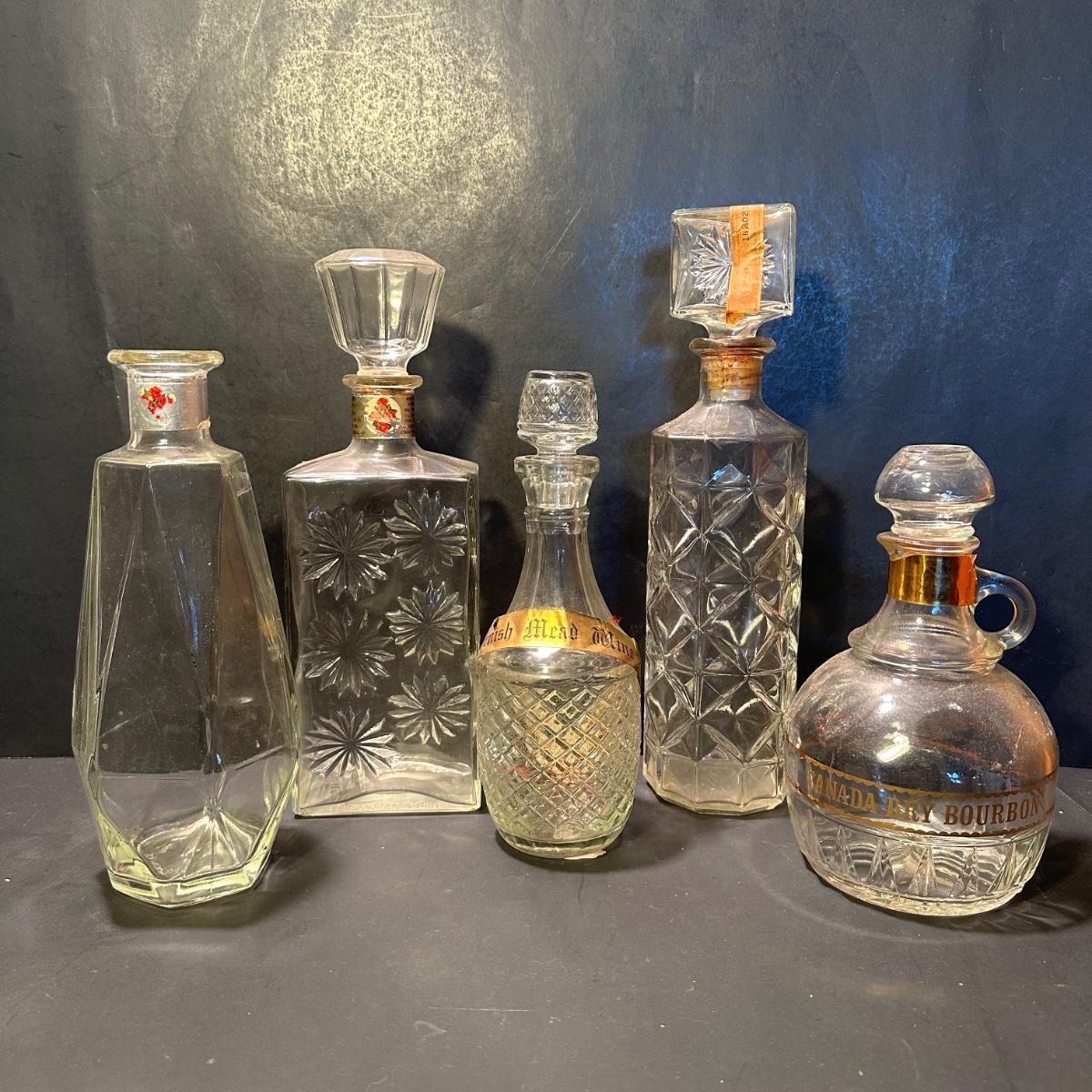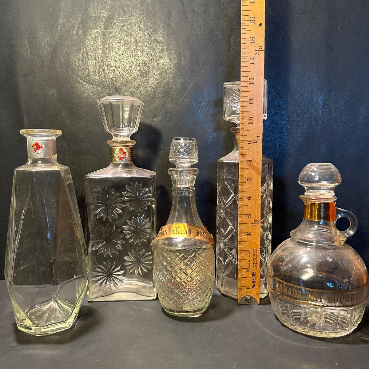 LOT 55L: Vintage Clear Glass Liquor & Wine Bottles
