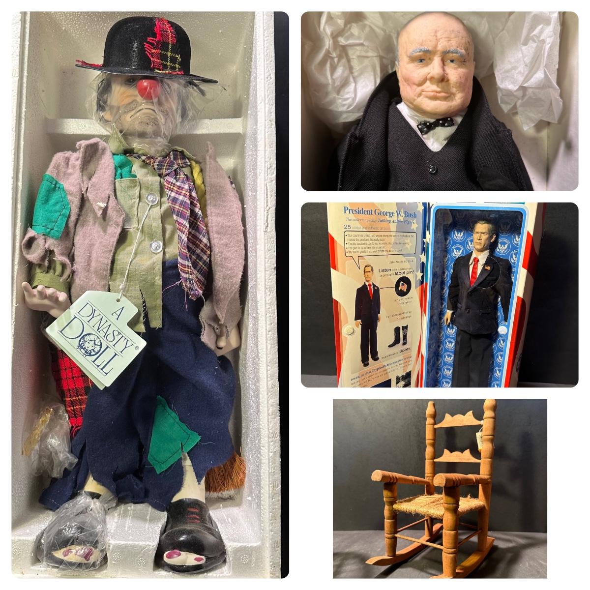 LOT 63L: New In Box Doll Collection w/ Doll Chairs - Dynasty, Princess Dolls Of The World, President George W. Bush & More