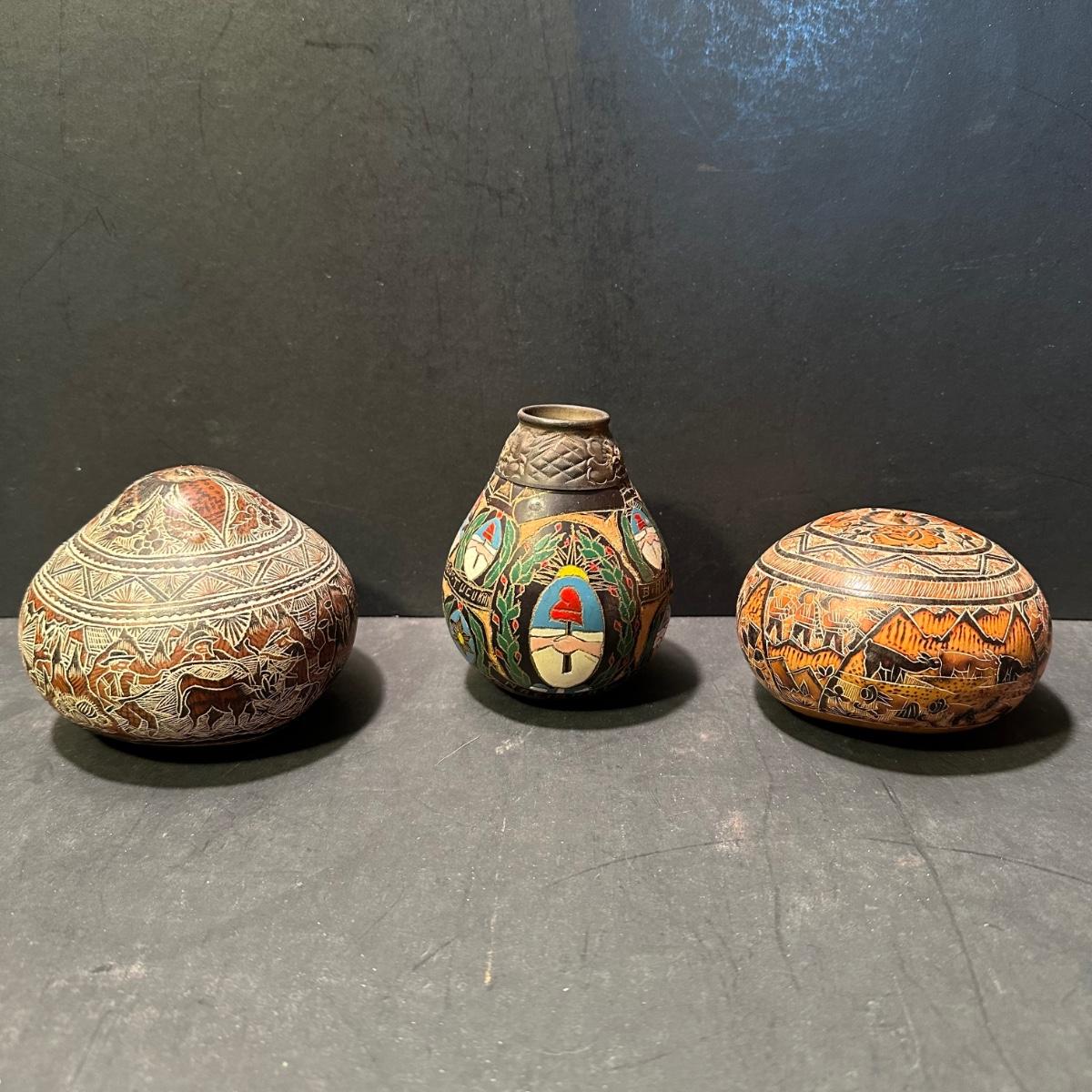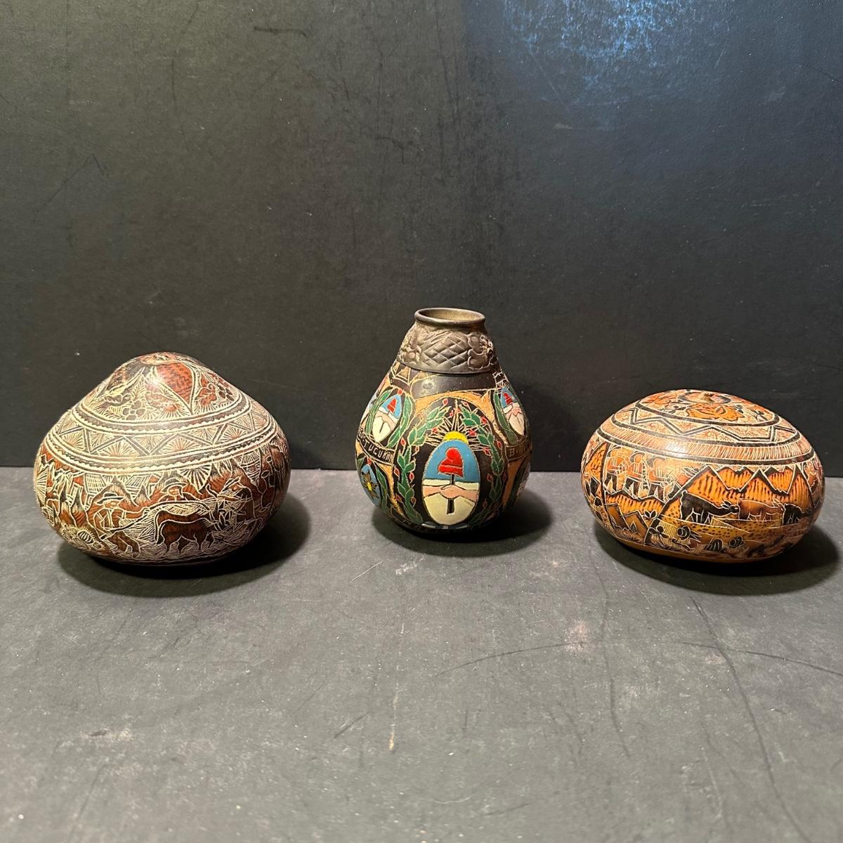 LOT 78L: Hand Carved Peruvian Gourds