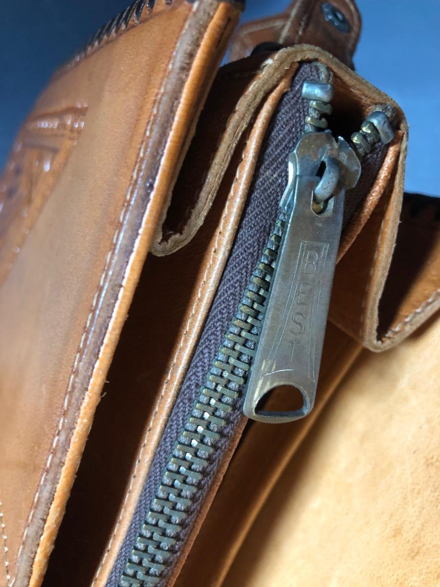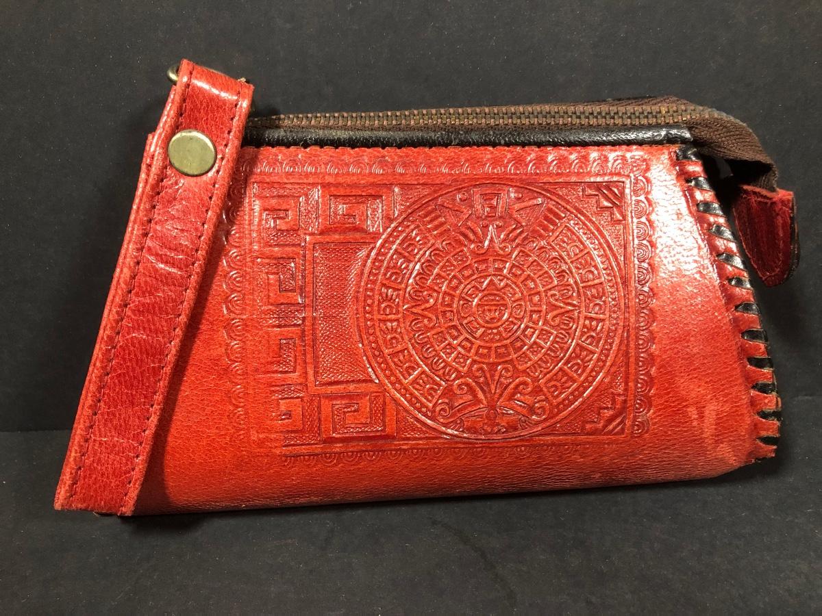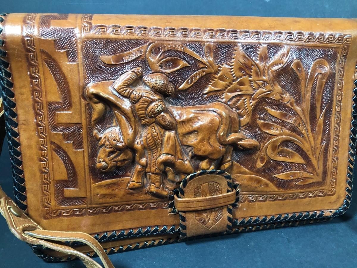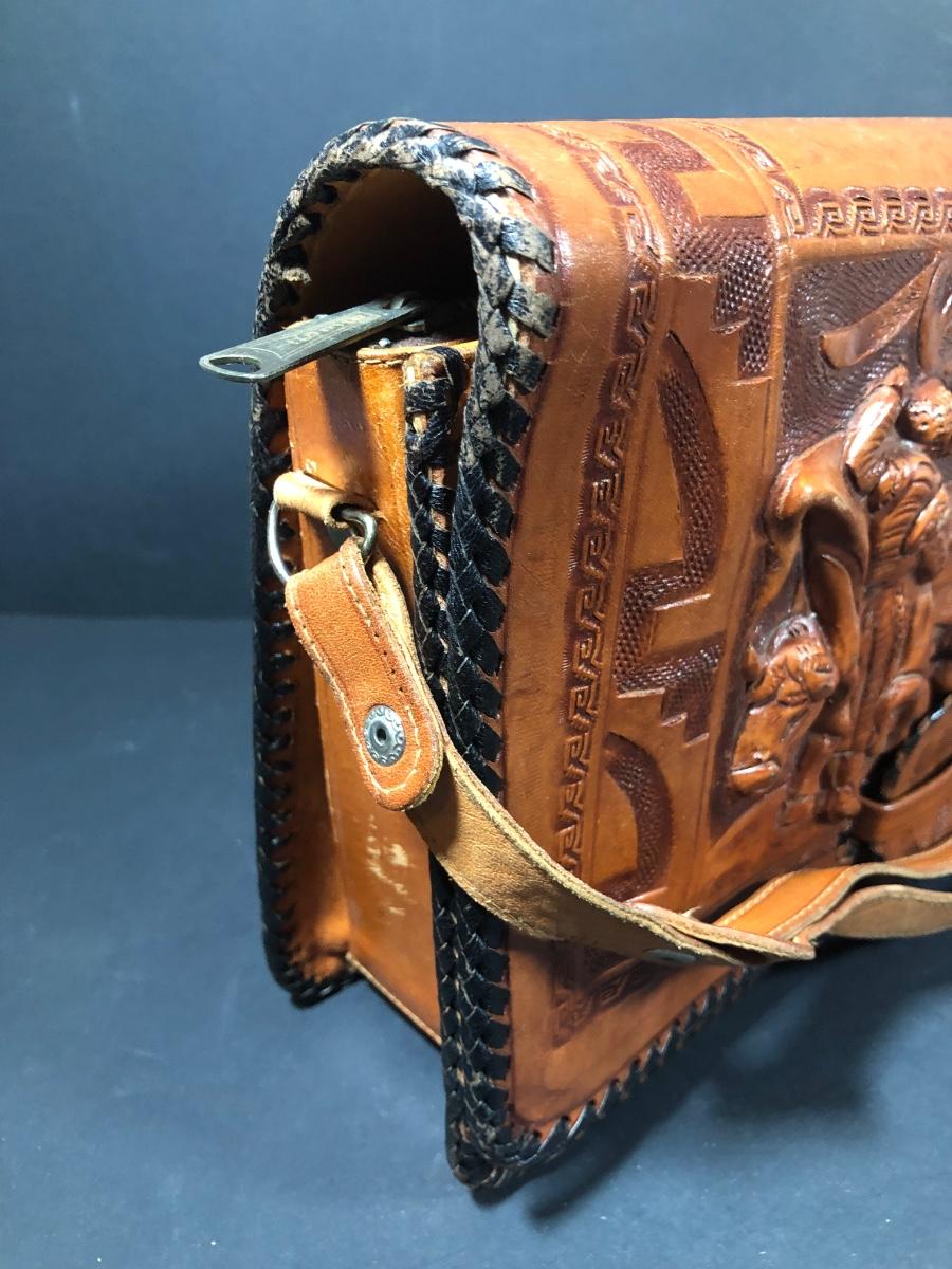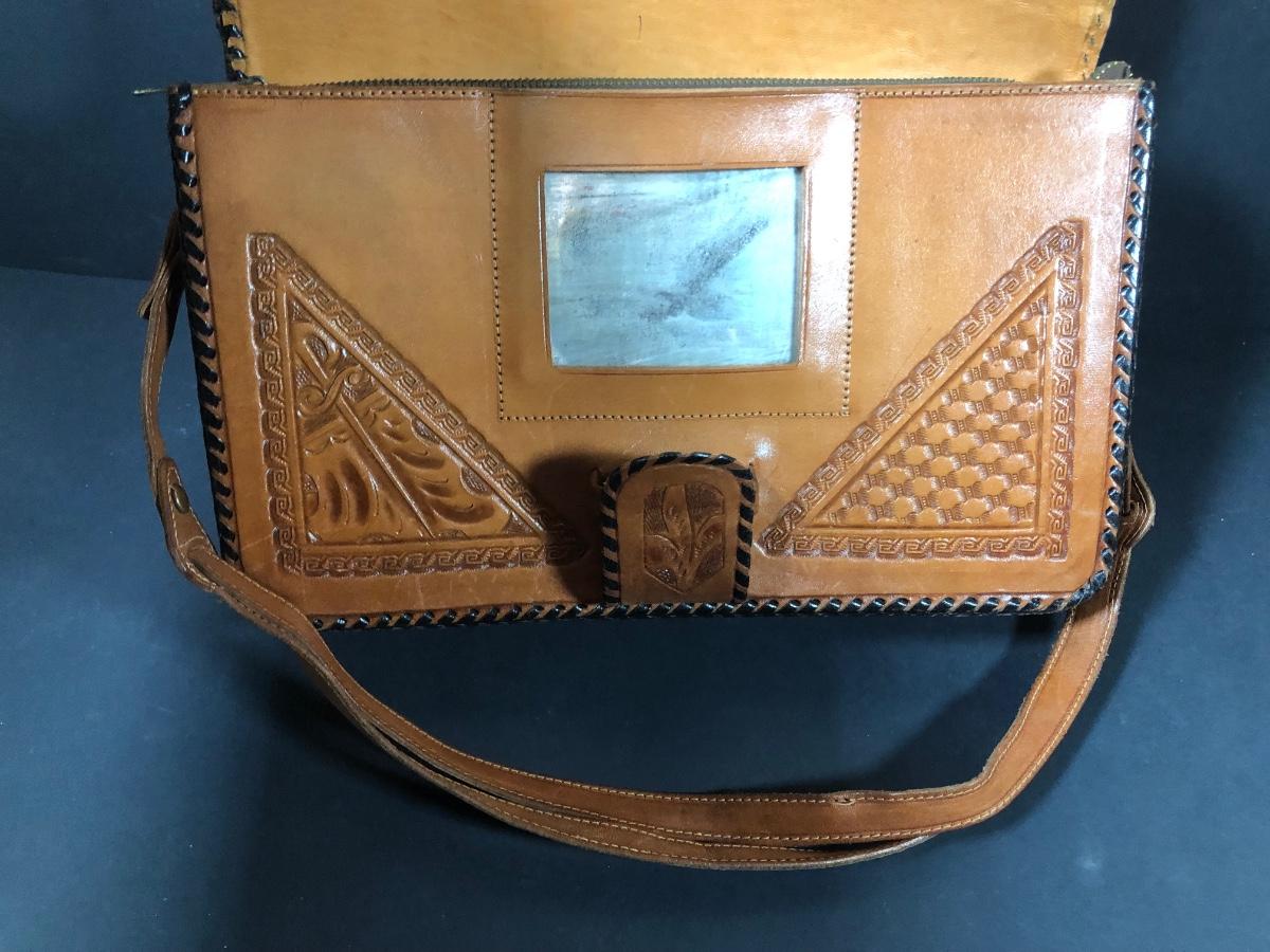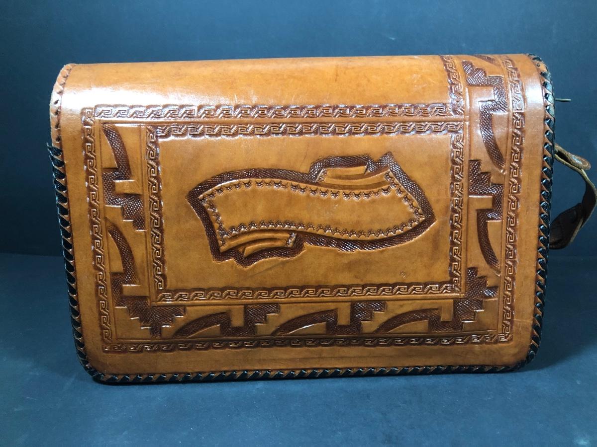 LOT 103D: Vintage Sculpted Leather Hand Bag w/ Aztec Coin Purse