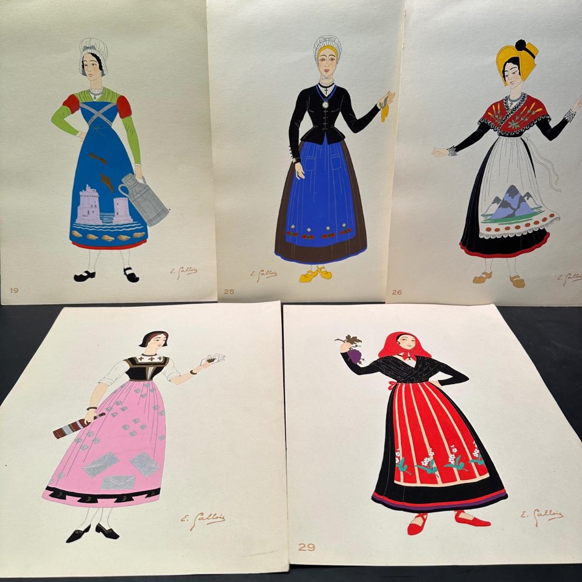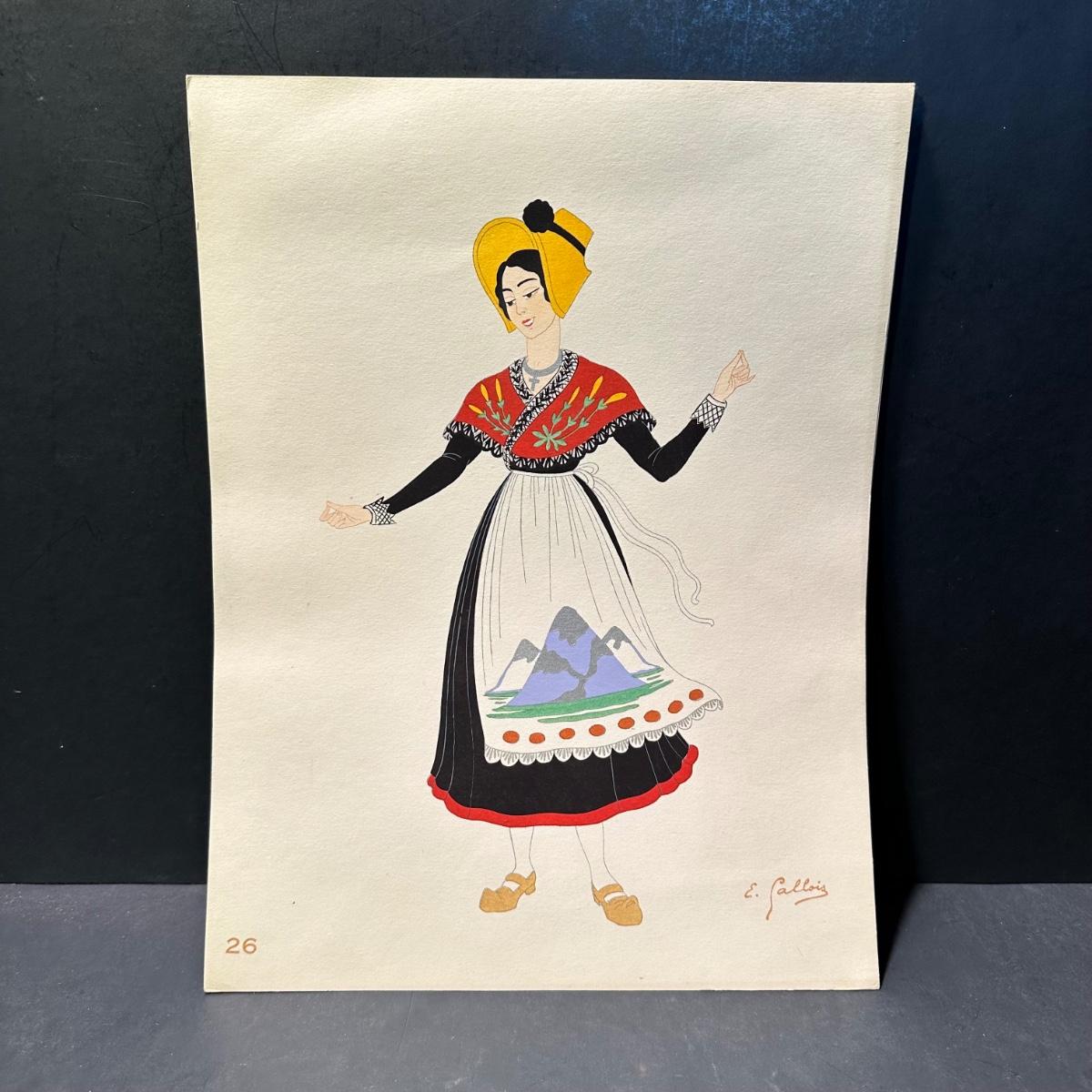 LOT 130L: 1930s, French Provincial Costumes - Original Pochoir Prints By Emile Gallois (5)