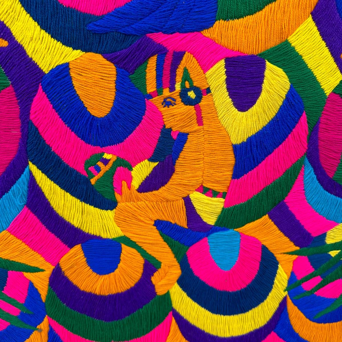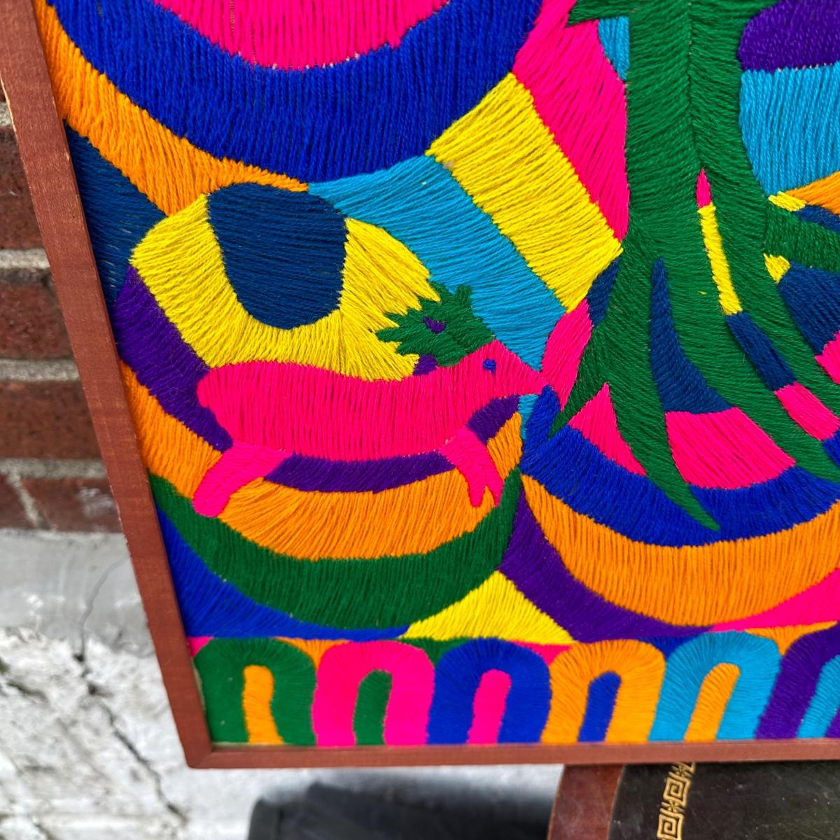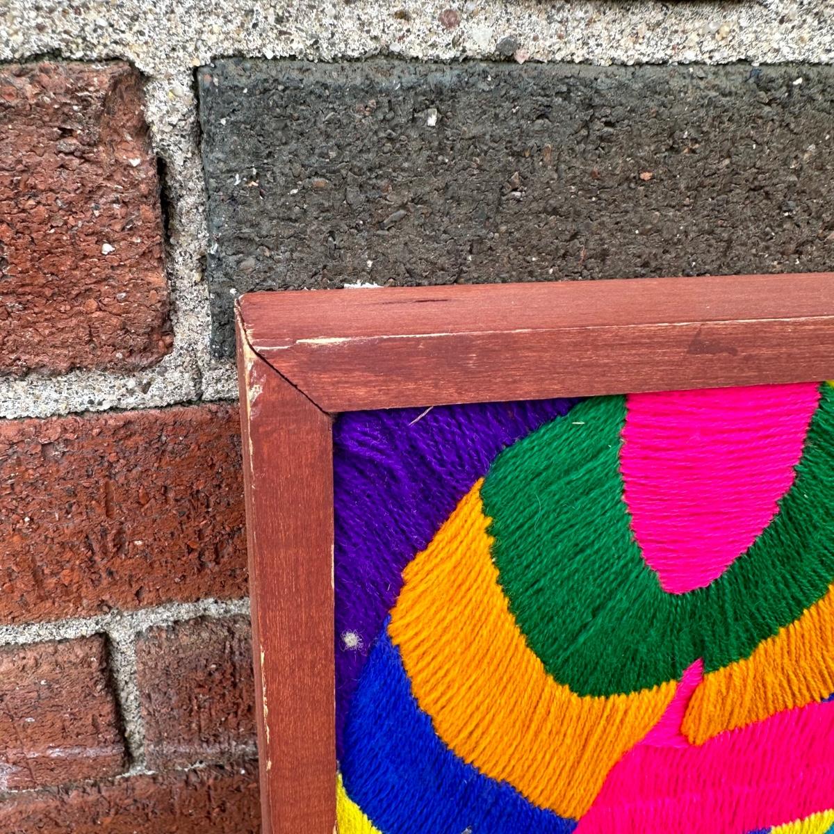 LOT 133L: Vintage Framed Peruvian Indigenous Andean Wool Embroidery Textile Art