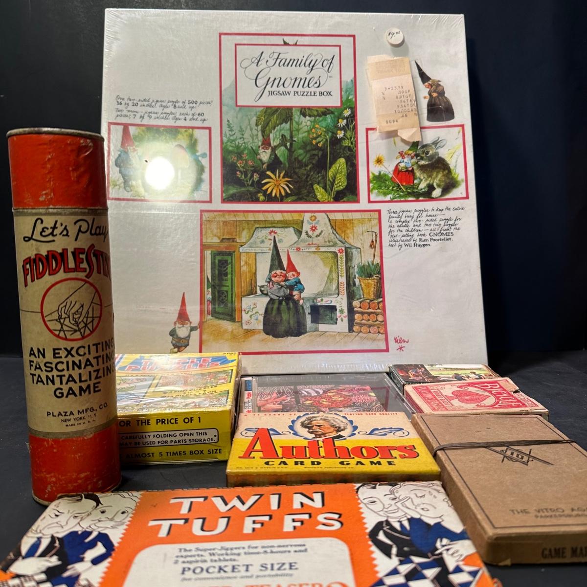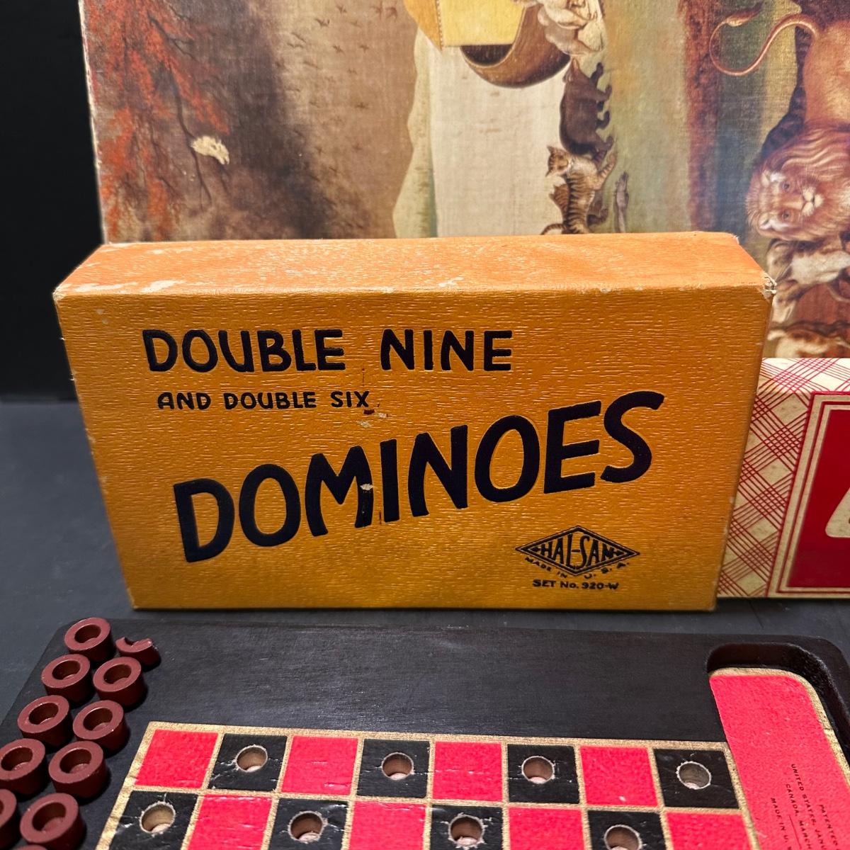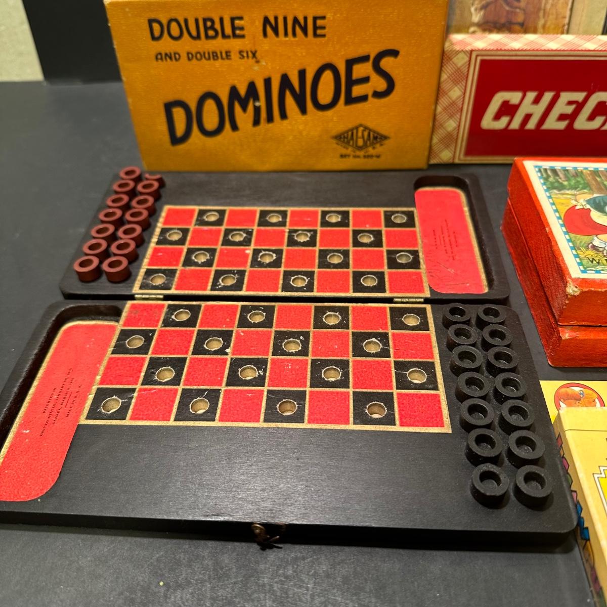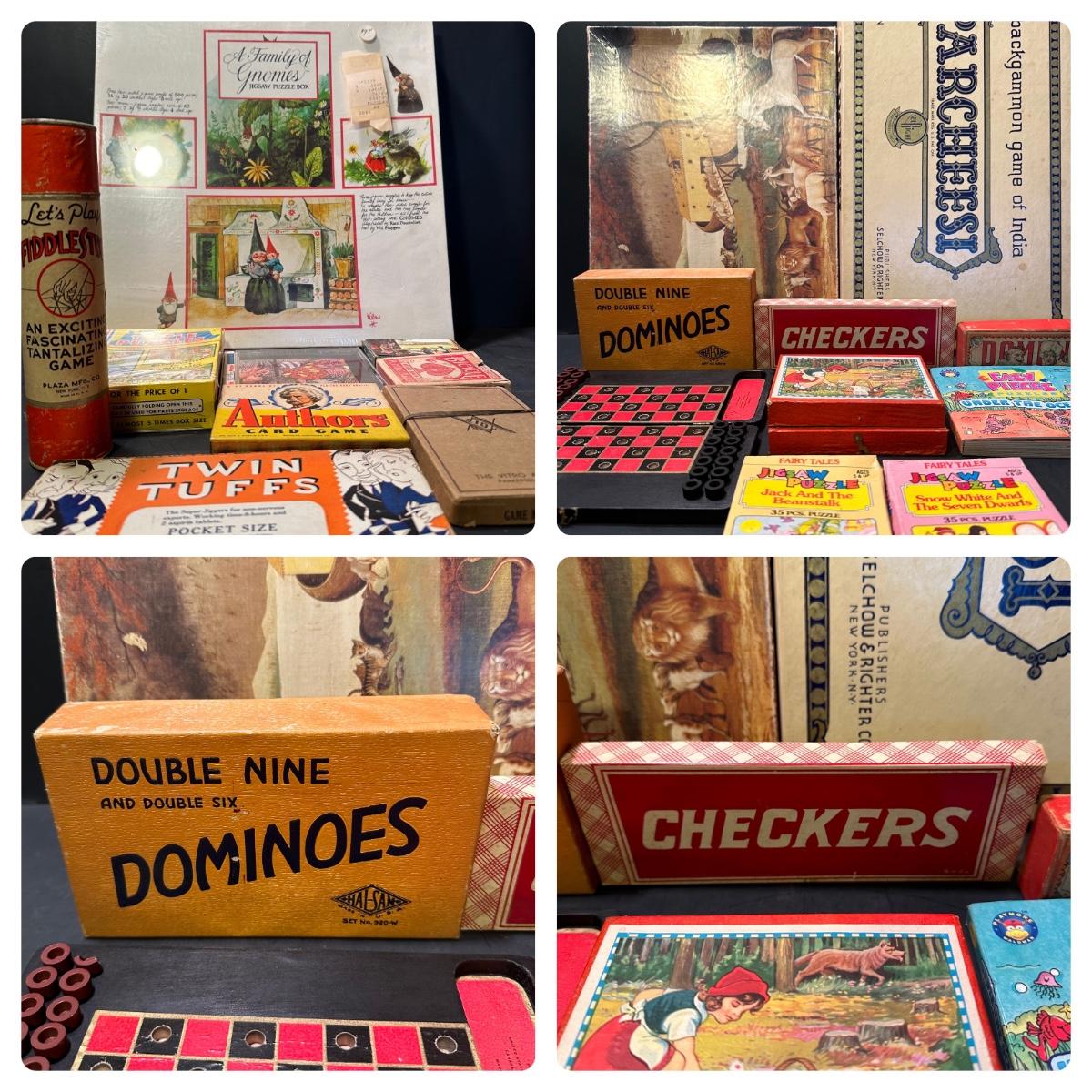 LOT 135L: Vintage Board Games - Dominos, Checkers, Fiddle Sticks, Puzzles & More
