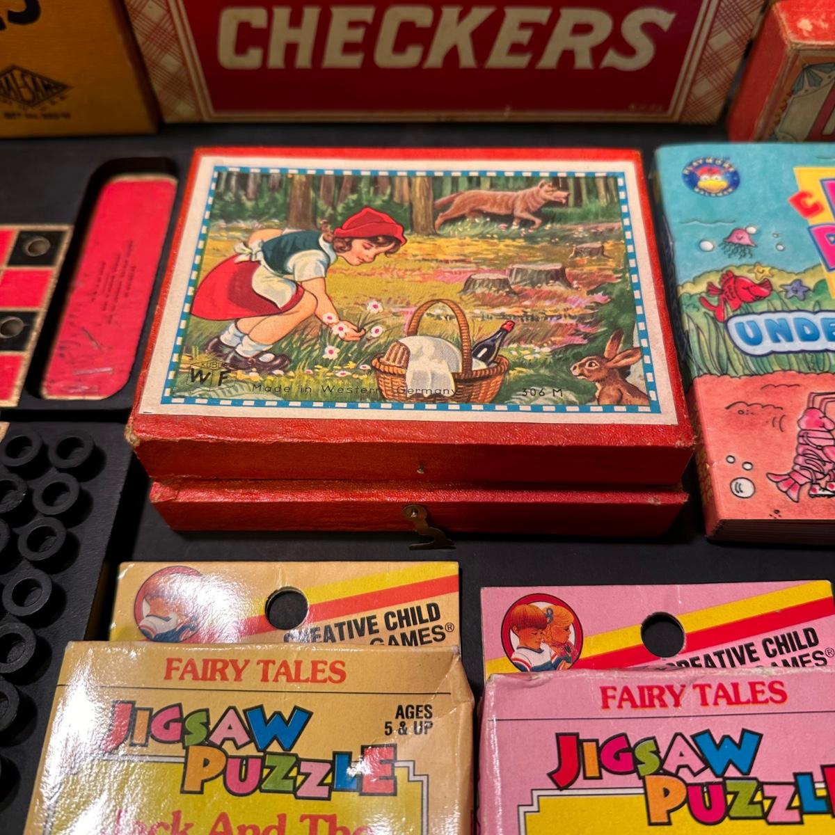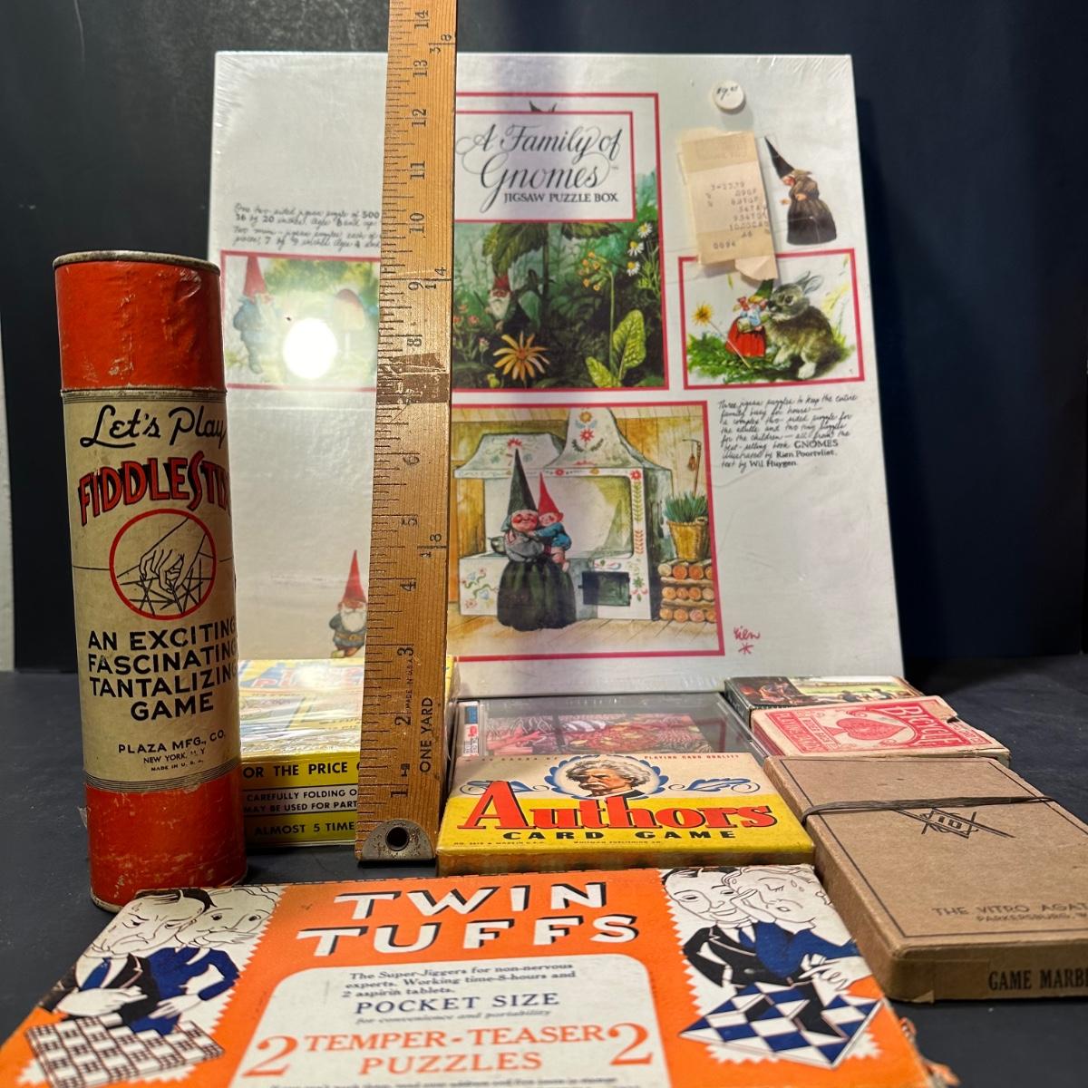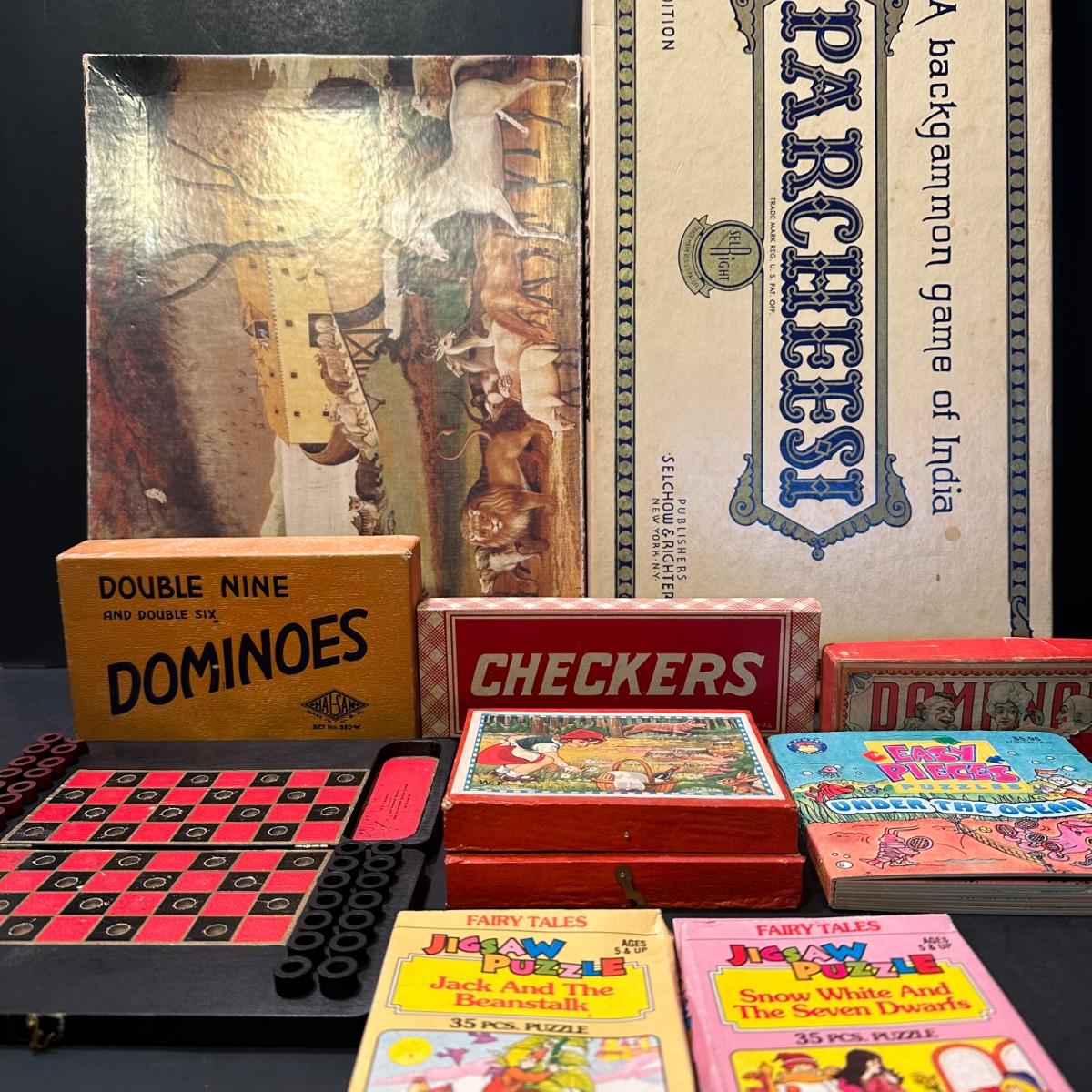 LOT 135L: Vintage Board Games - Dominos, Checkers, Fiddle Sticks, Puzzles & More