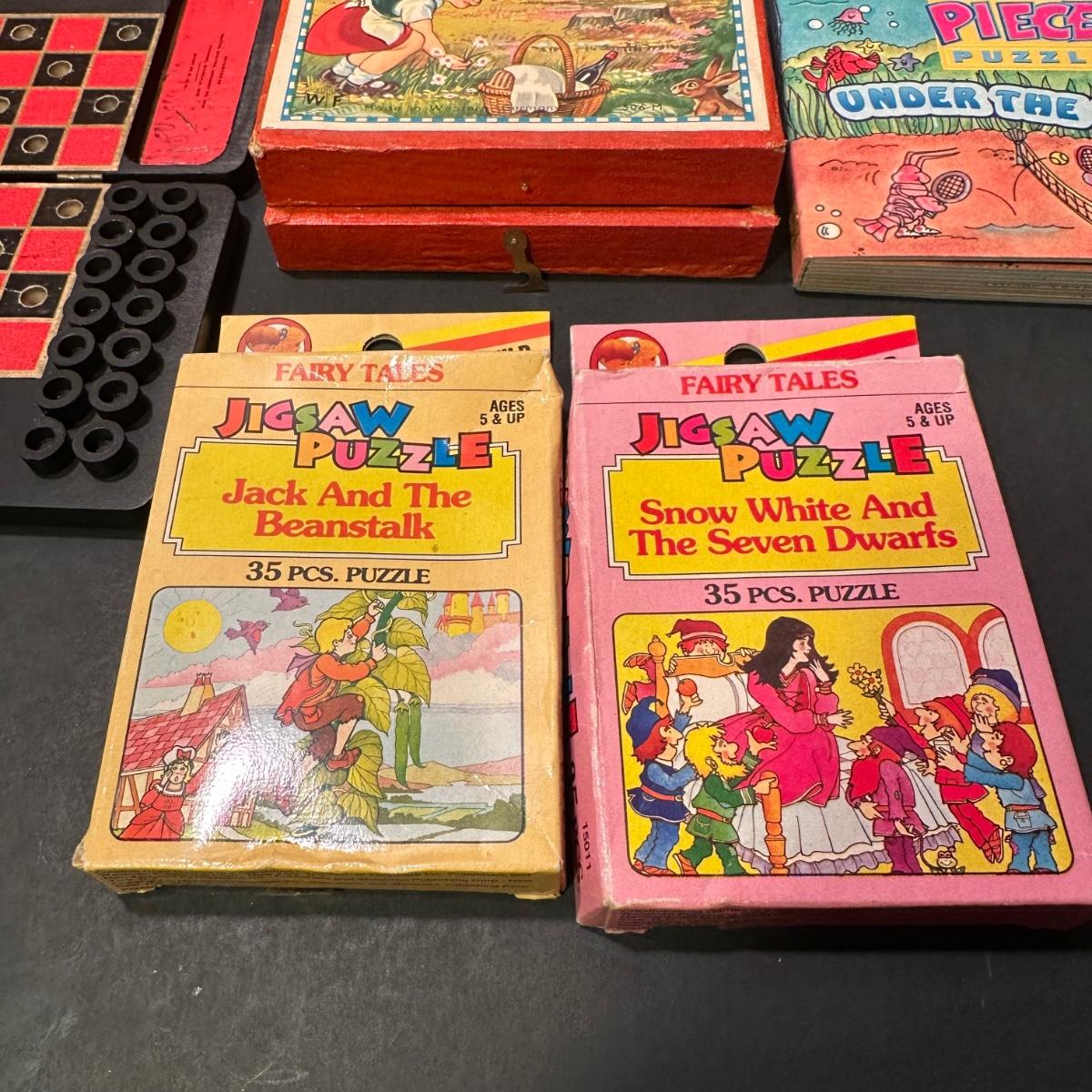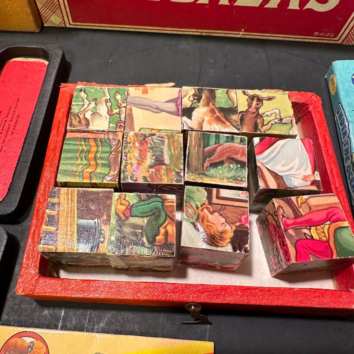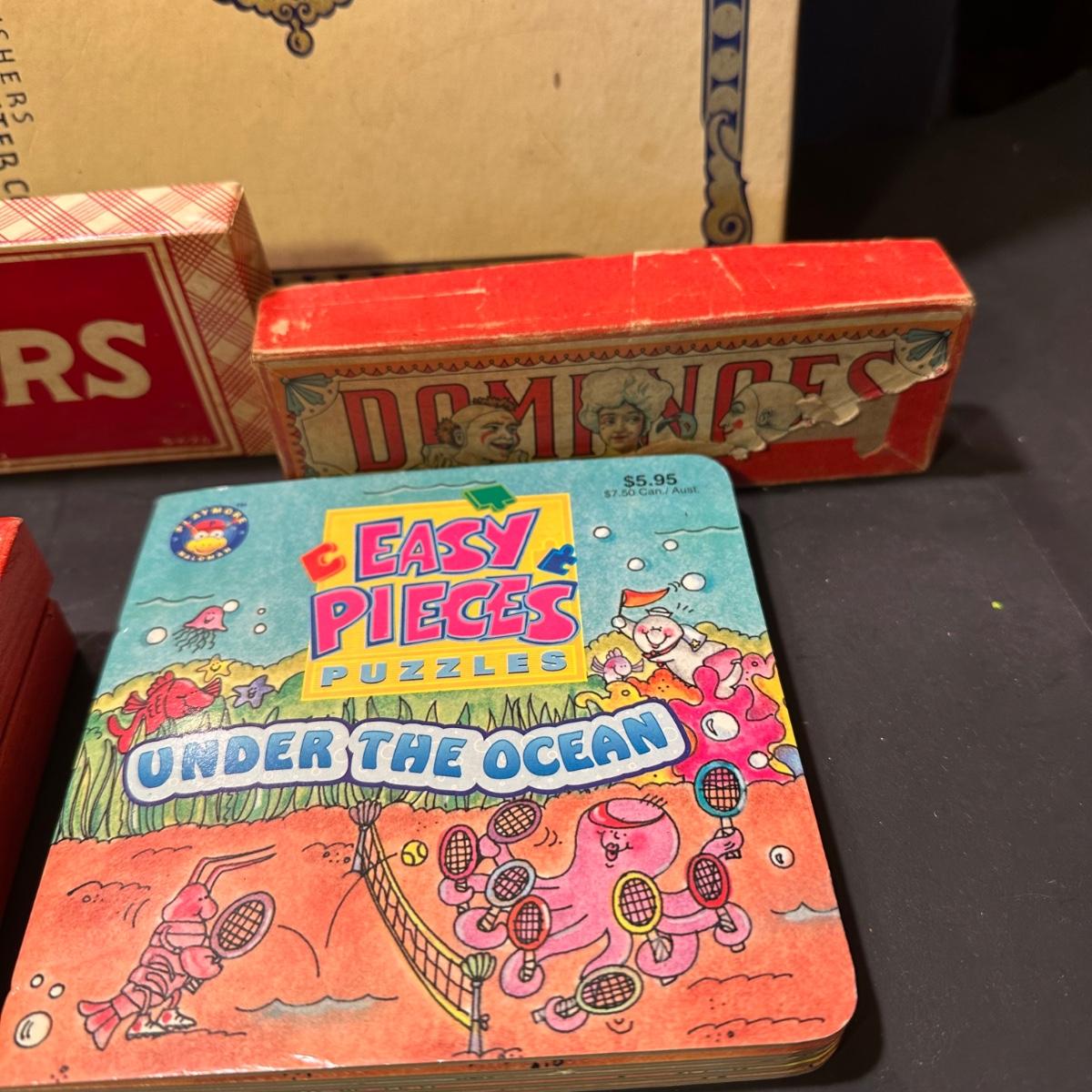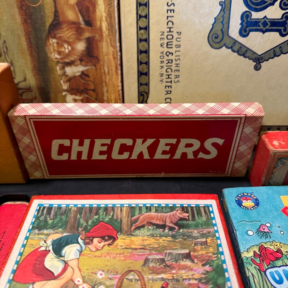 LOT 135L: Vintage Board Games - Dominos, Checkers, Fiddle Sticks, Puzzles & More
