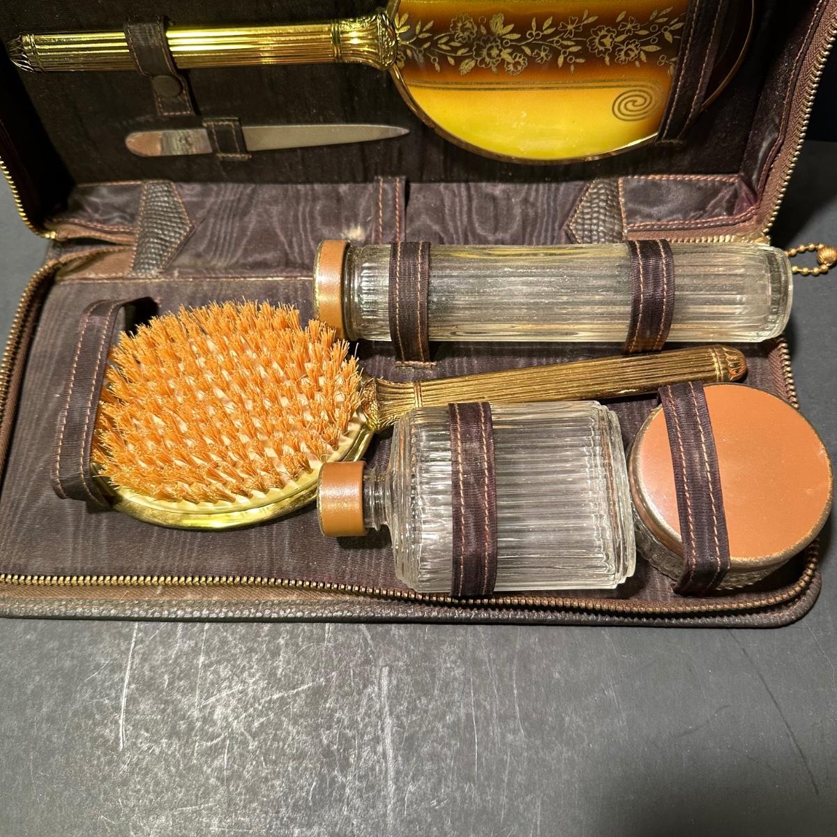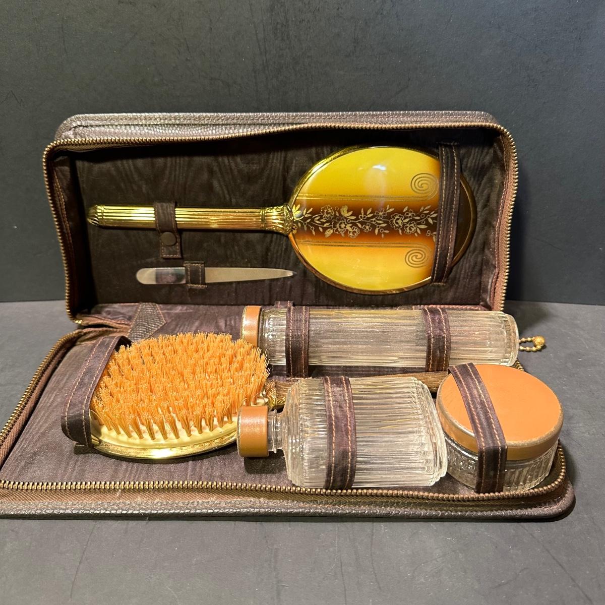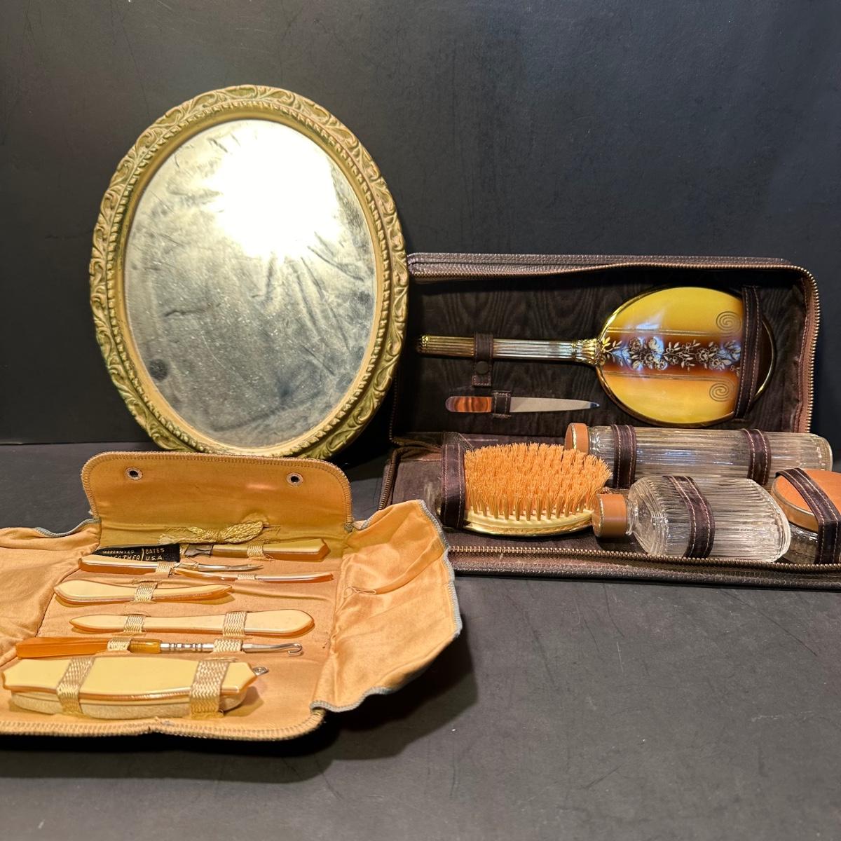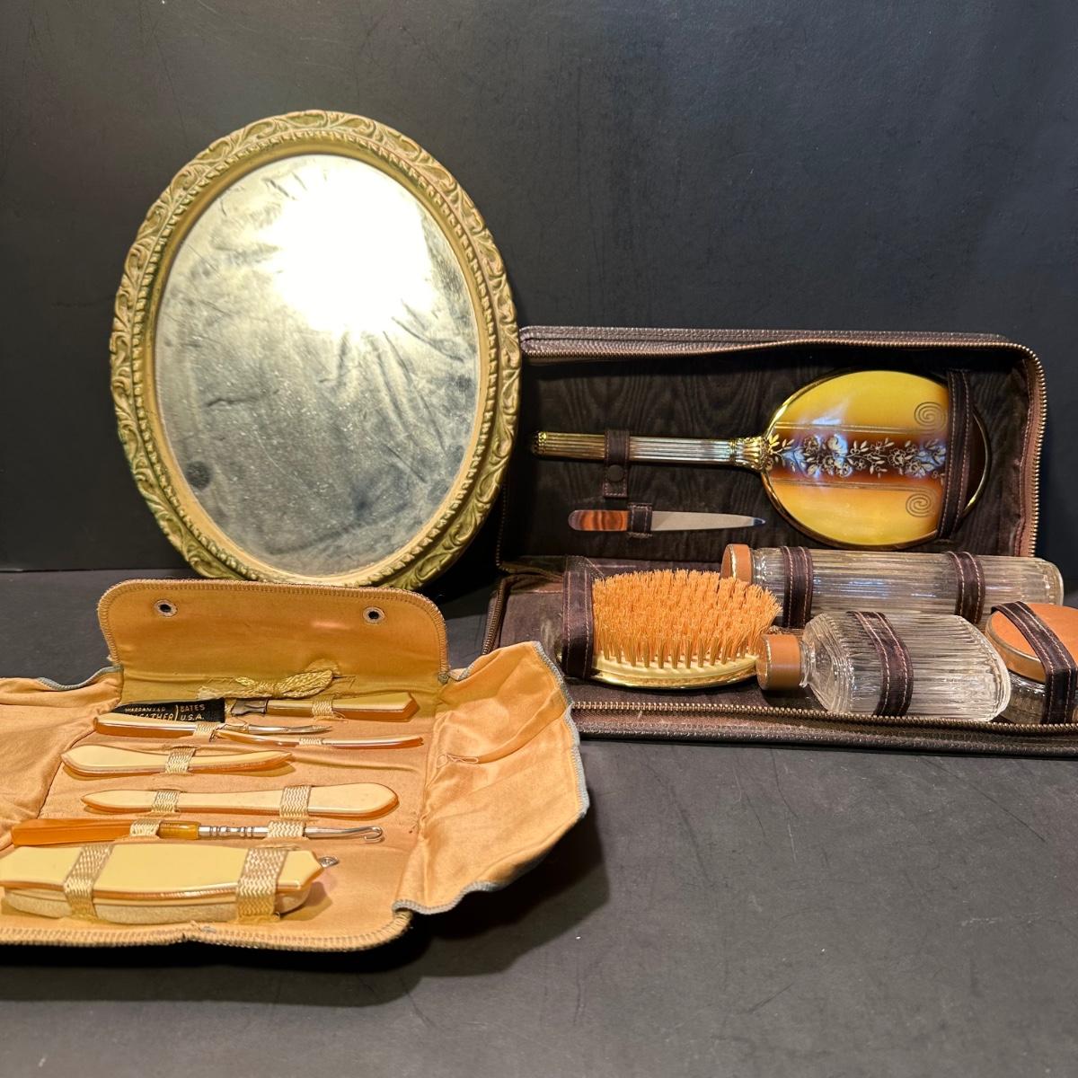 LOT 137L: Vintage Travel Vanity Lit & Case w/ Mirror