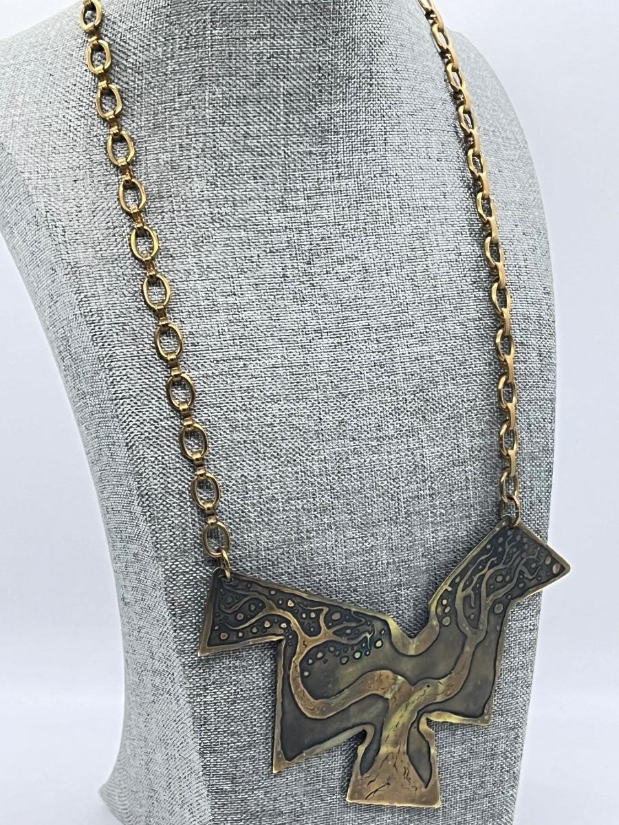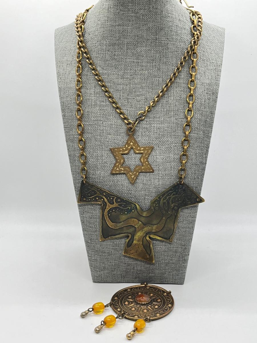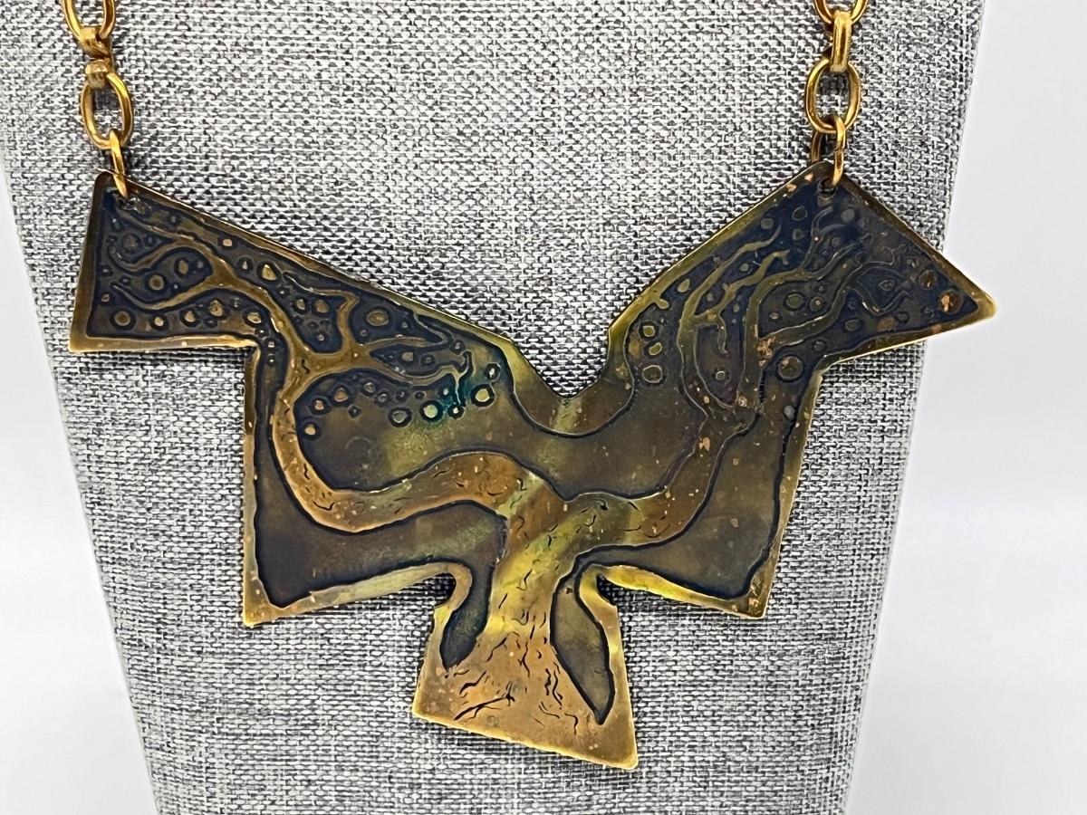 LOT 212J: Artist Signed Brass Pendant on Chain and More