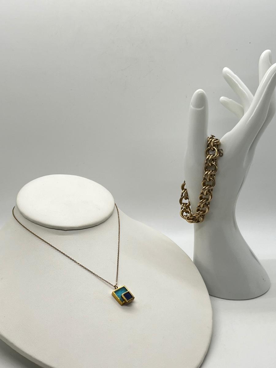 LOT 220J: Vintage Elco 1/20th 12K Gold Fill 7.5 Inch Bracelet and 14 Inch Gold Fill Chain with Pendant
