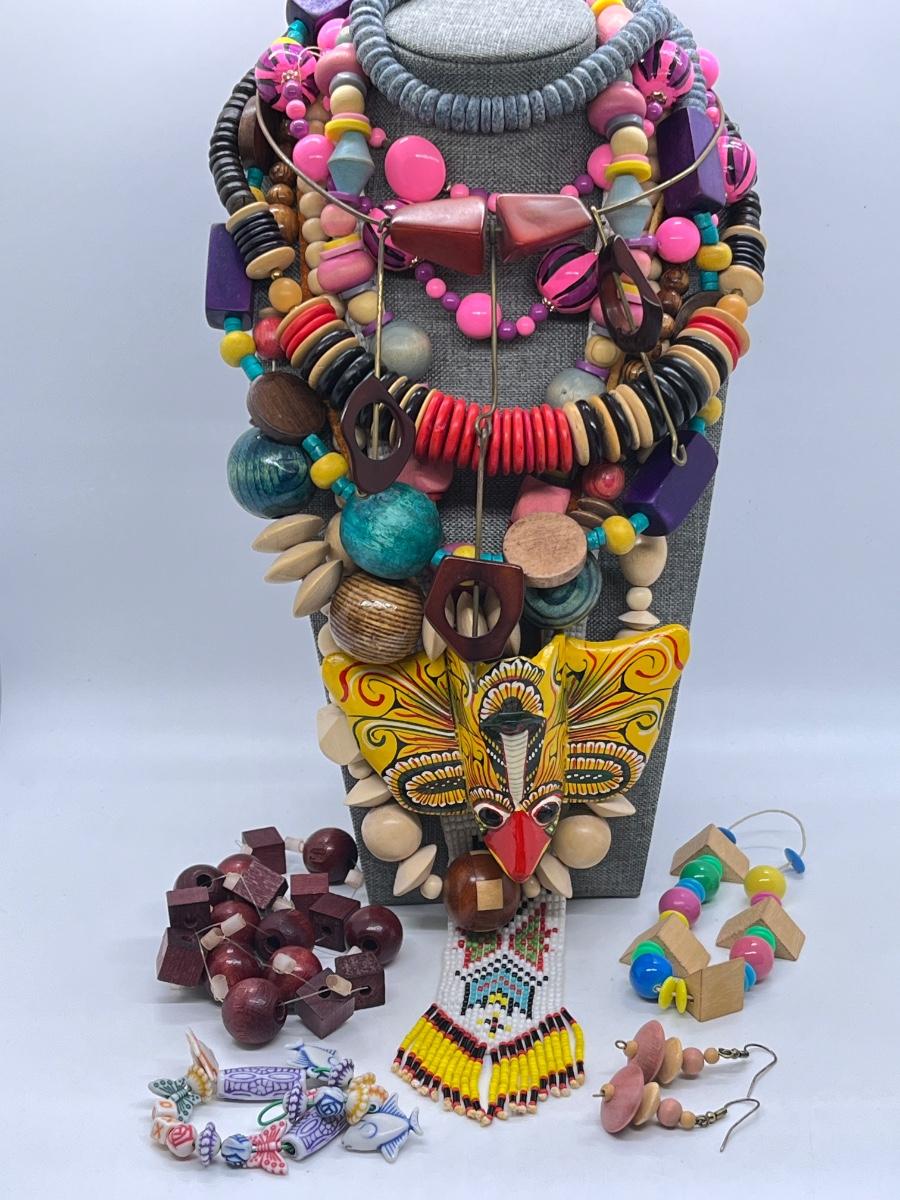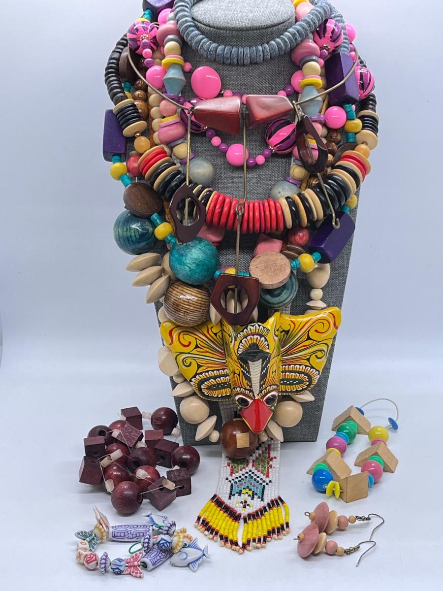 LOT 223J: Exotic Handmade Beaded, Wooden and Metal Necklaces, Bracelets and Earrings