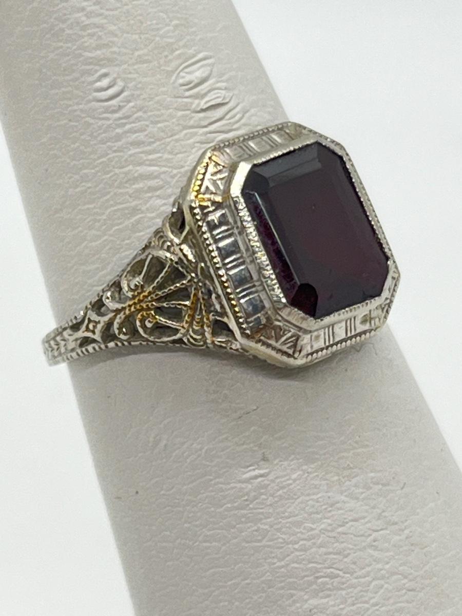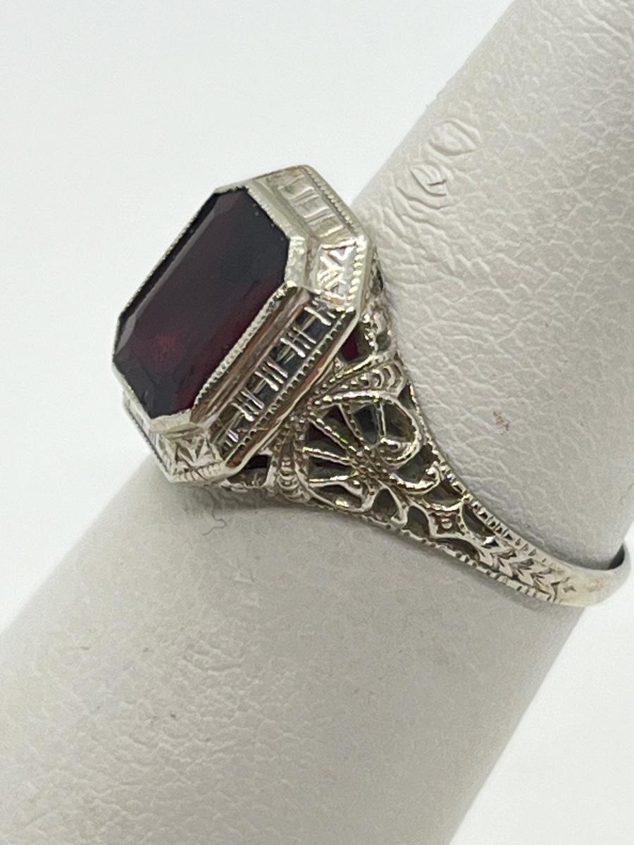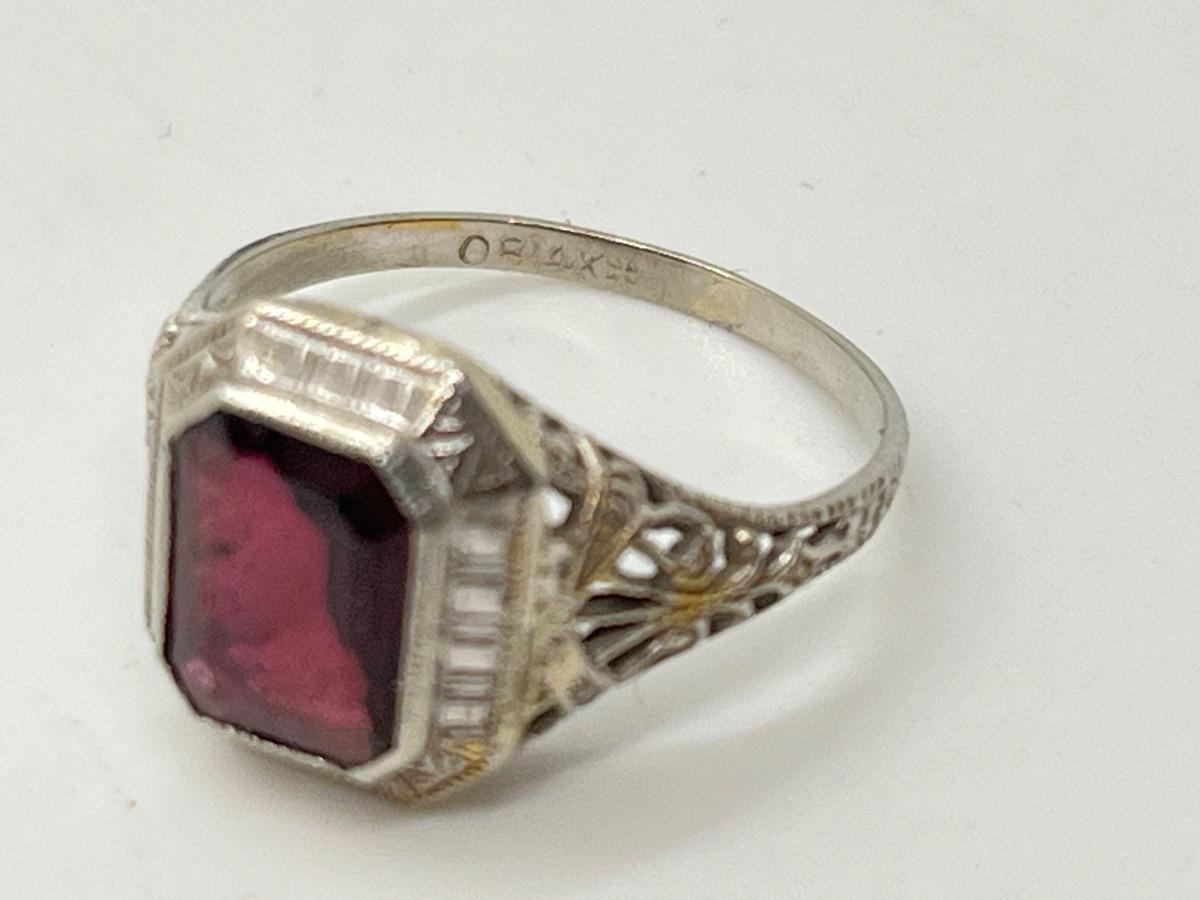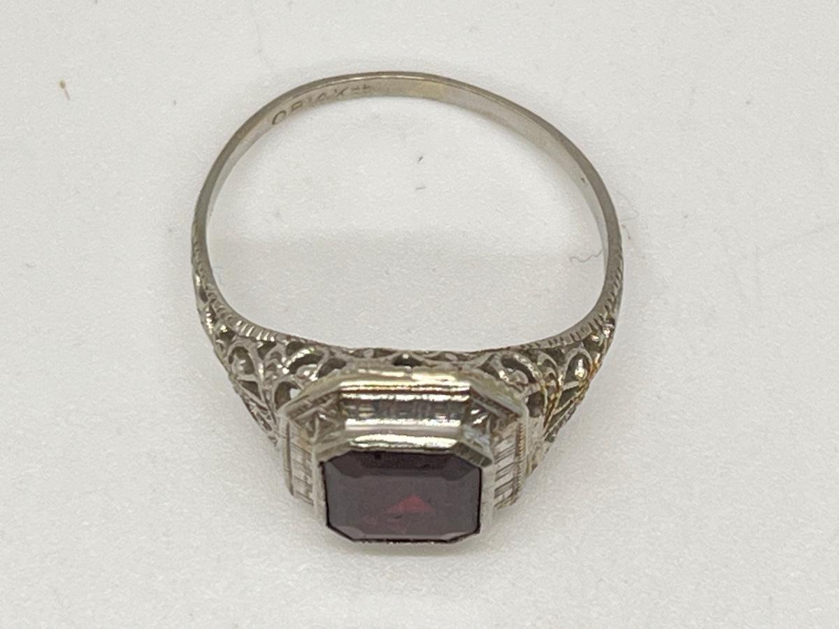LOT 224J: 14K White Gold Filigree Antique/Vintage Ostby and Barton Size 5 Ring