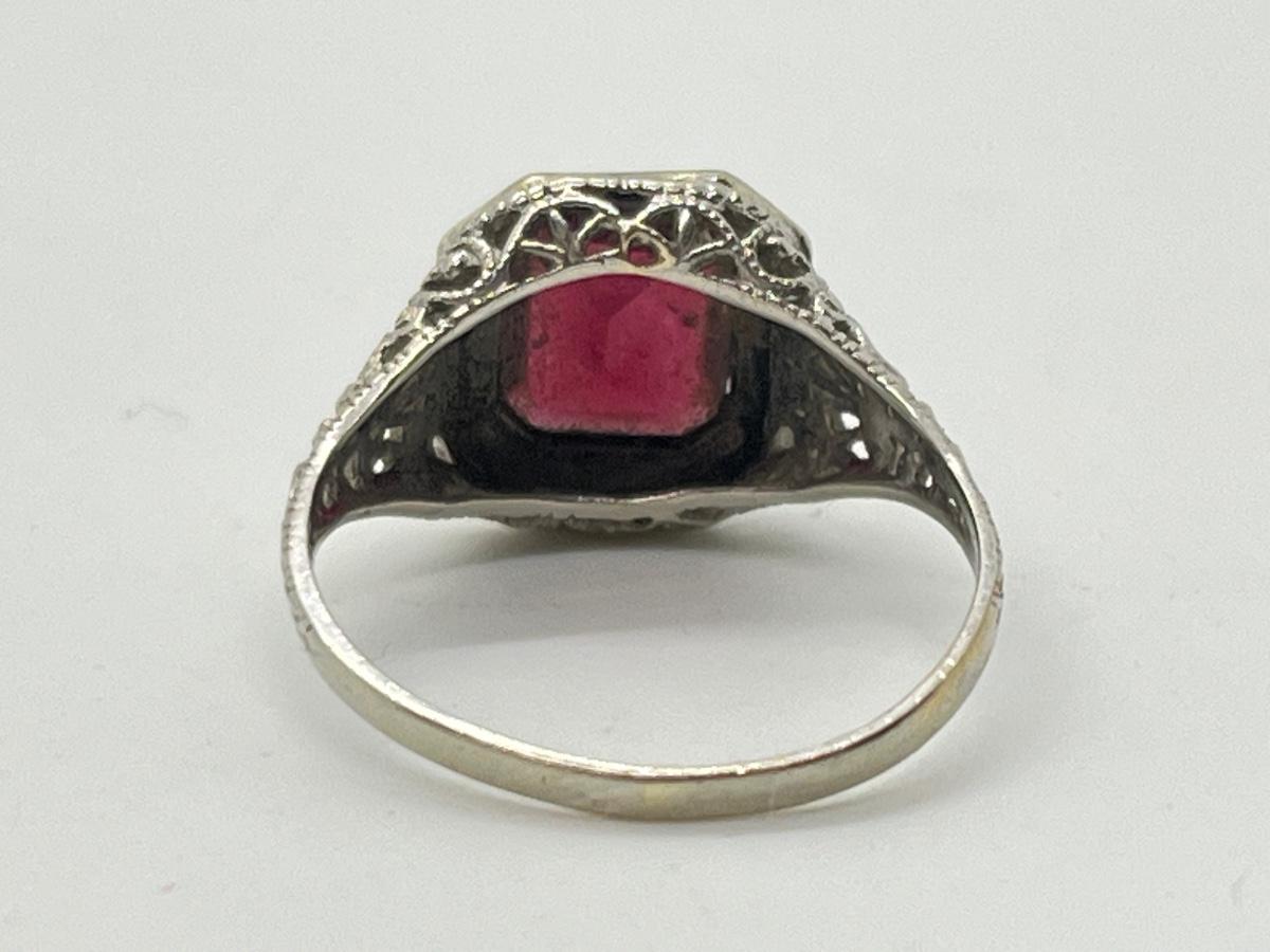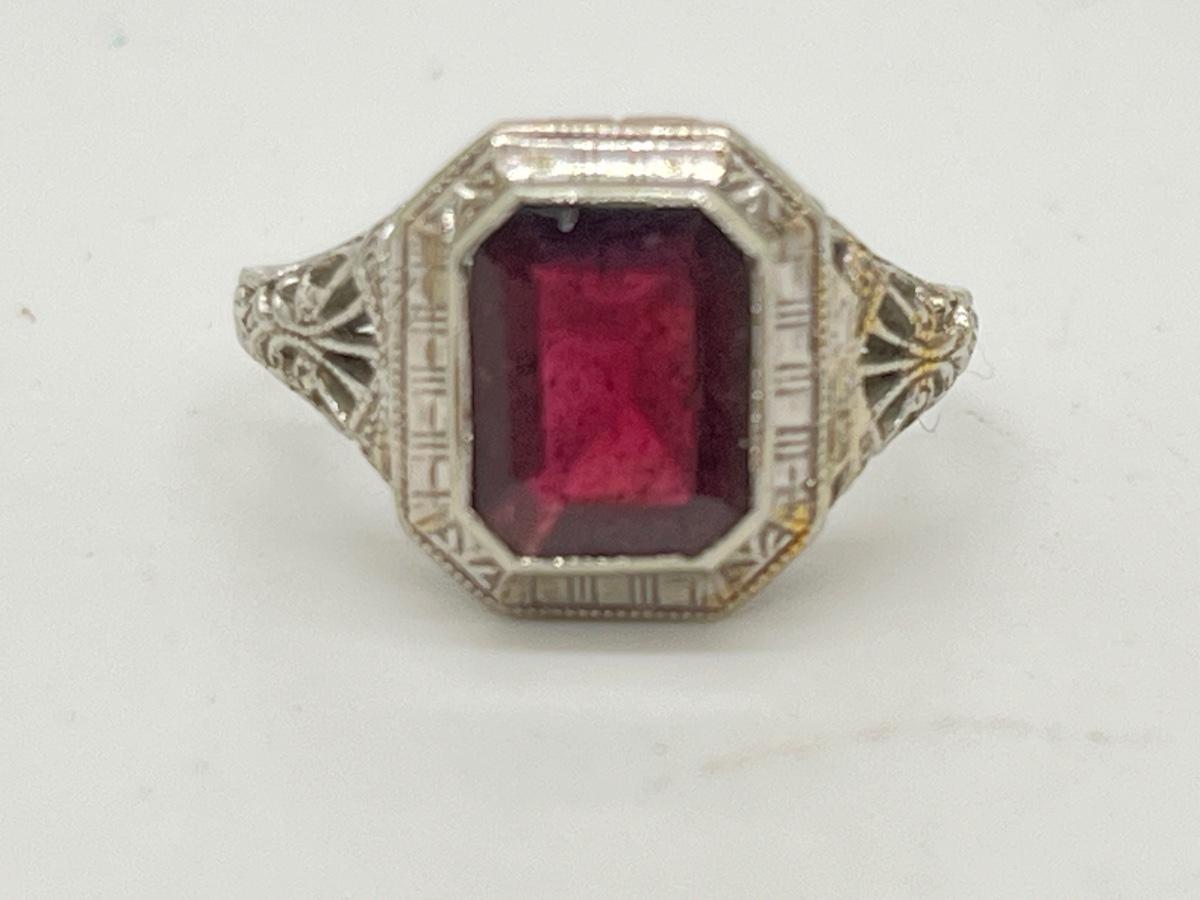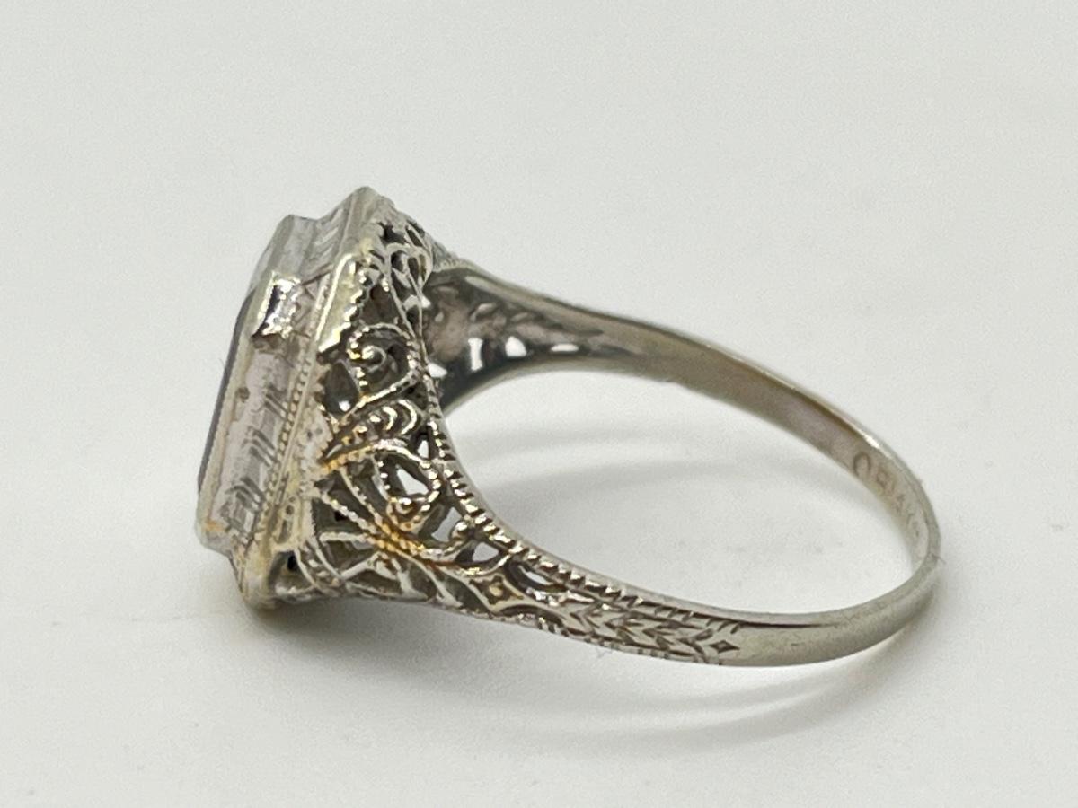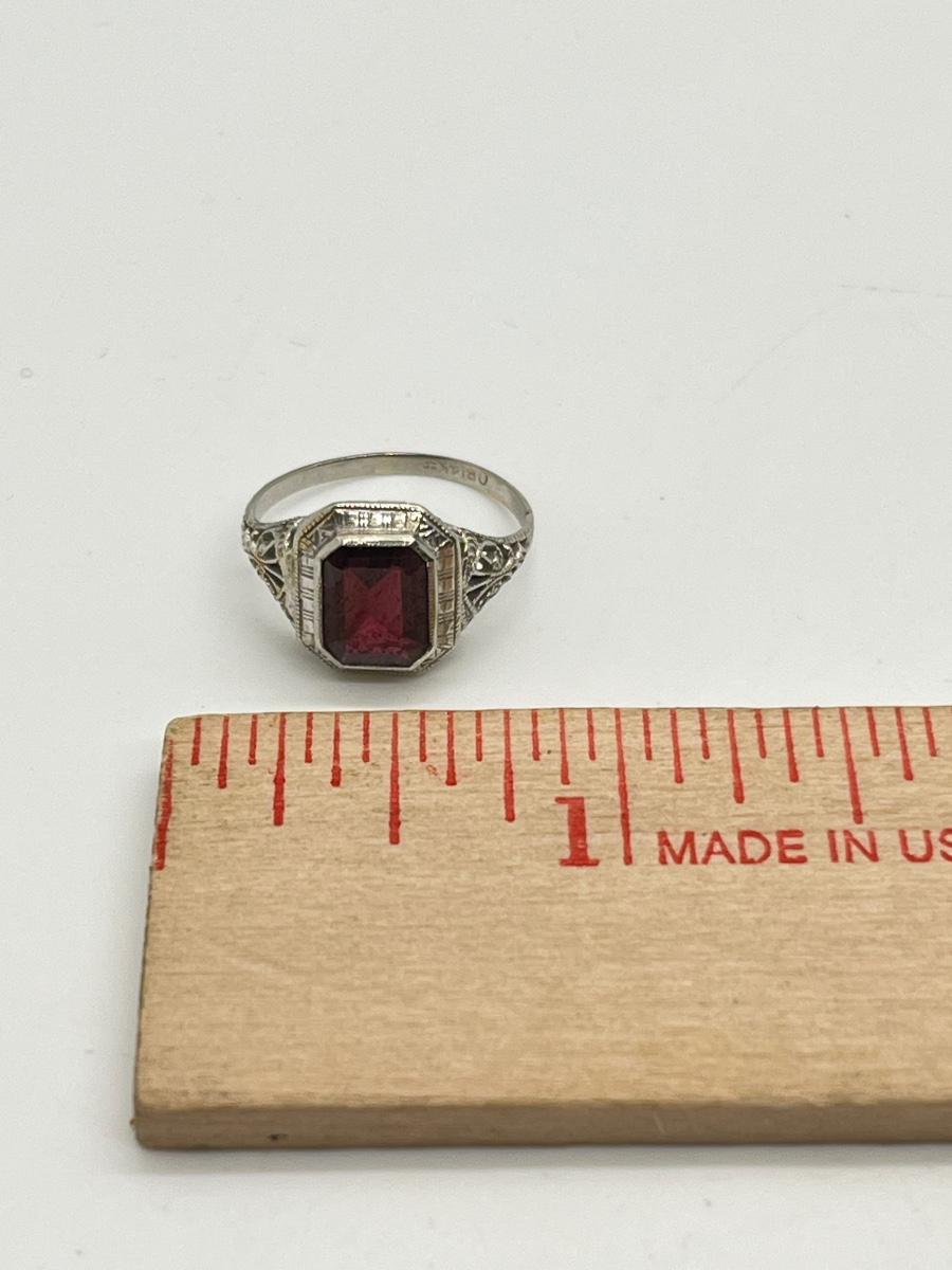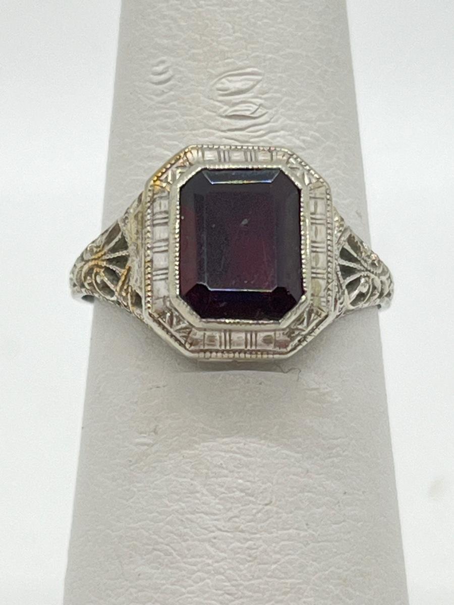 LOT 224J: 14K White Gold Filigree Antique/Vintage Ostby and Barton Size 5 Ring