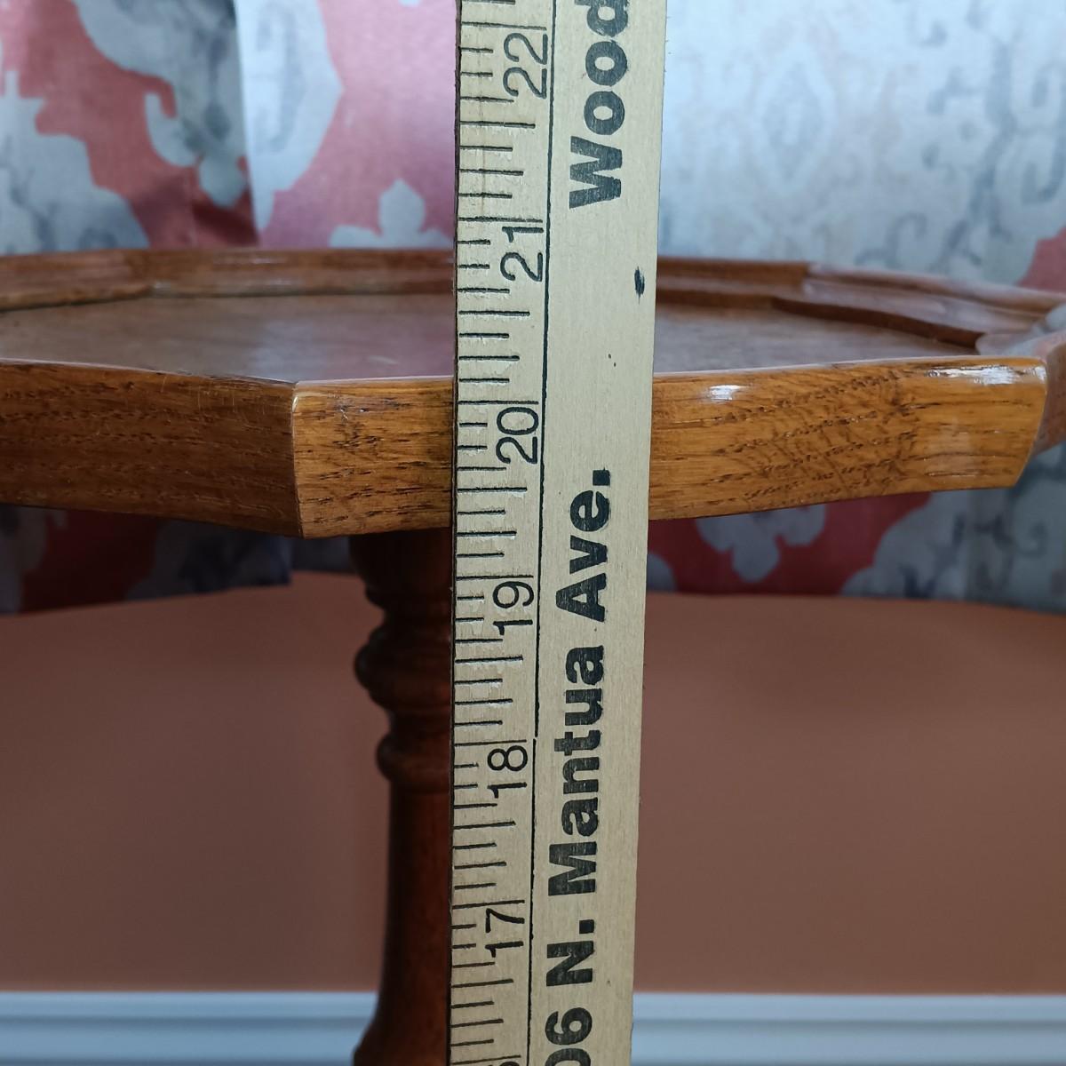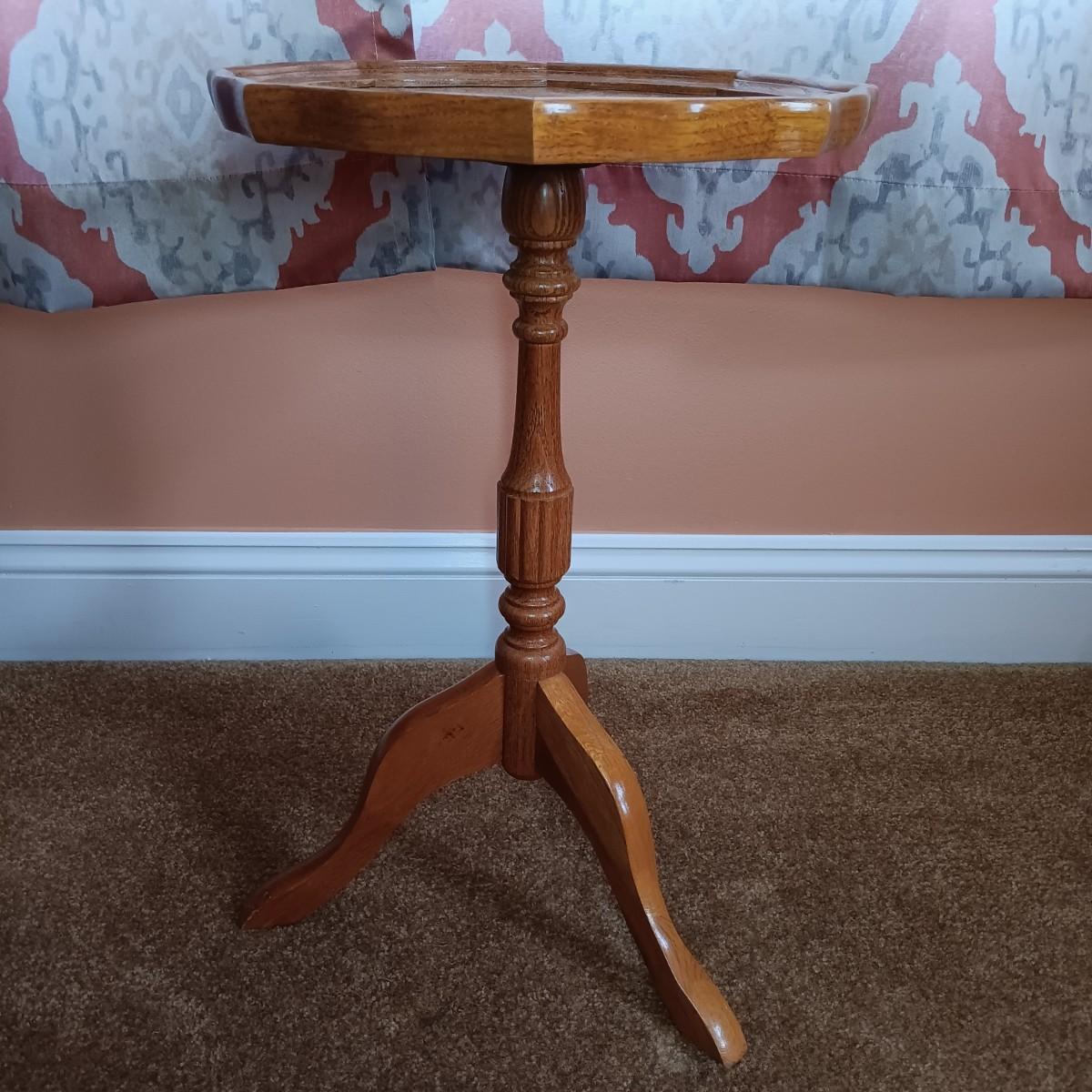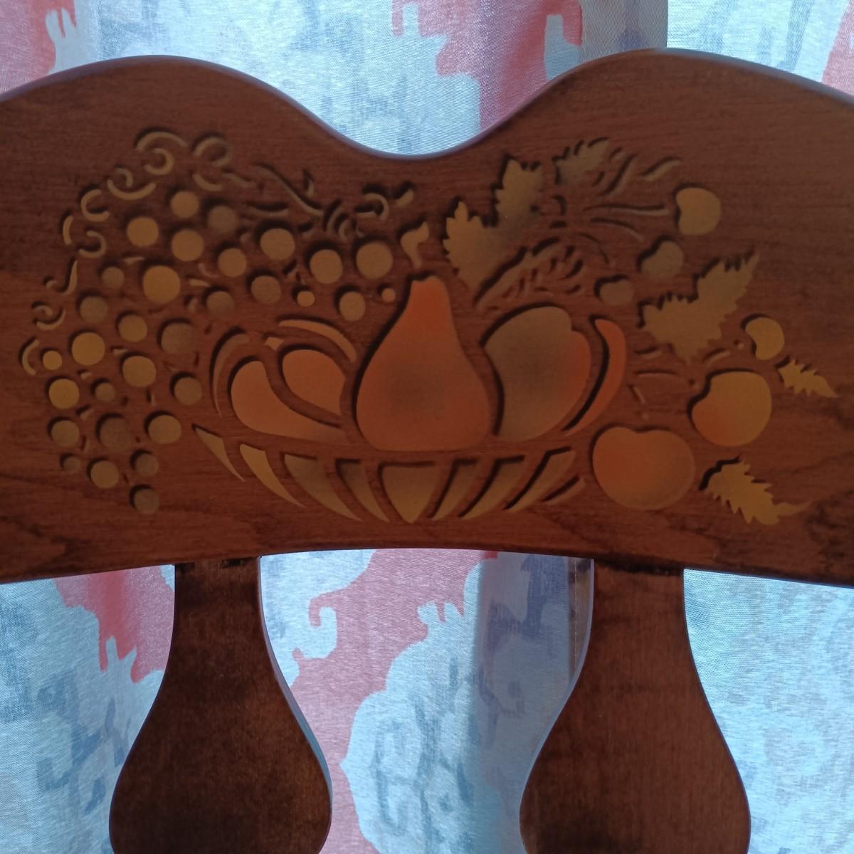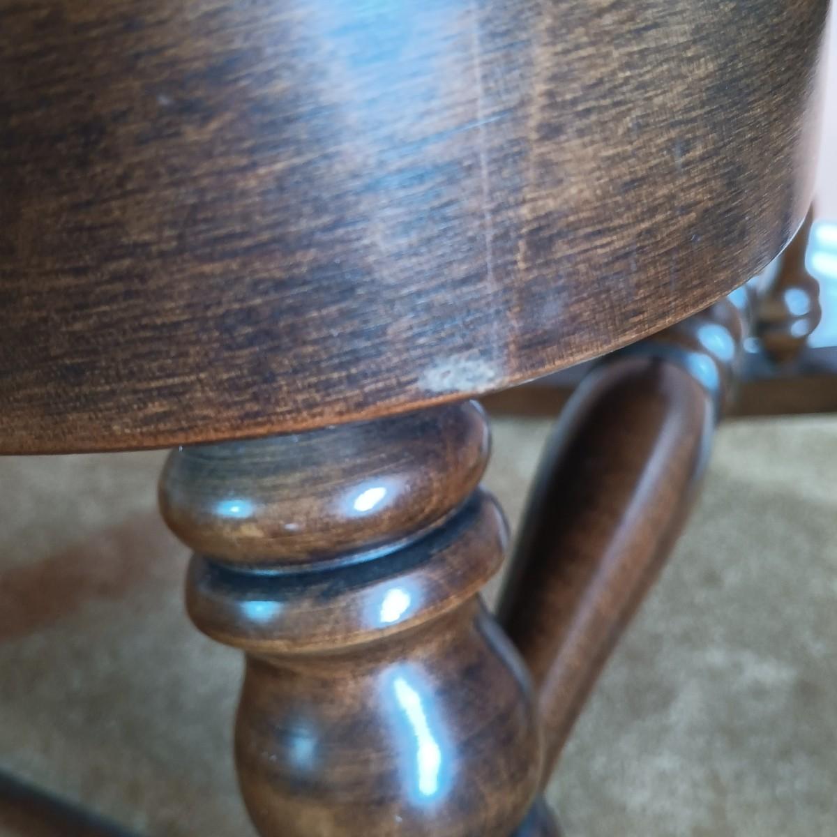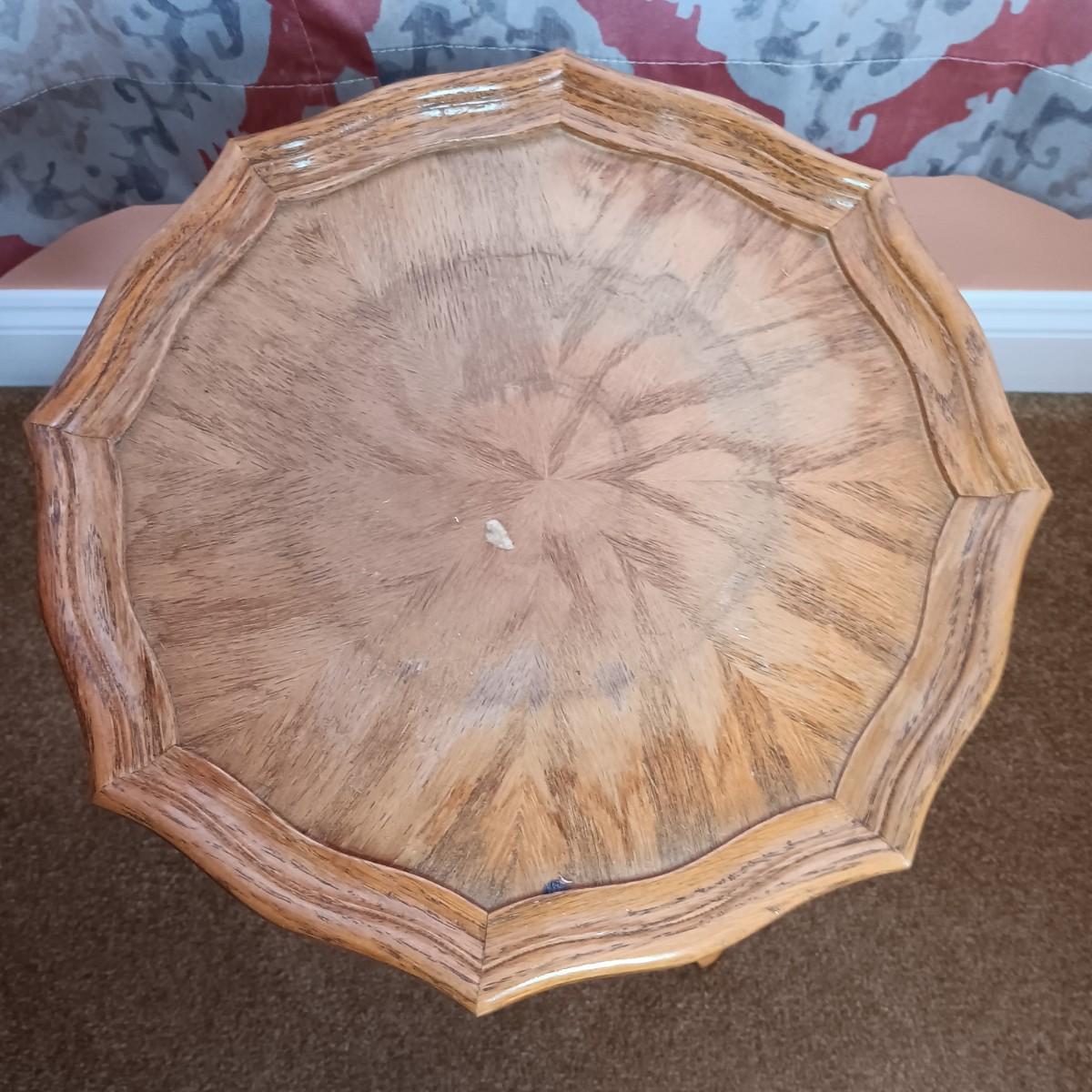 LOT5-O: Sturdy Wood Rocking Chair with Cushion; Pie Crust Table with Brass Style Lamp