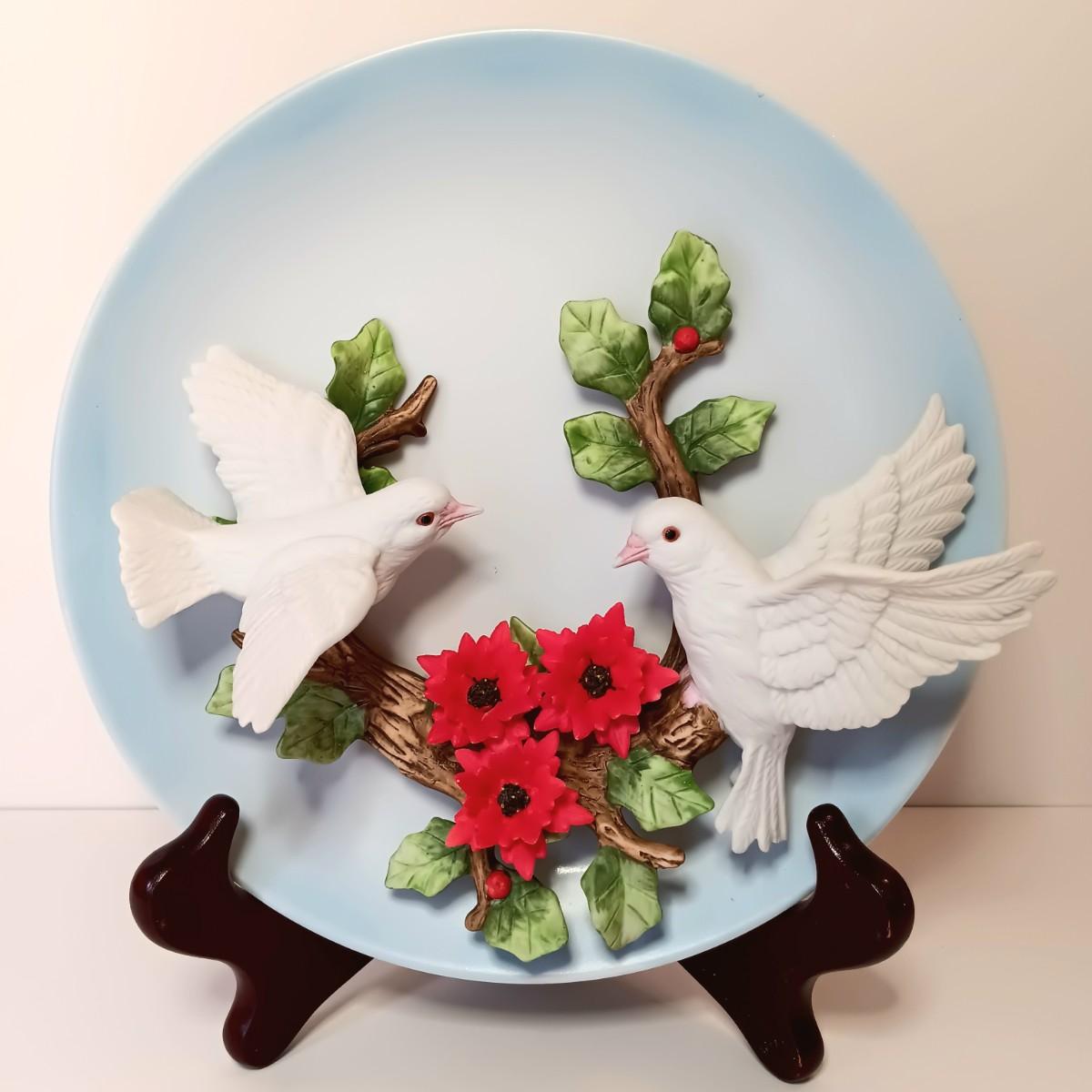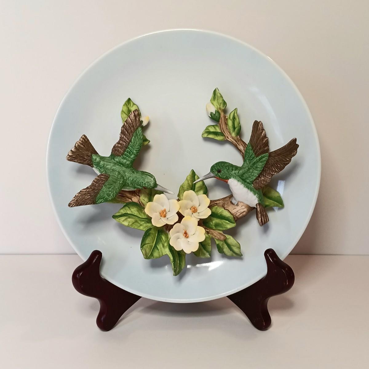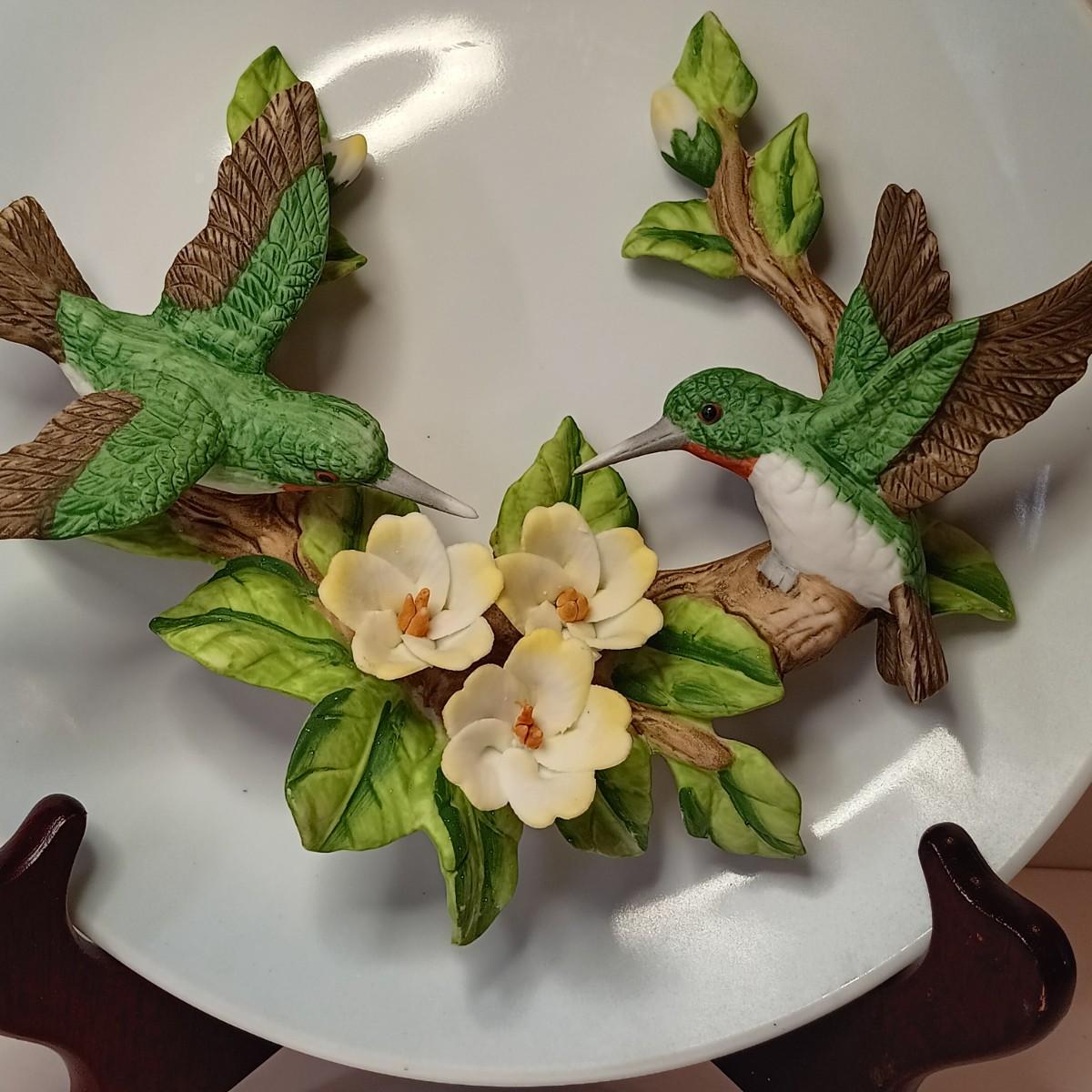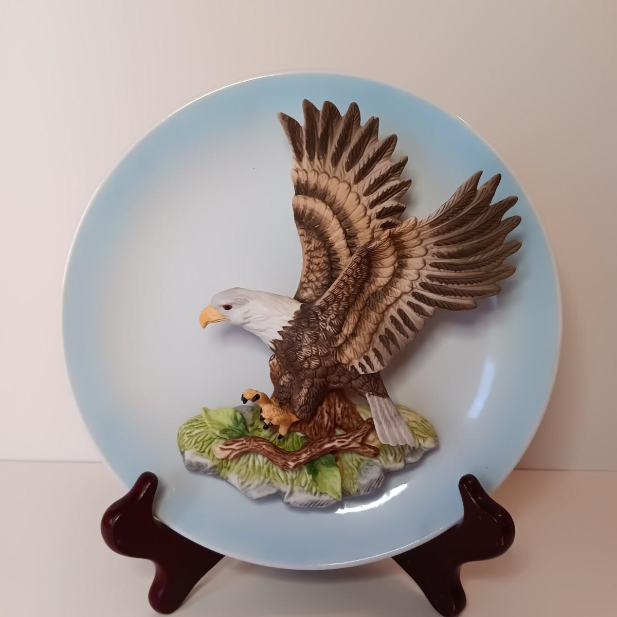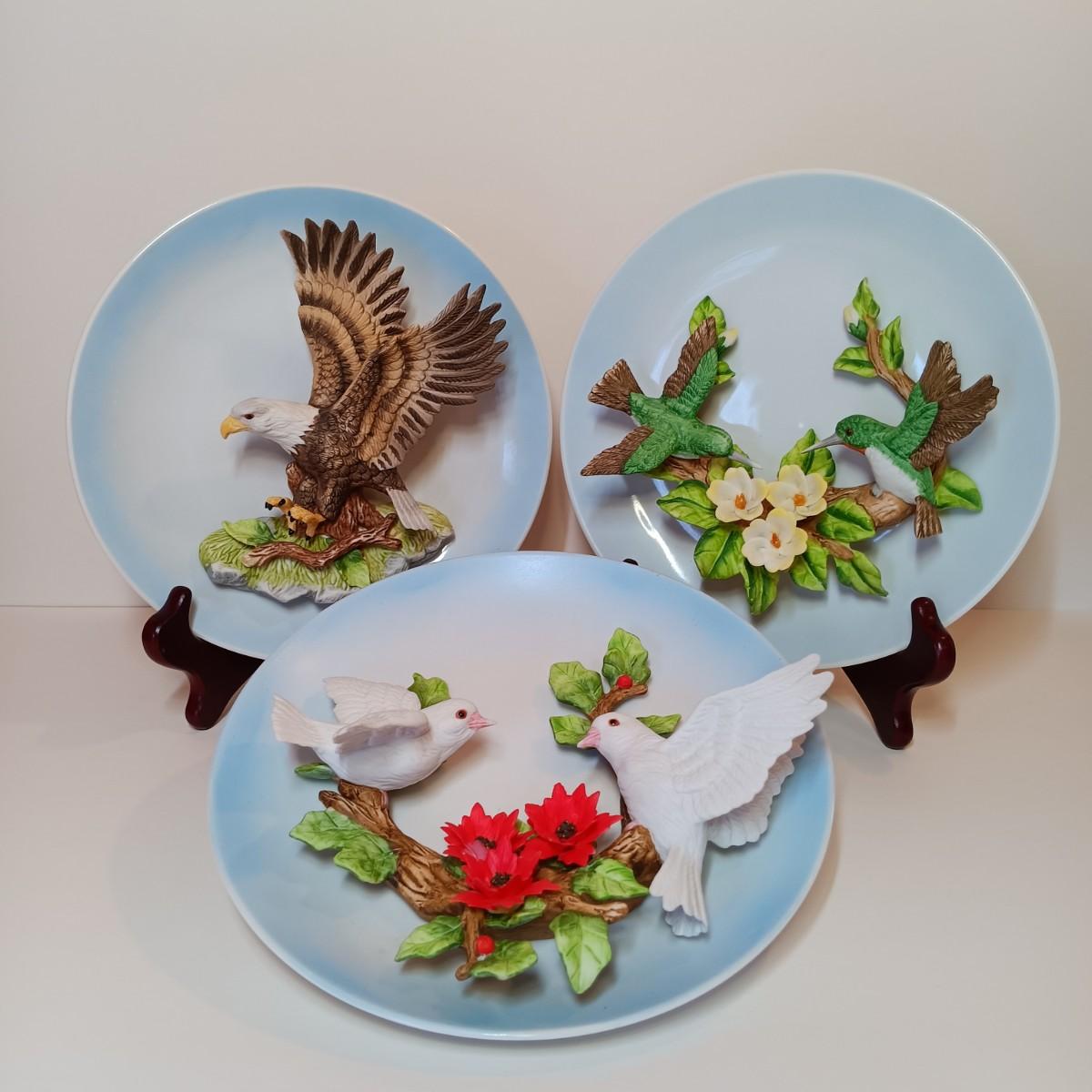 LOT9-O: Collection of 3 Jonathan Bryan Collector Plates with Birds in Relief - Eagle, Doves and Hummingbirds