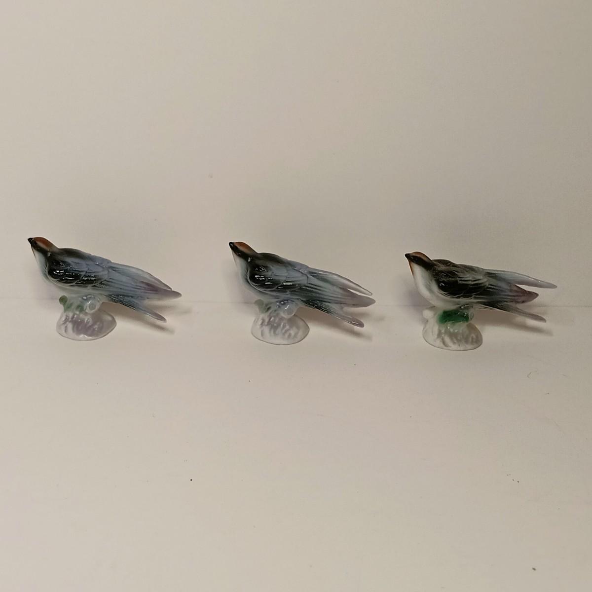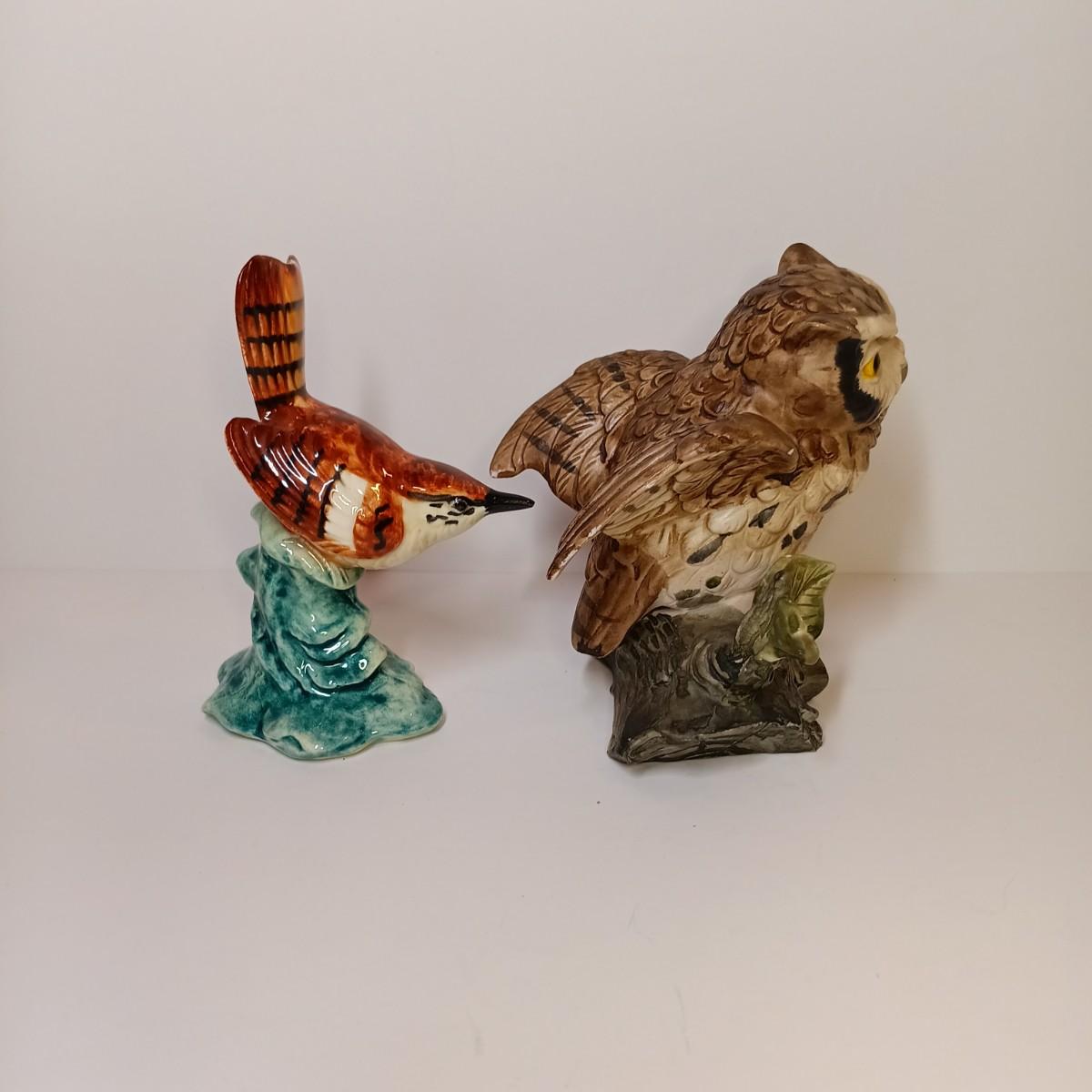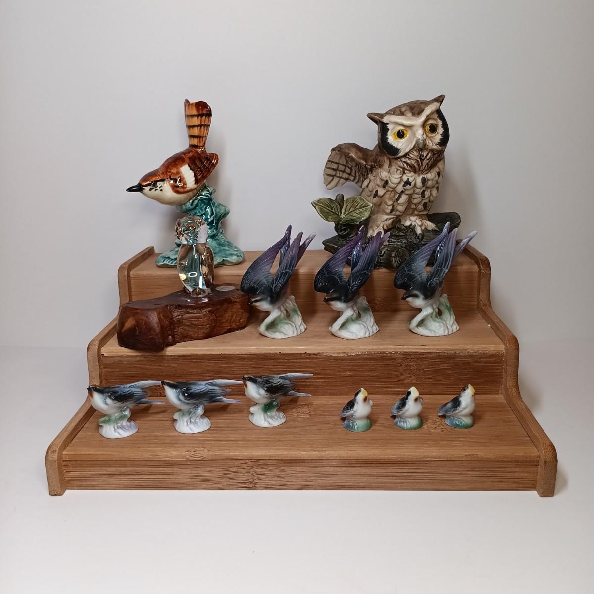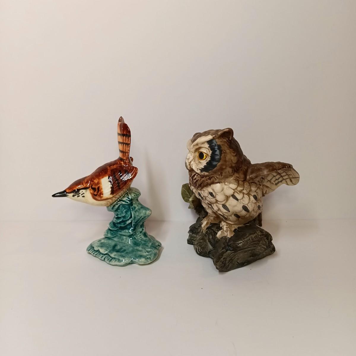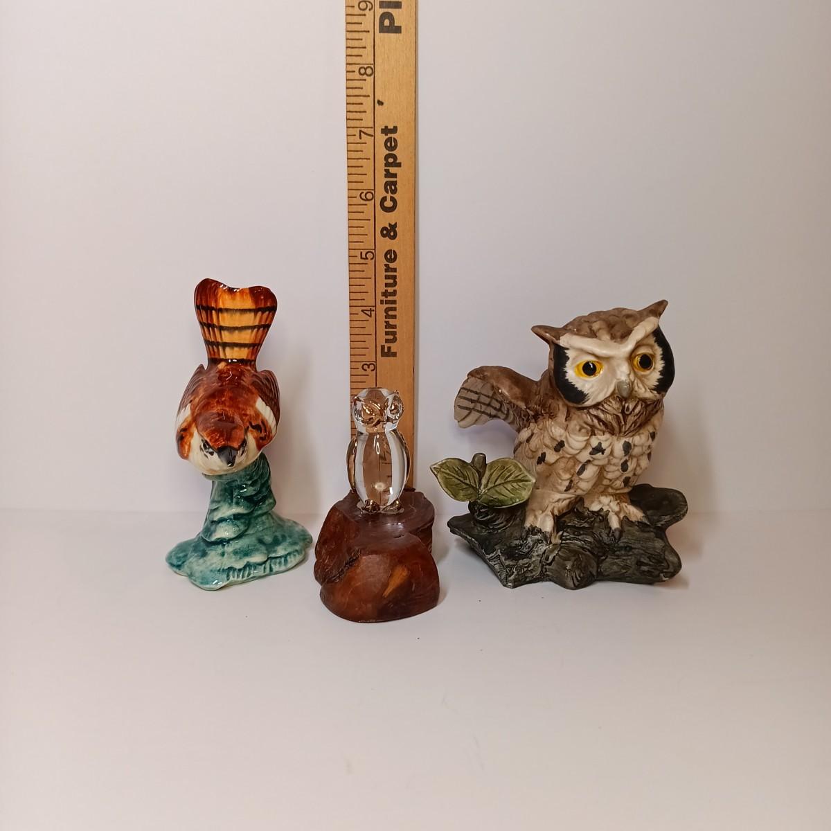 LOT16-O: Collection of Small Bird Figurines Including Stangl Wren and a Glass Owl 0ith 22K Detailing