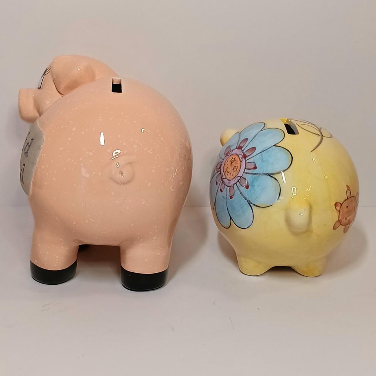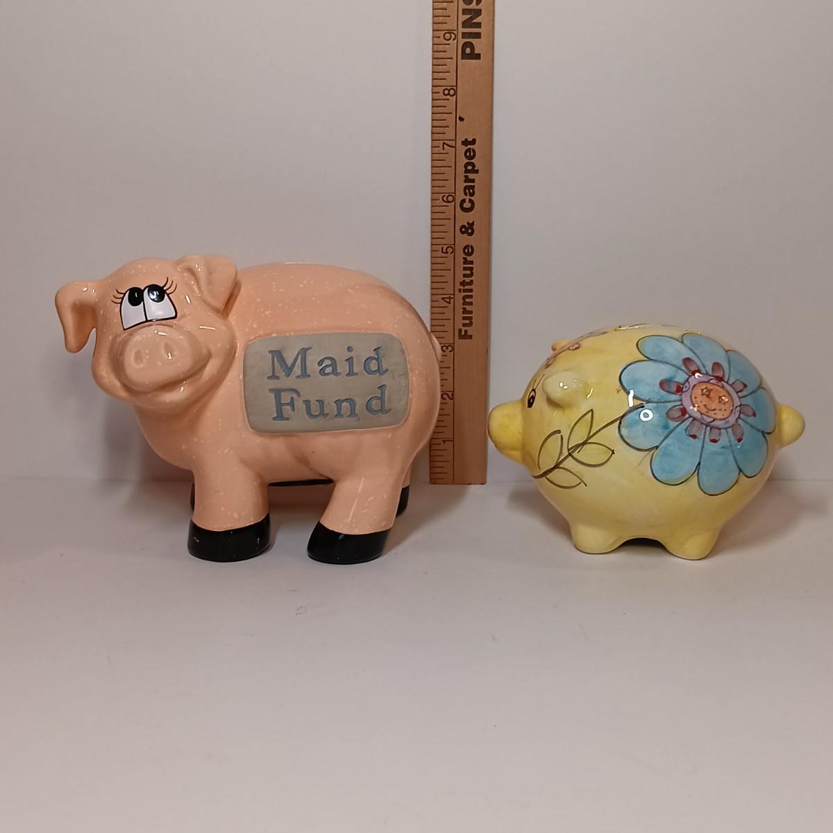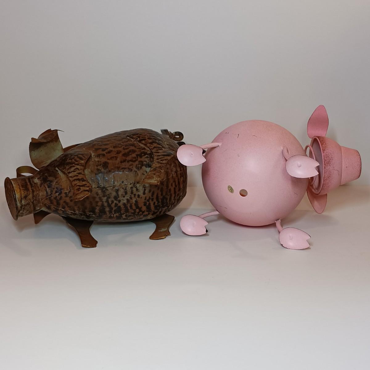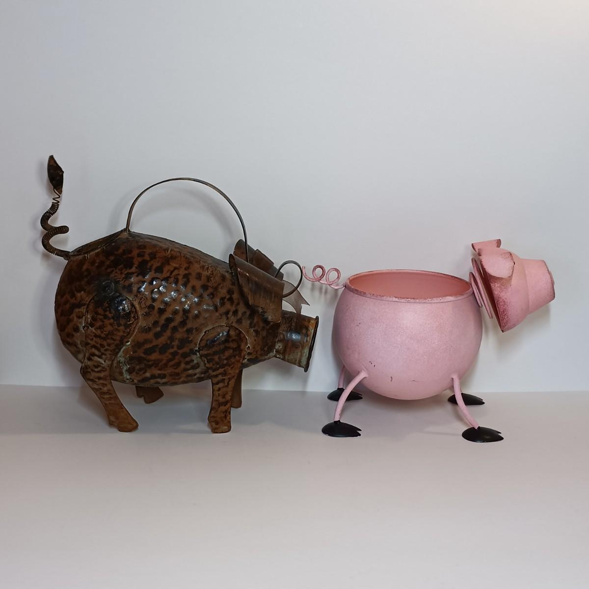 LOT19-O: Cute Pig Collection including Metal Watering Can, Planter, Candles and Banks