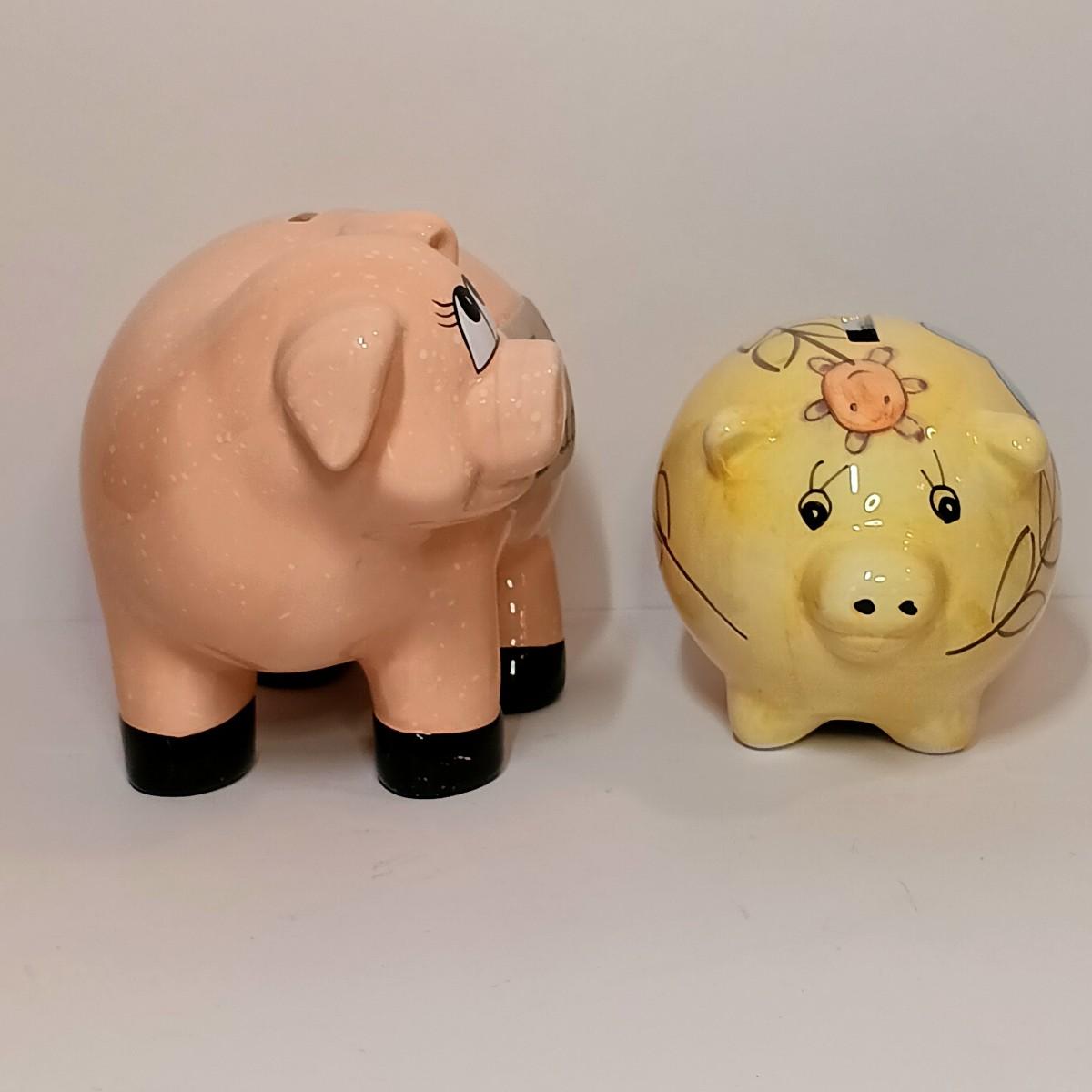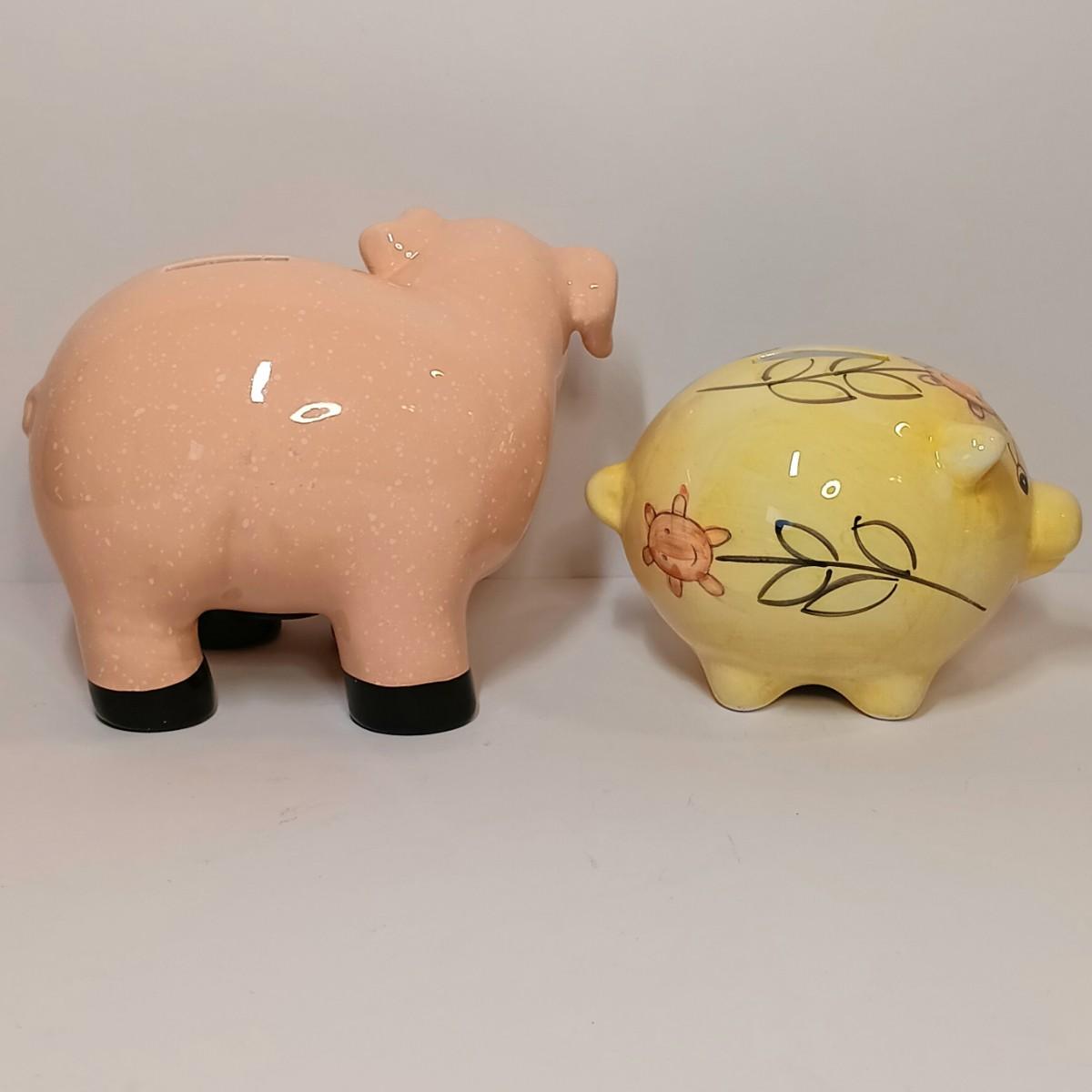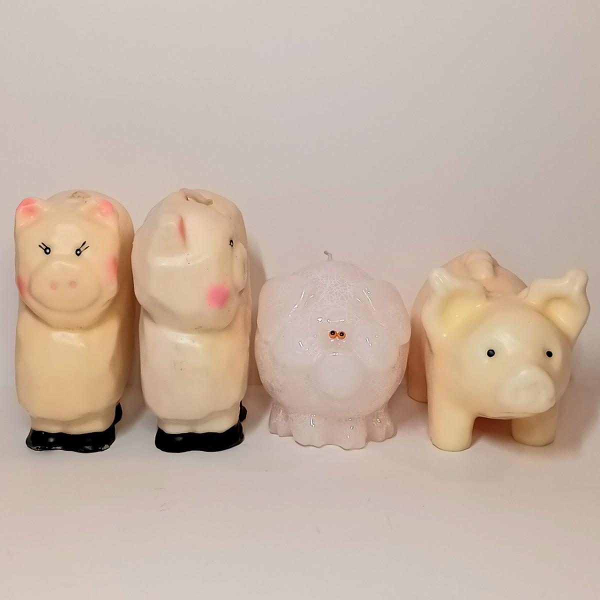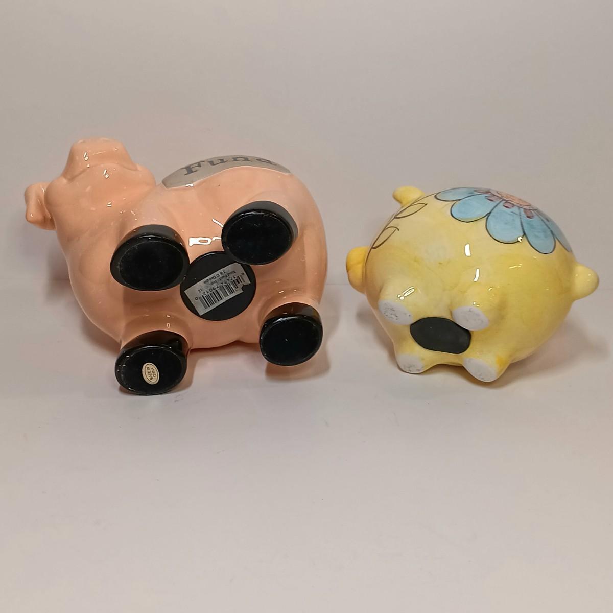 LOT19-O: Cute Pig Collection including Metal Watering Can, Planter, Candles and Banks