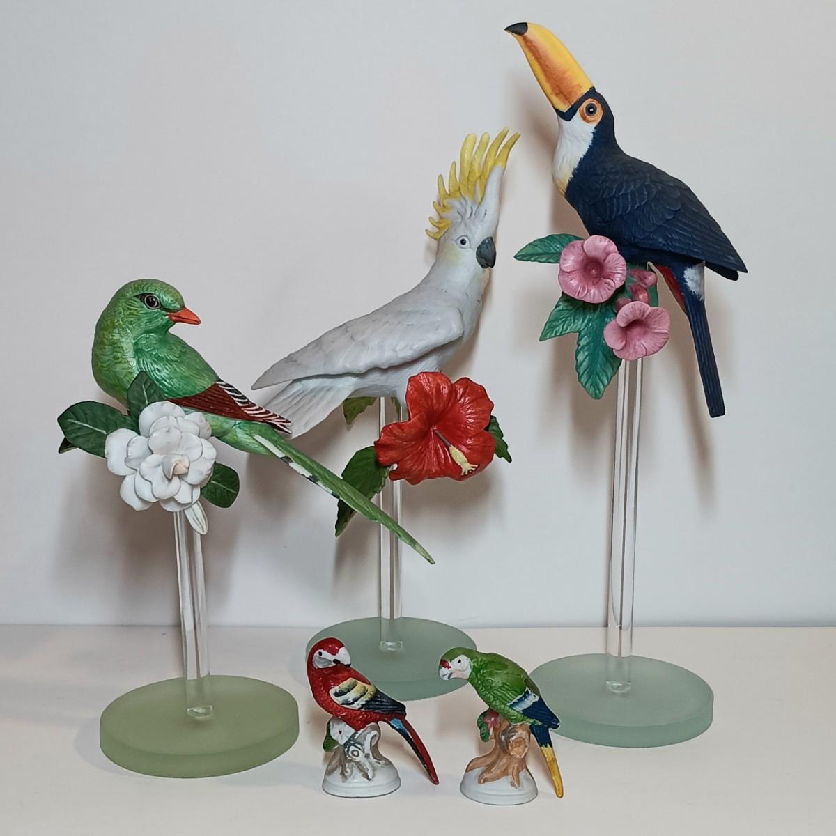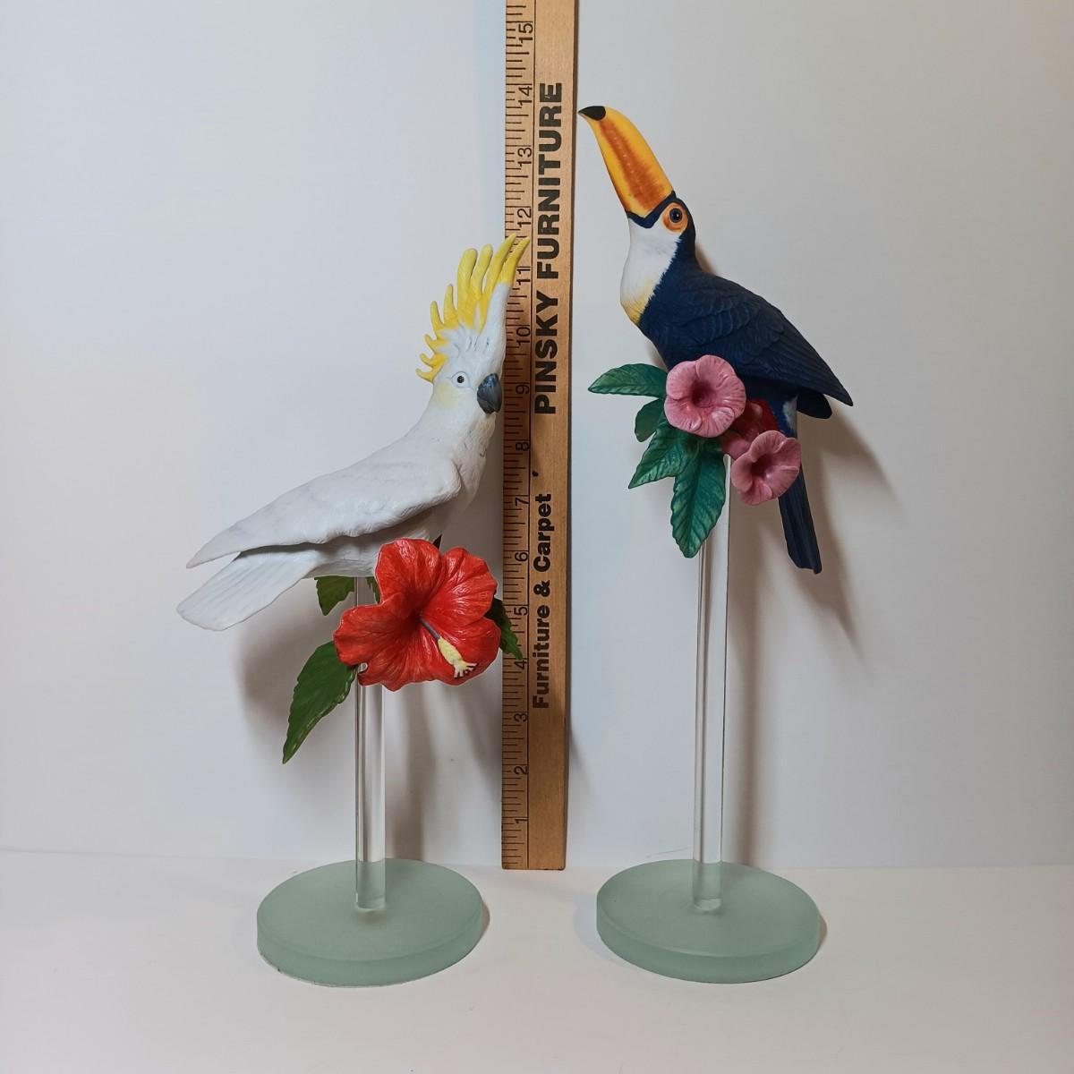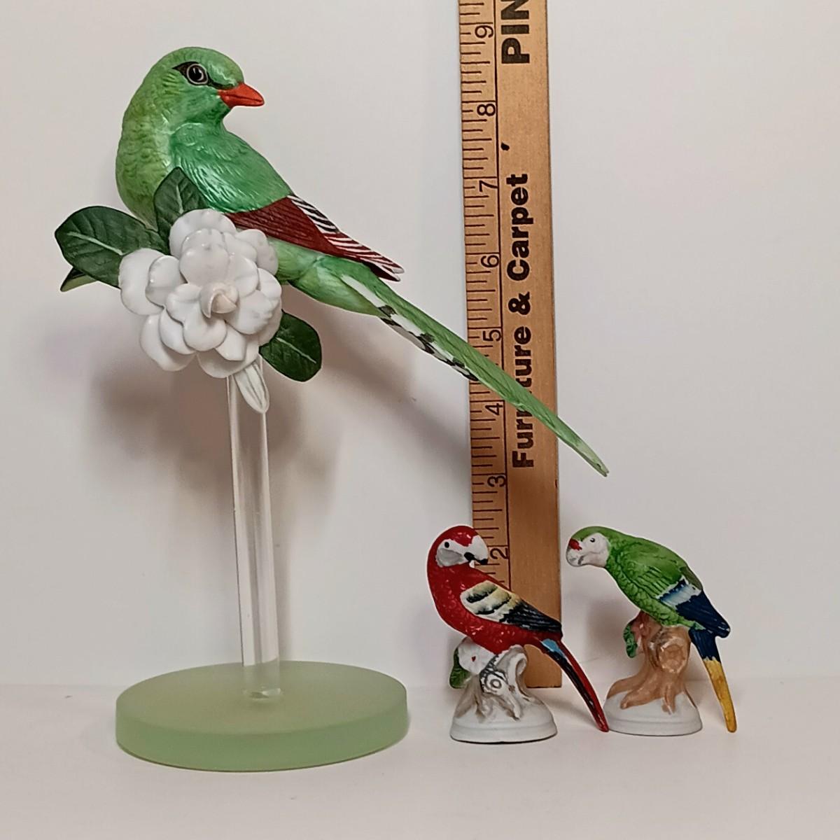LOT22-O: Set of 3 Vintage Franklin Mint Tropical Bird Figurines with 2 Small Parrot Figures