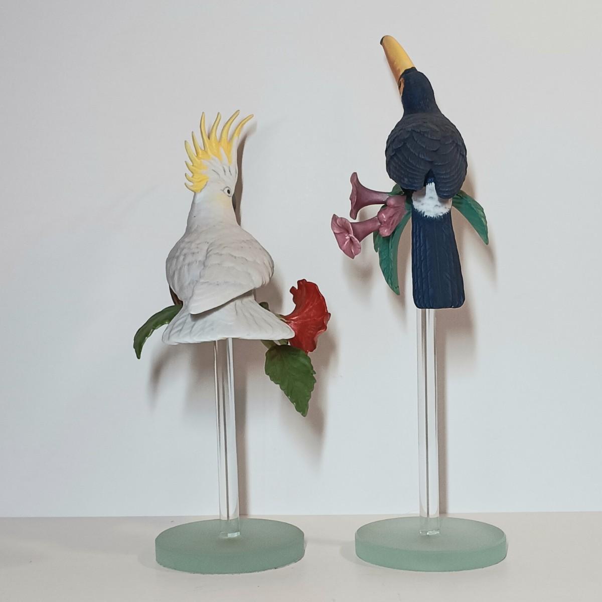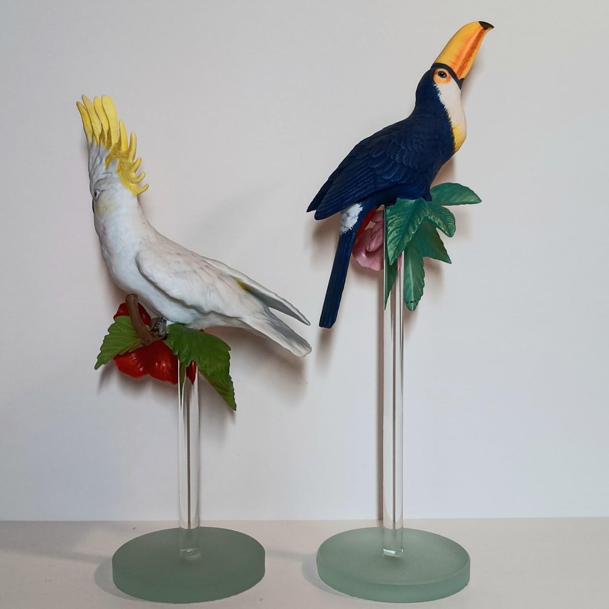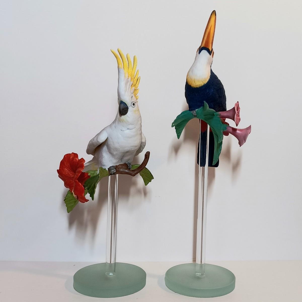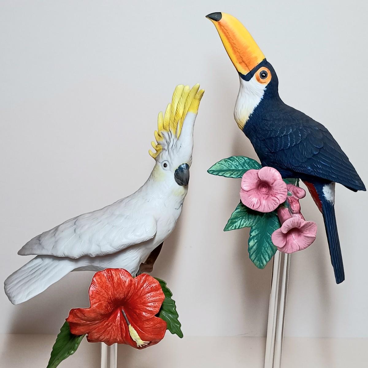 LOT22-O: Set of 3 Vintage Franklin Mint Tropical Bird Figurines with 2 Small Parrot Figures