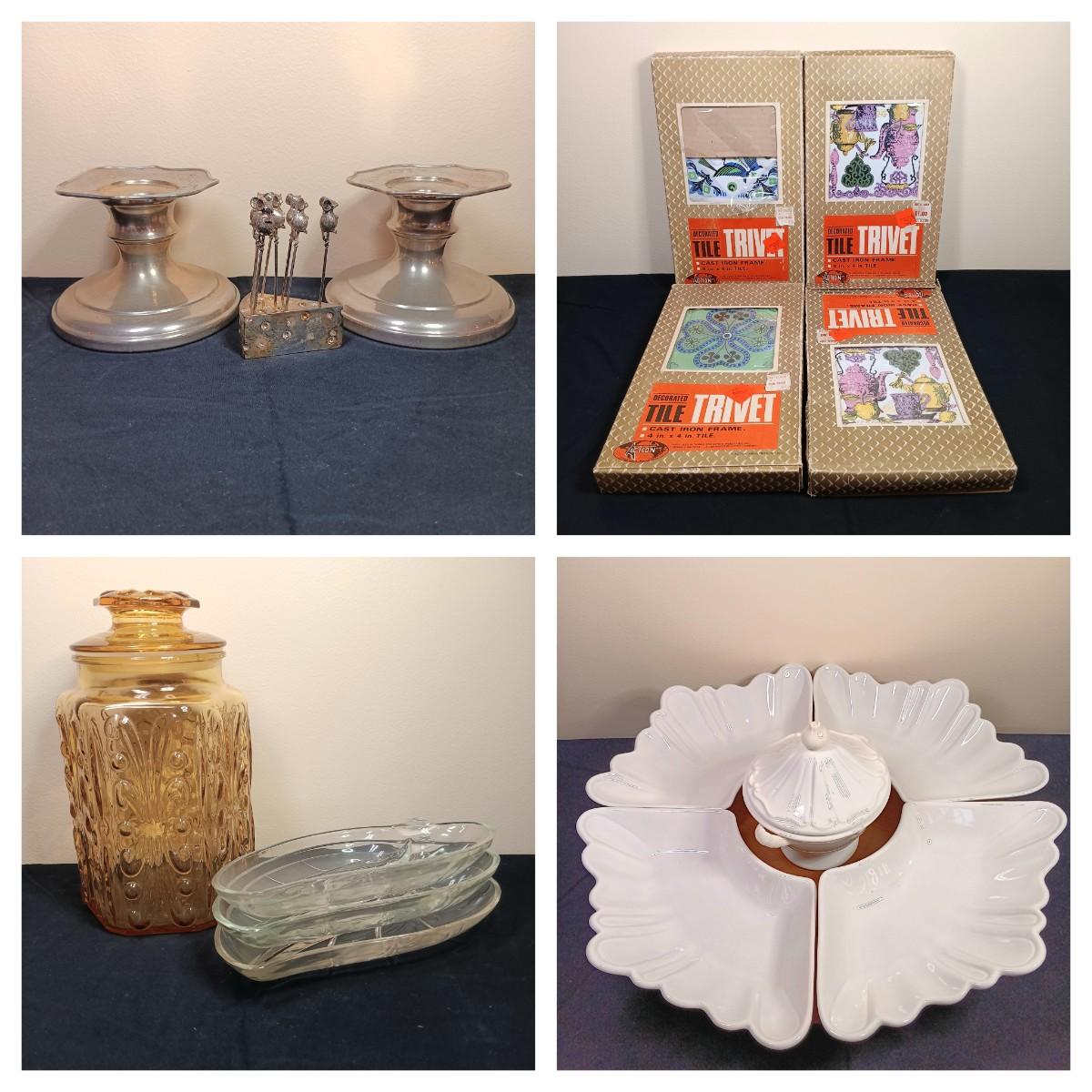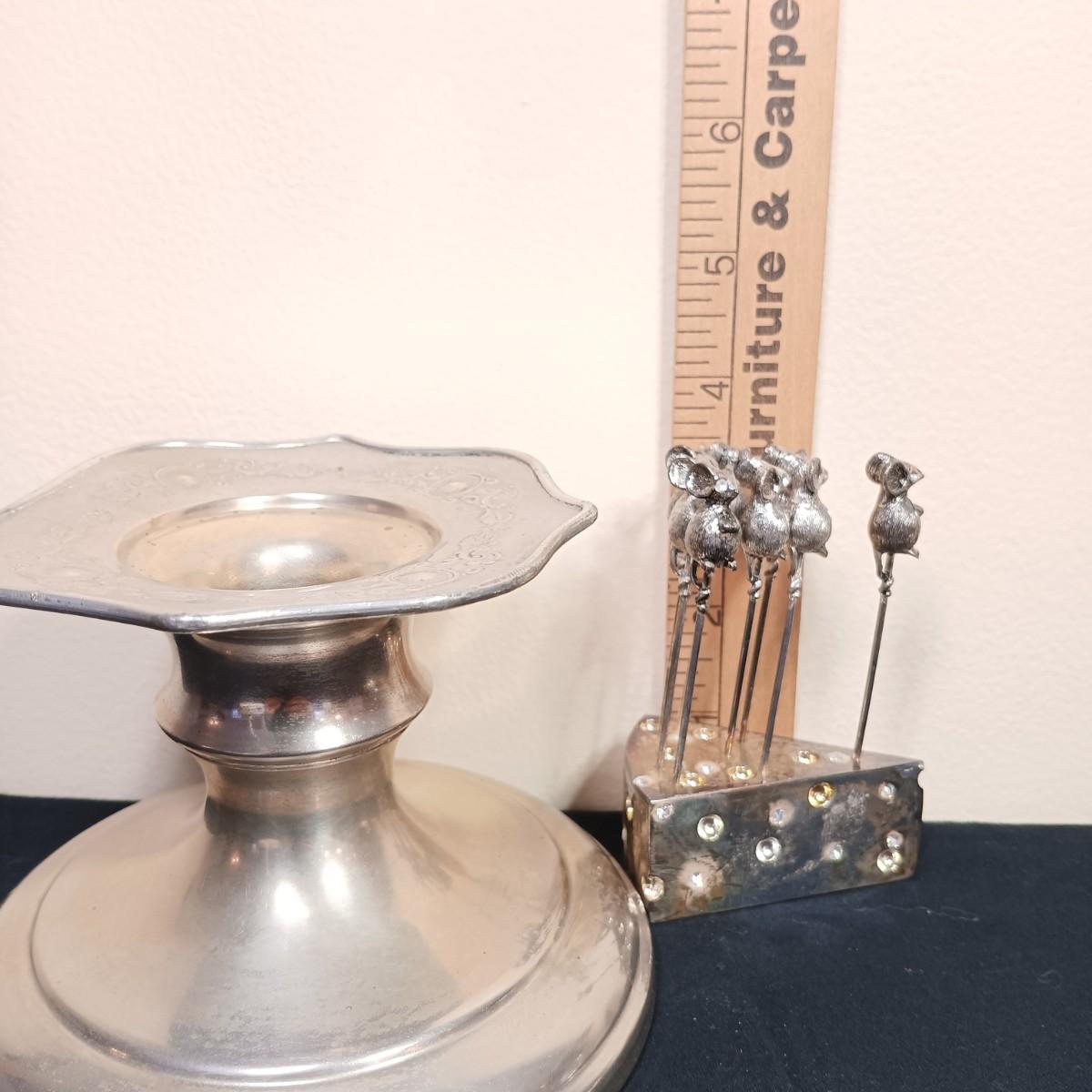 LOT 29-O: Vintage Kitchen Collection- Godinger Silver Plated Skewer Set, Lenox Sugar Bowl & More