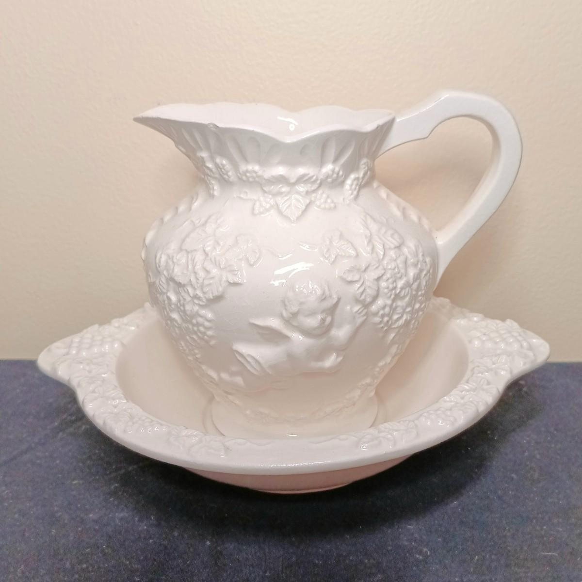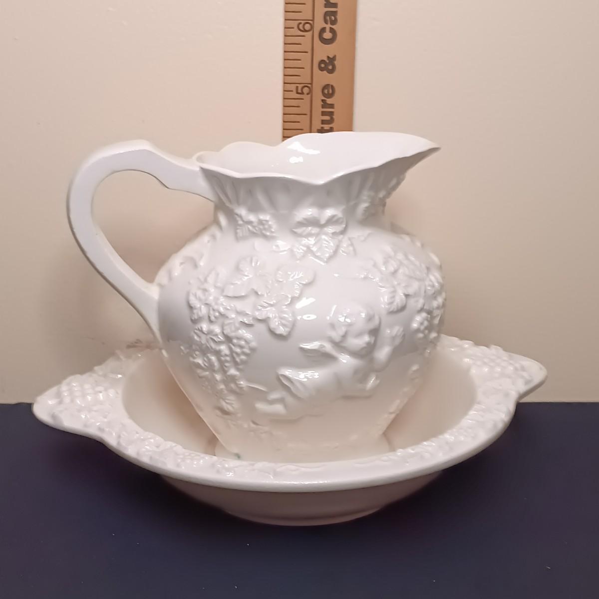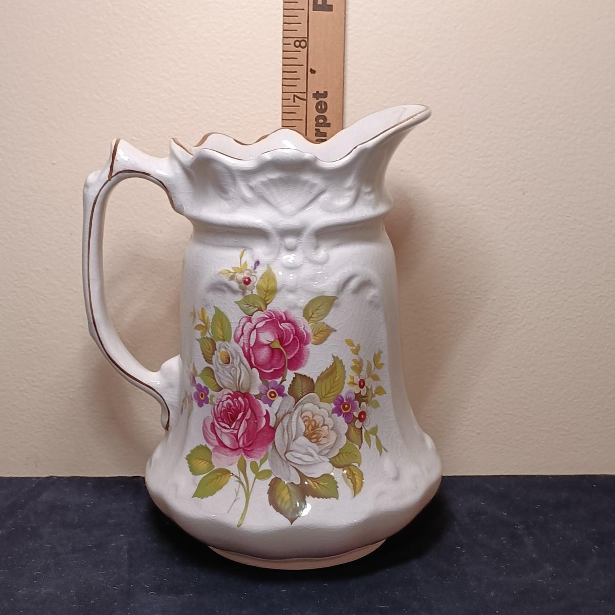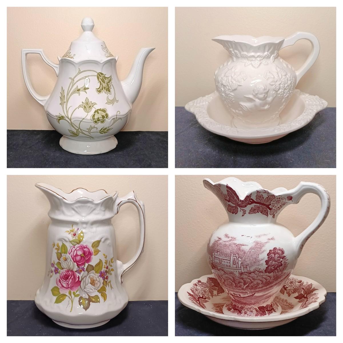 LOT40KP: Royal Staffordshire Teapot w/ Lefton Pitcher and Bowl, James Kent Pitcher & One Other
