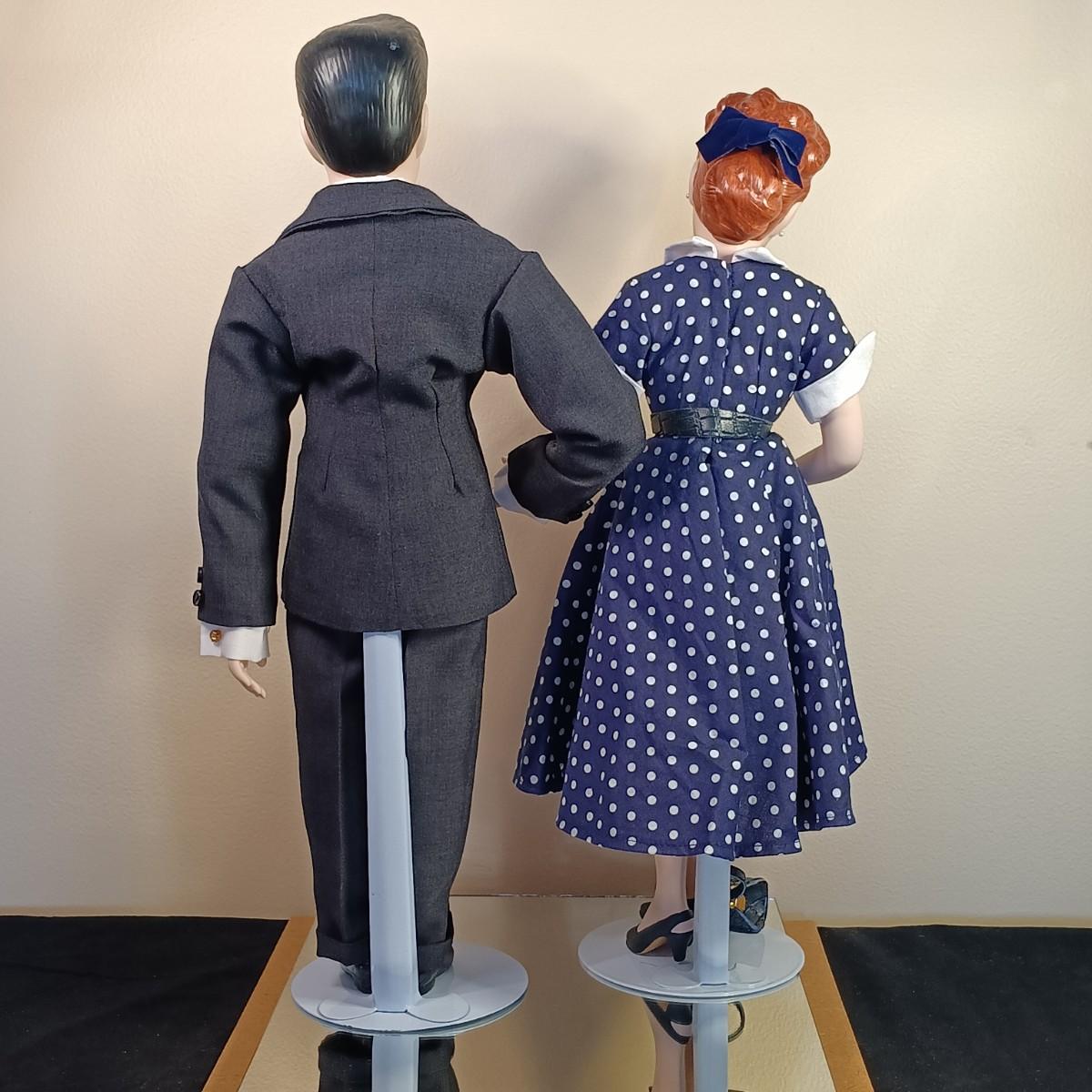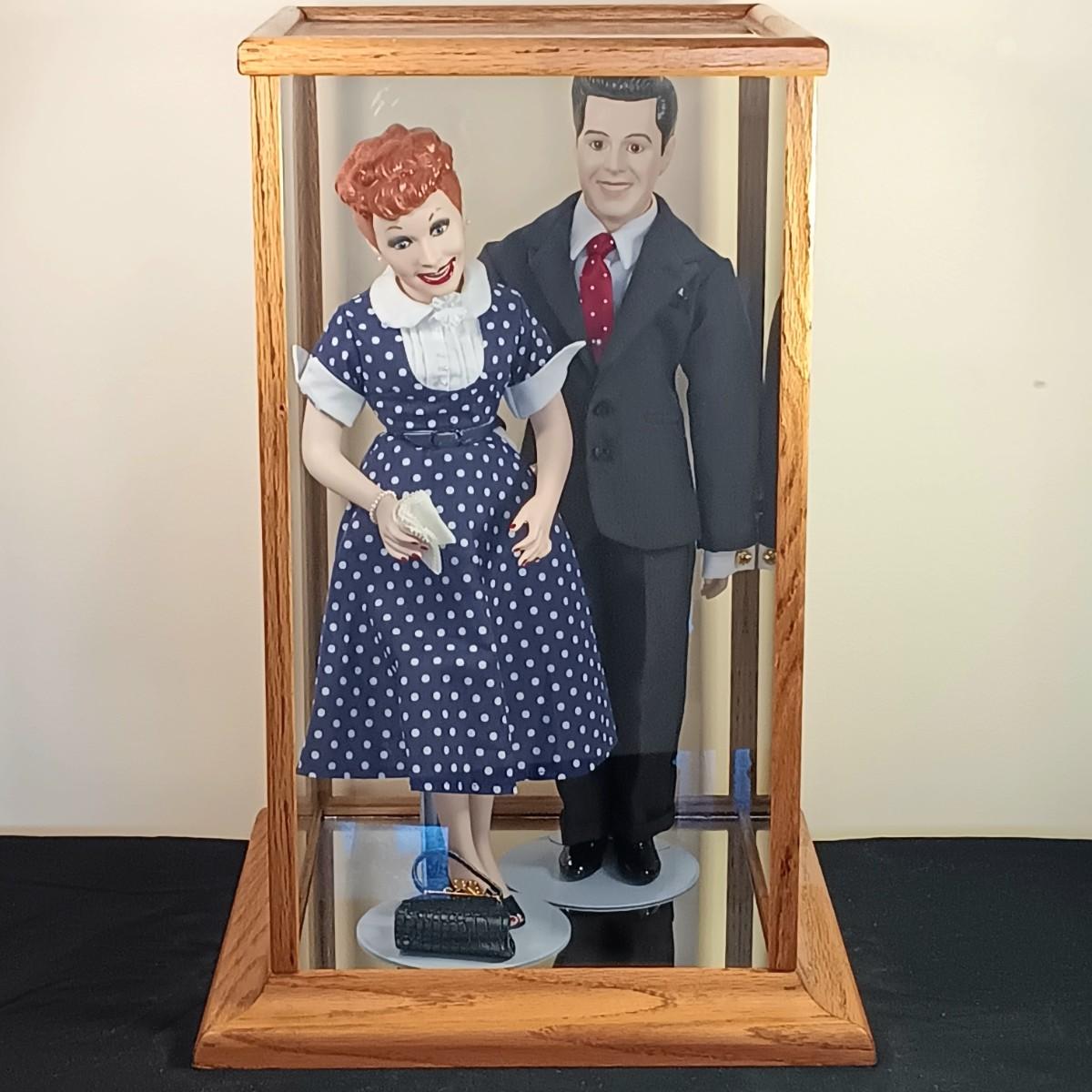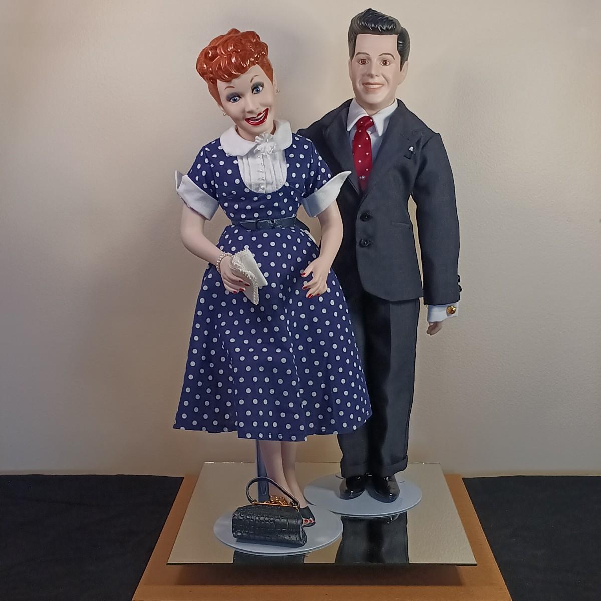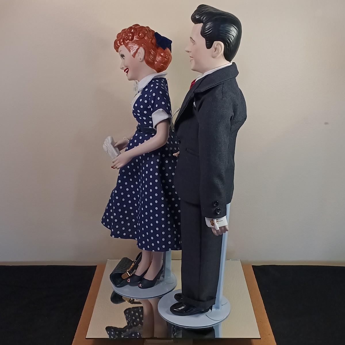 LOT 50K: Vintage 1990s Hamilton Collection Lucille Ball & Desi Arnaz Dolls w/ Display Case