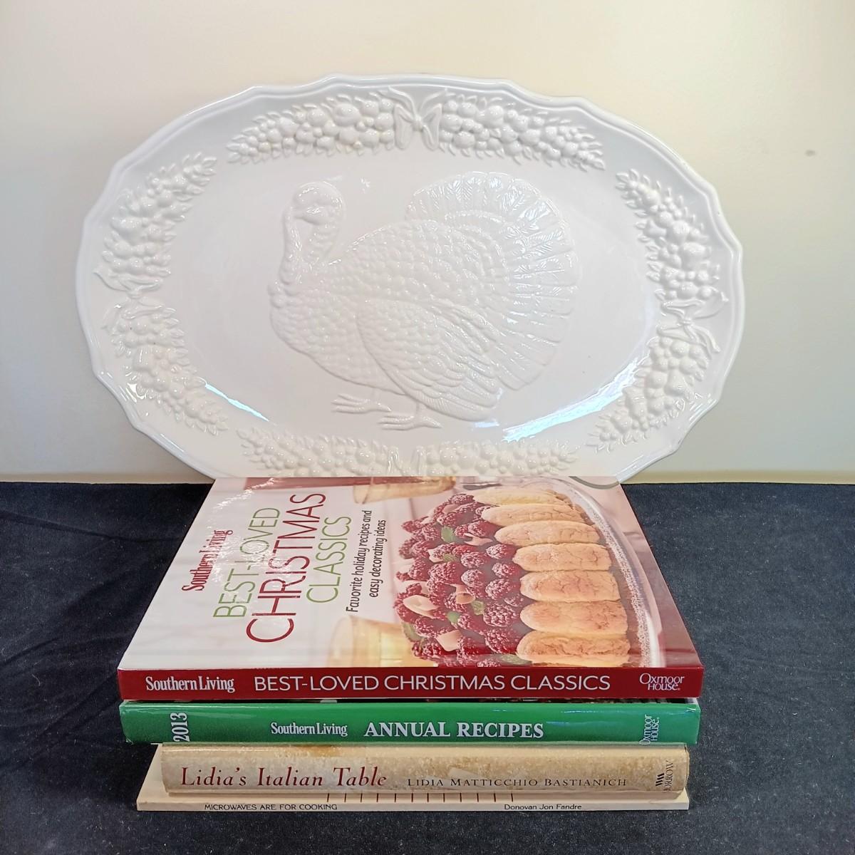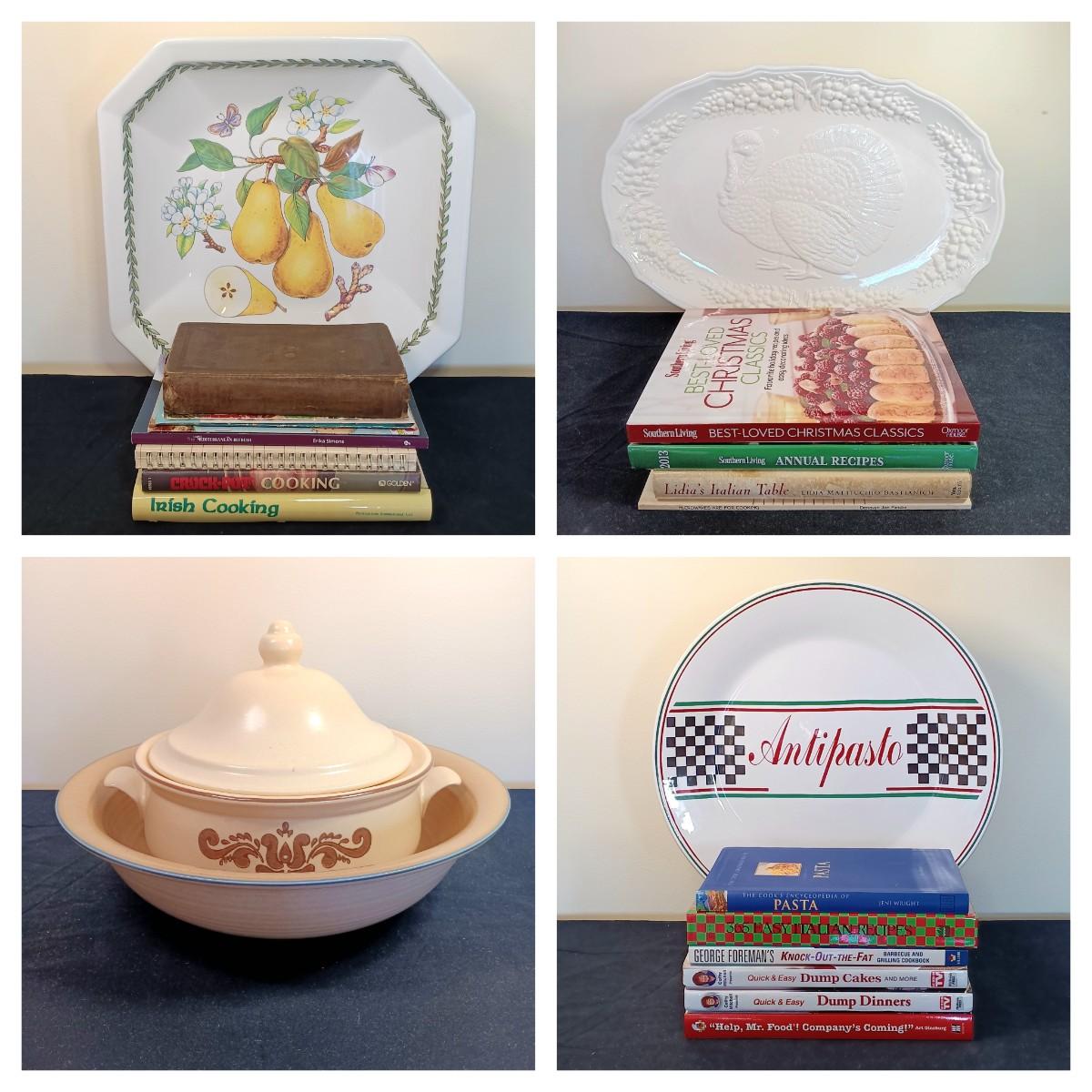 LOT 52K: Kitchen Collection: Vintage Cookbooks, Pfaltzgraff Bowl and Tureen, Napcoware Turkey Plate & More