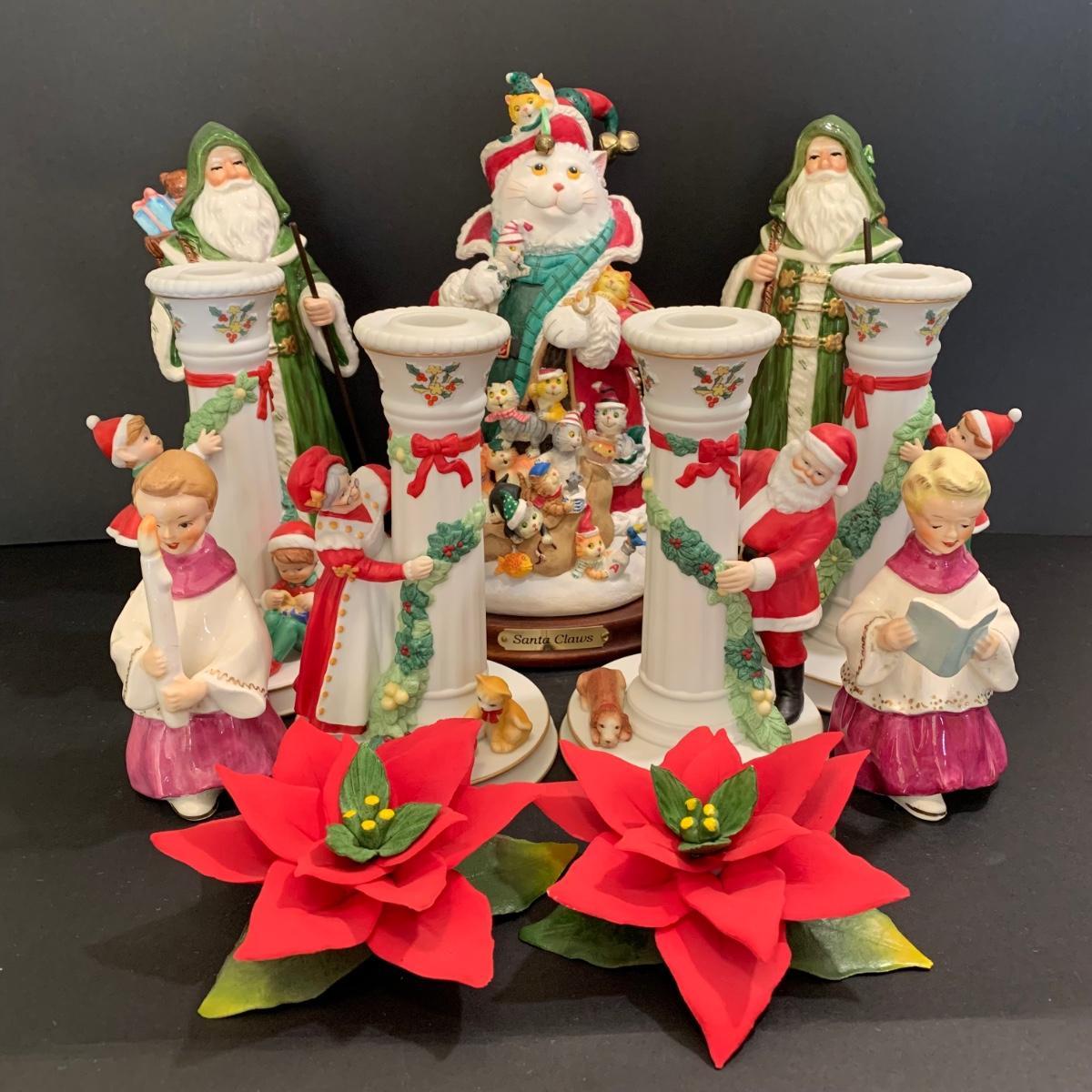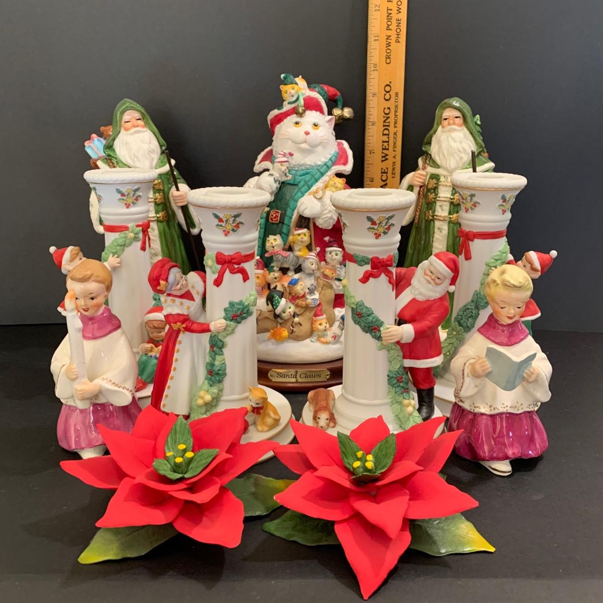 LOT 73 FB: Vintage 1991 Lefton "Christmas In Killarney Musical Santas, Napco Ceramics Alter Boys, Fabar Porcelain Poinsettias & More