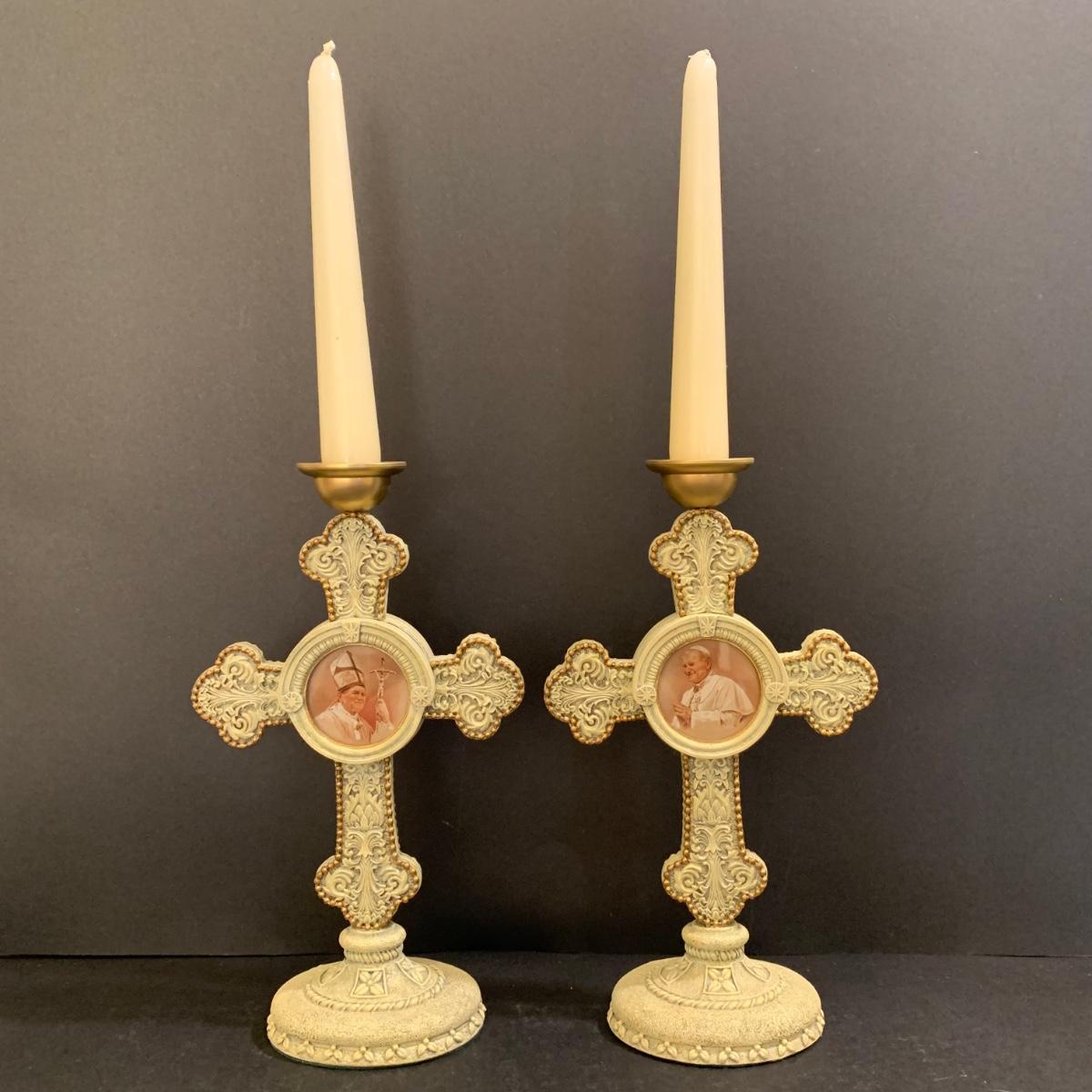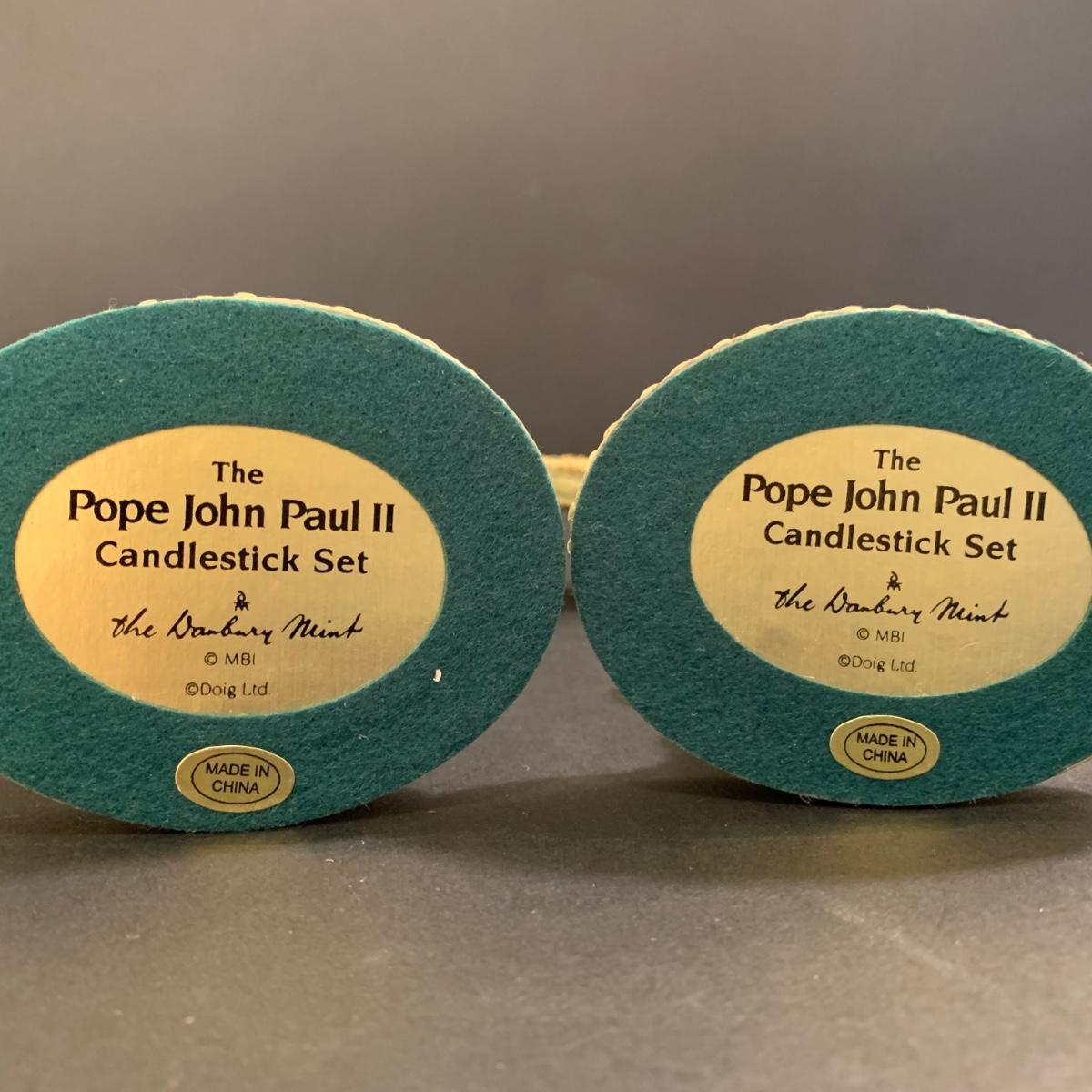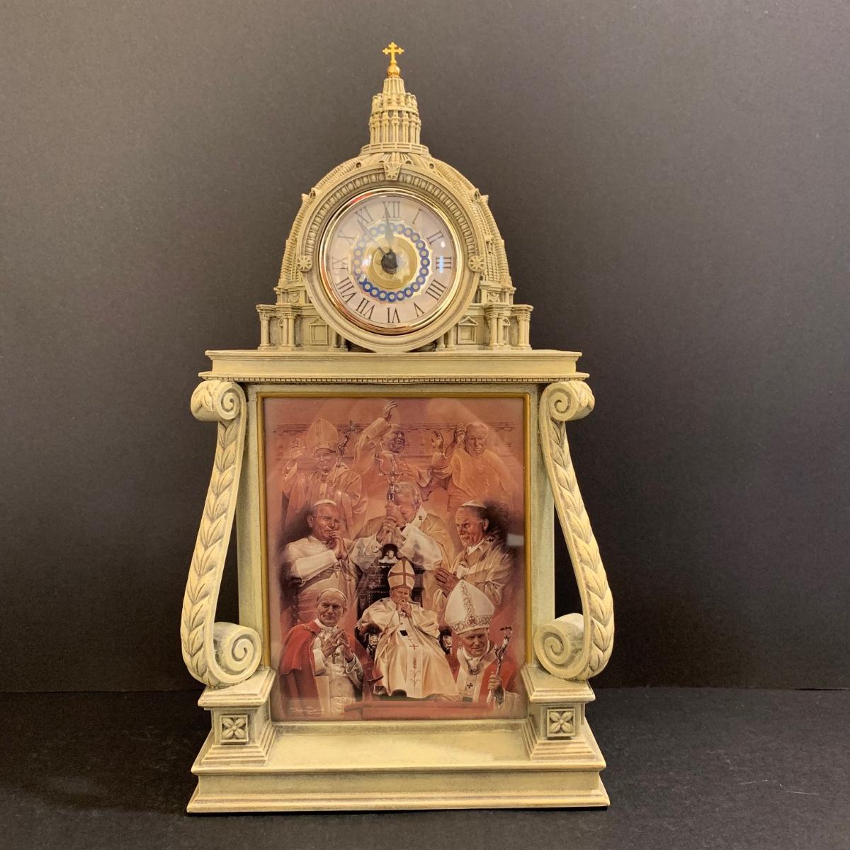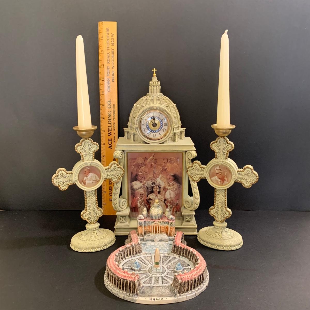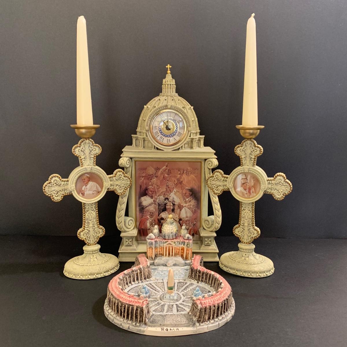 LOT 78 FB: The Pope John Paul II Collector Clock" & "The Pope John Paul II Candlestick Set" From The Danbury Mint W/ Italian Ceramic Rome Sculpture