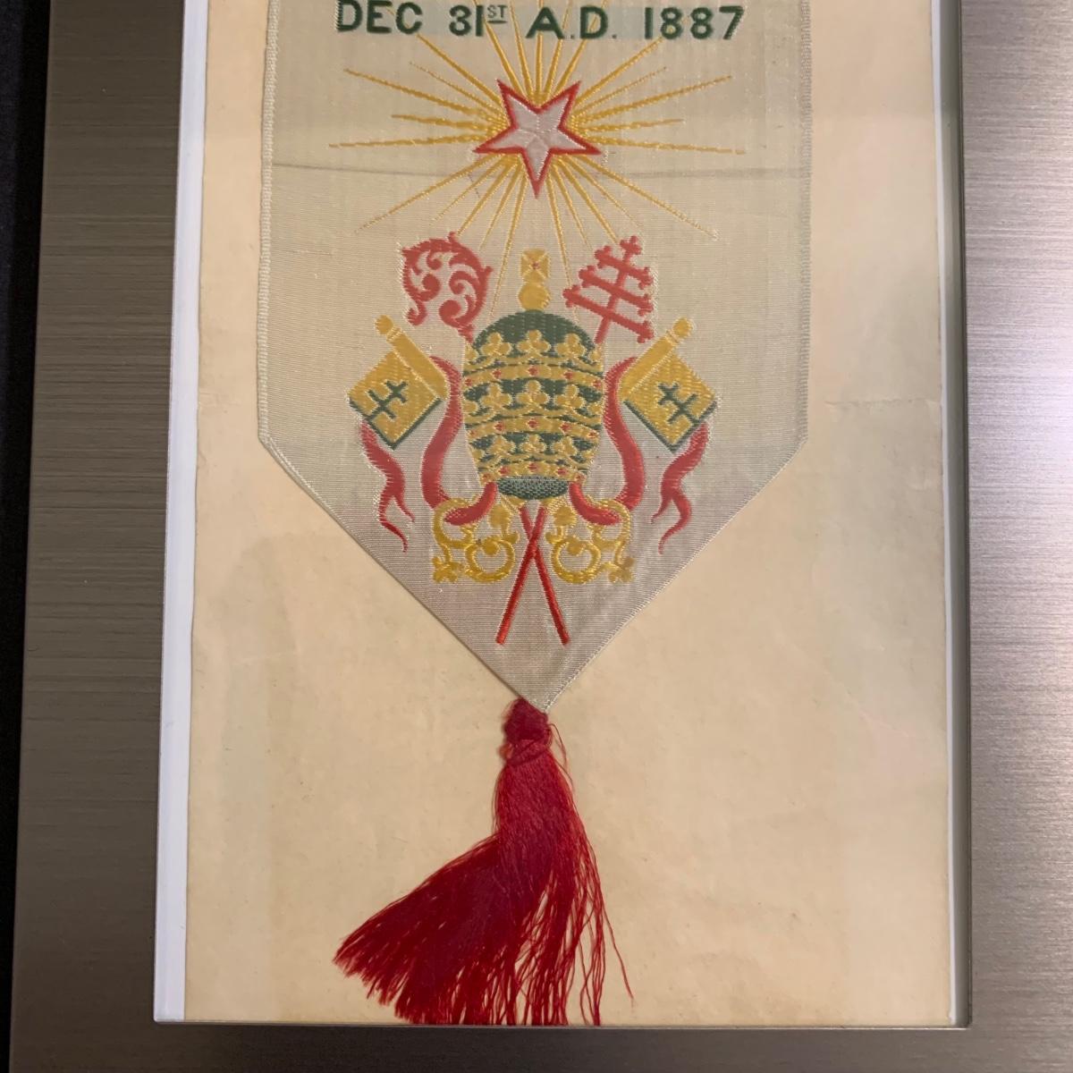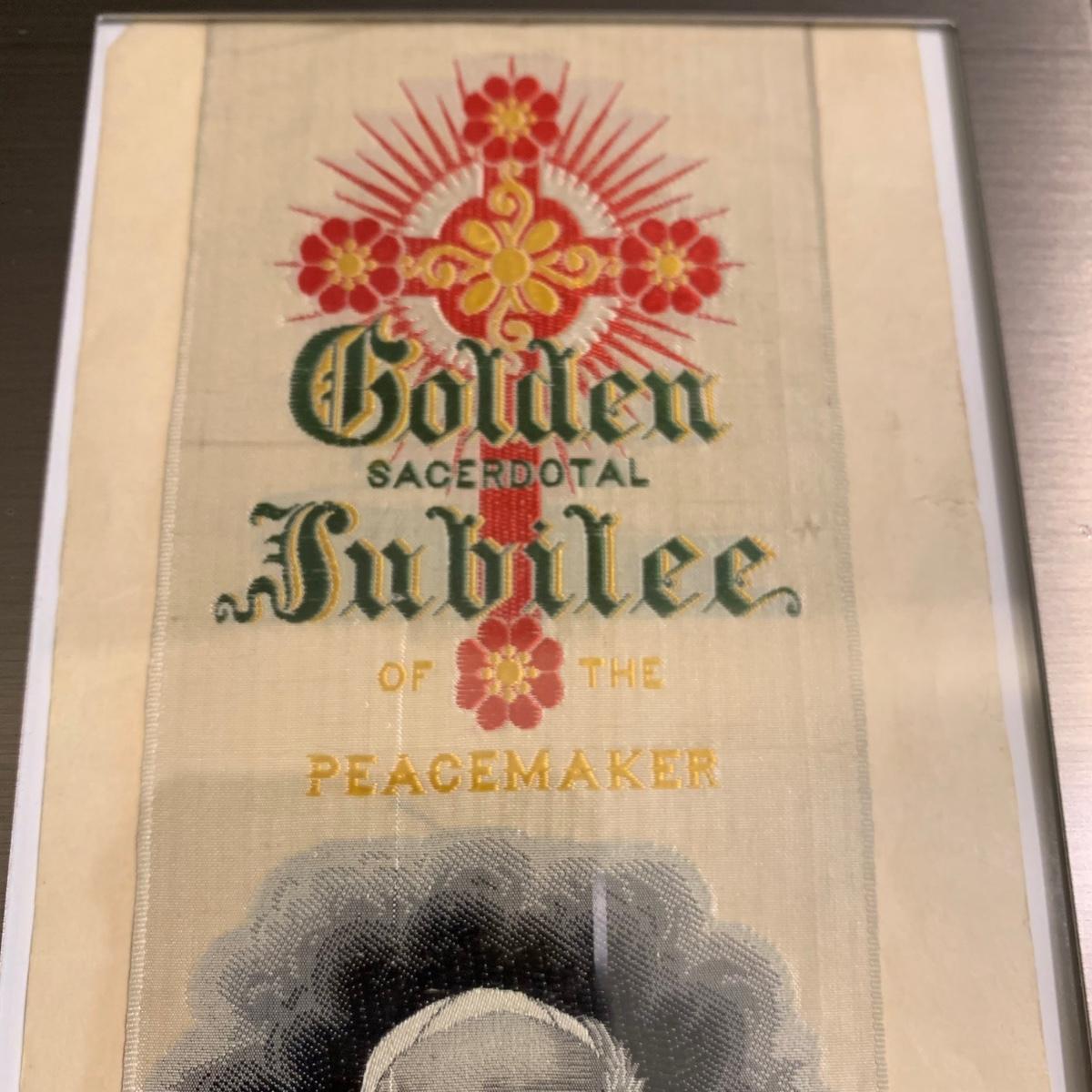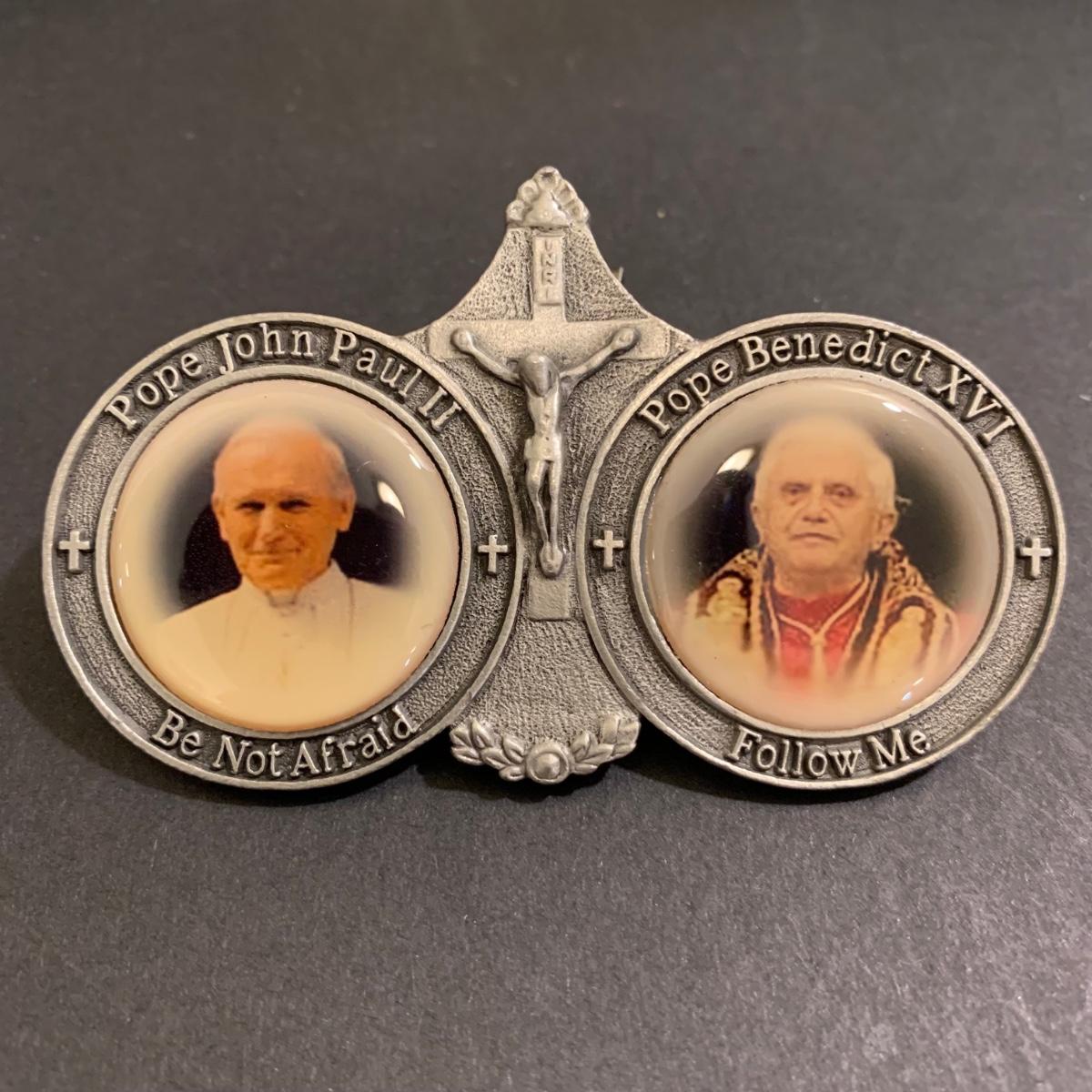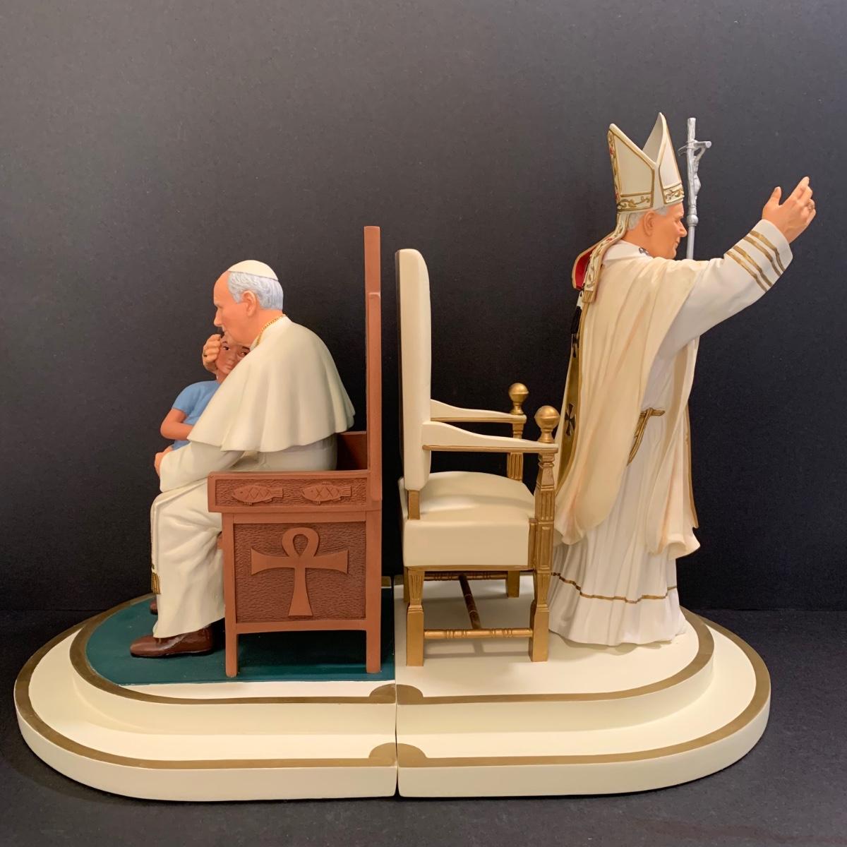 LOT 79 FB: "The Holy Father" & Millennium Blessing" Sculptures From The Danbury Mint, Pope John Paul II & Benedict XVI Photo Clip, & Golden Jubilee Ribbon For Pope Leo XII