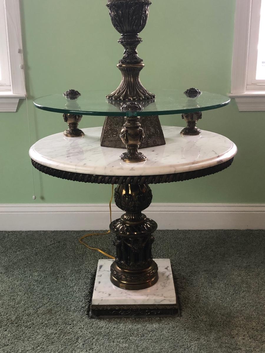 LOT 91L: Vintage / Mid Century Glass & Marble Lamp Table
