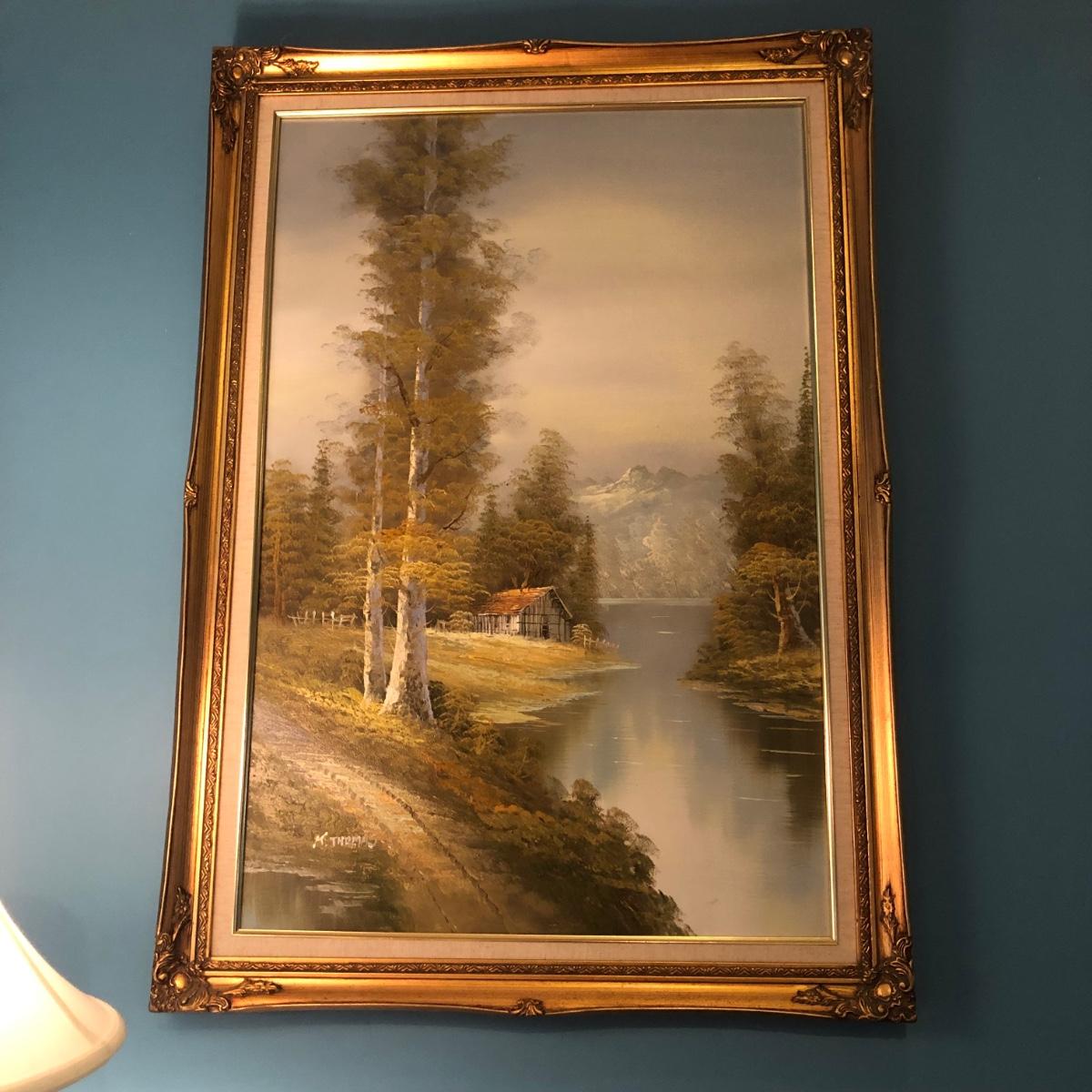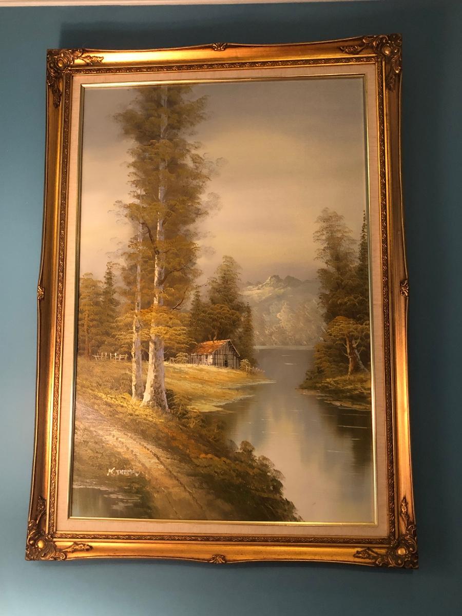 LOT 95MB: Beautifully Golden Framed Country Landscape Signed K. Thomas