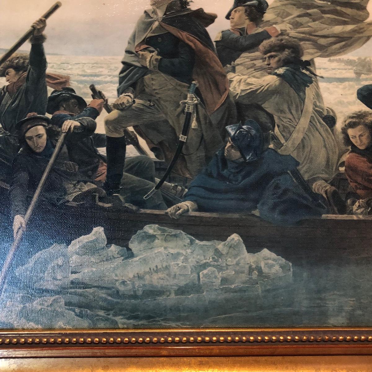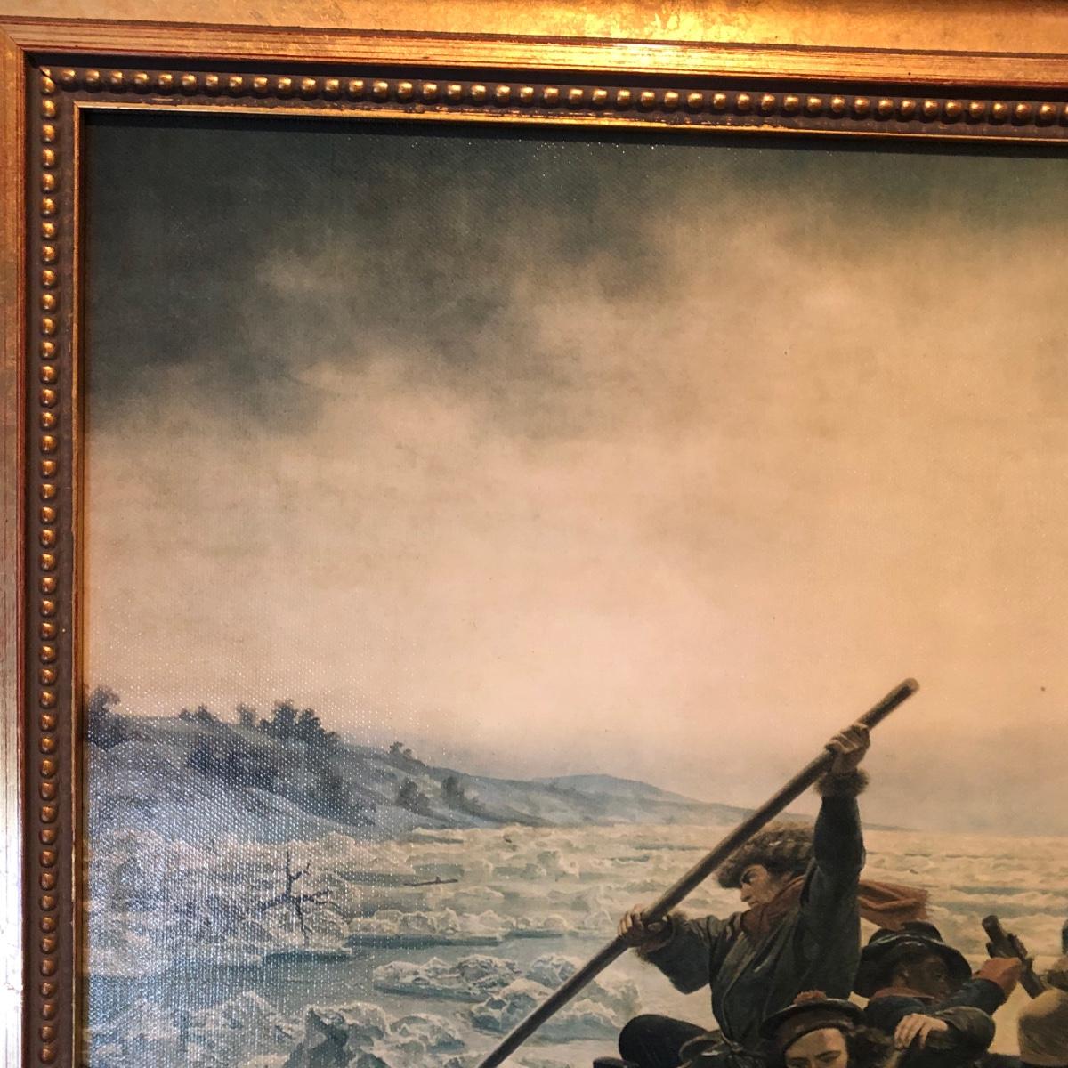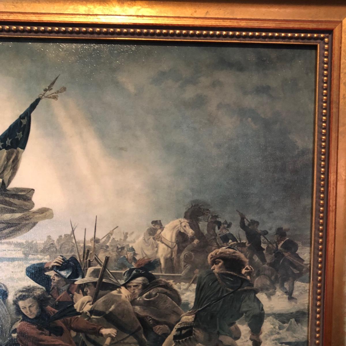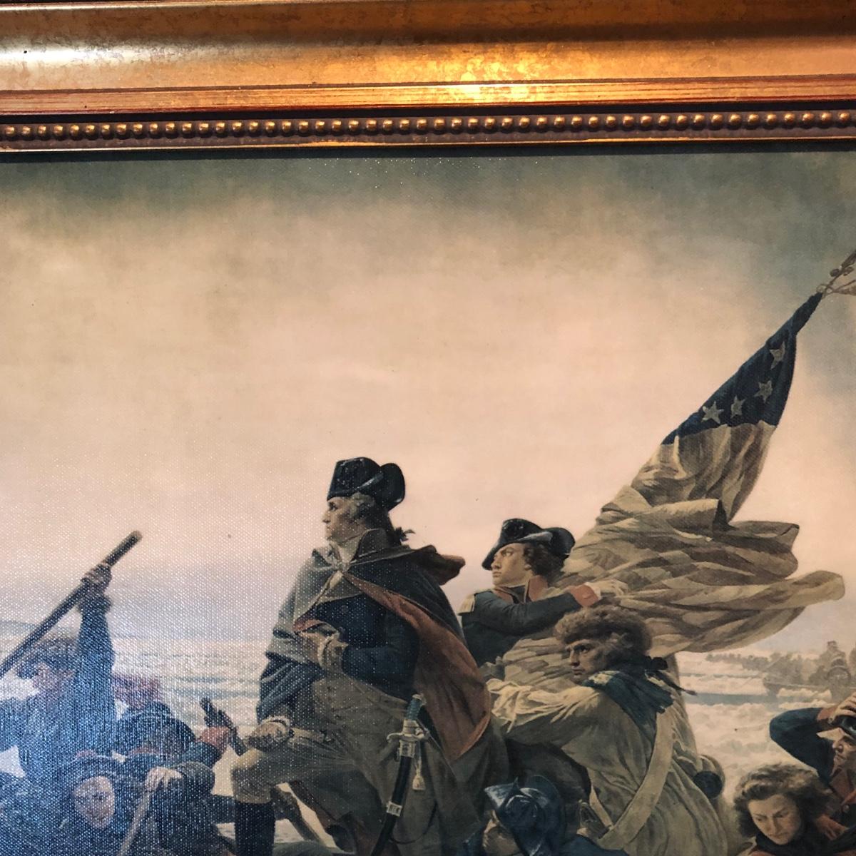 LOT 96MB: Gold Colored Framed Wall Art of the Iconic Washington Crossing the Delaware by Emanuel Leutze