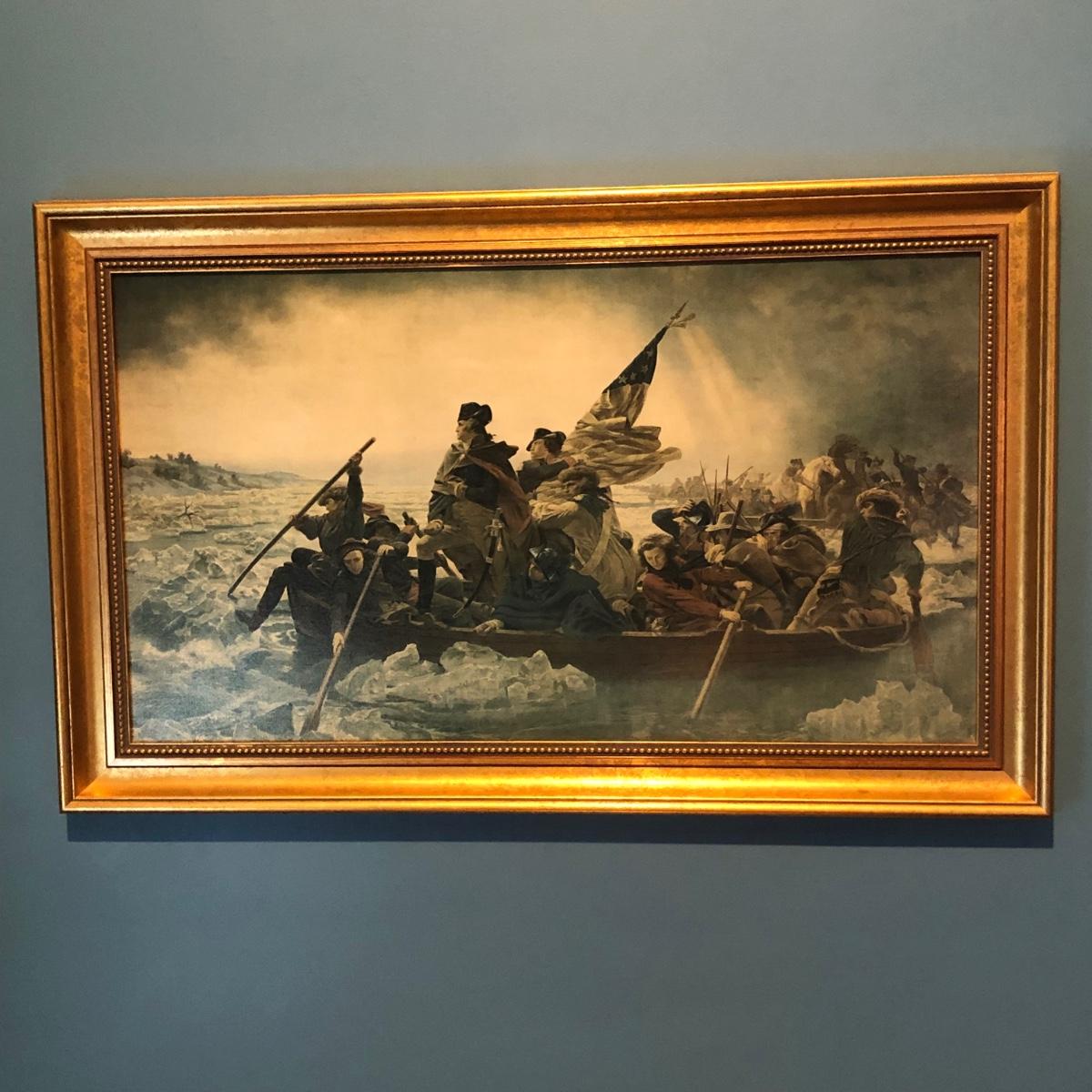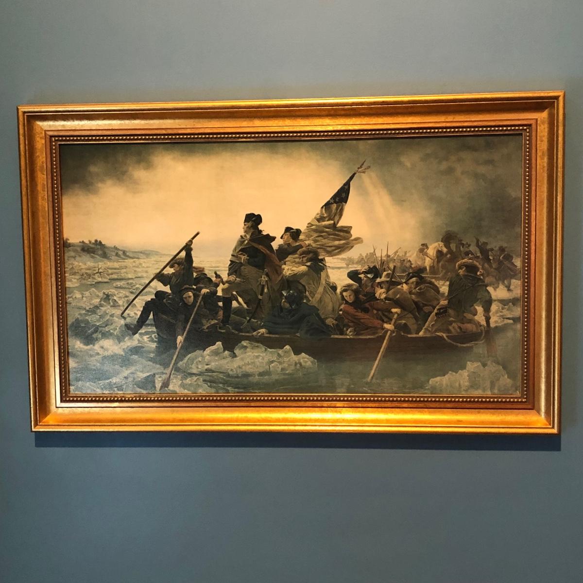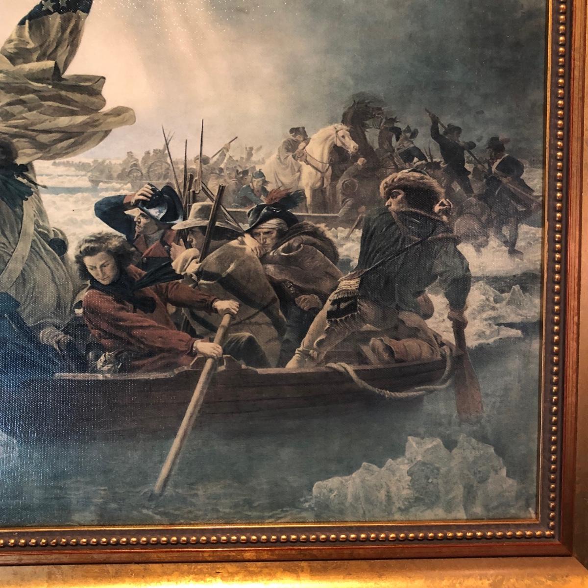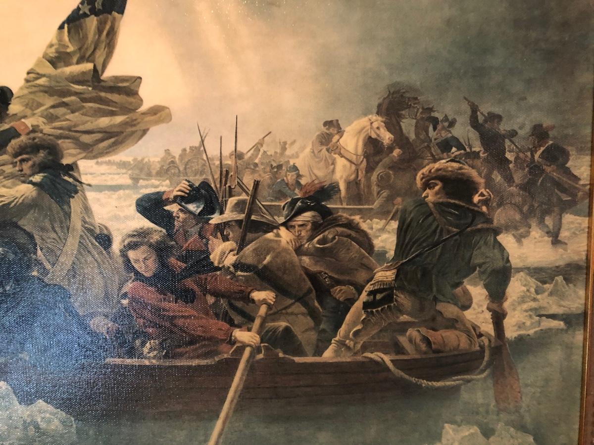 LOT 96MB: Gold Colored Framed Wall Art of the Iconic Washington Crossing the Delaware by Emanuel Leutze
