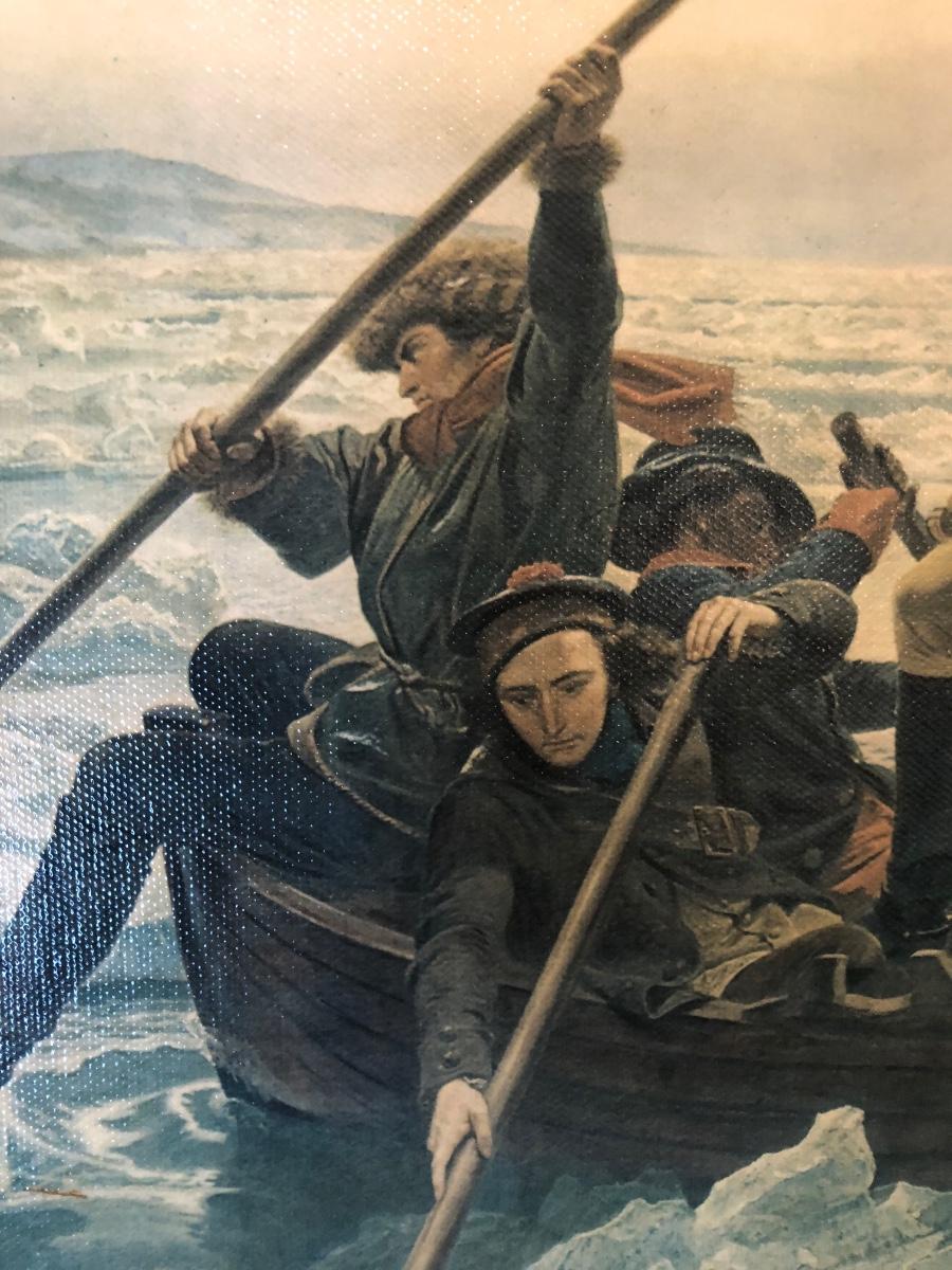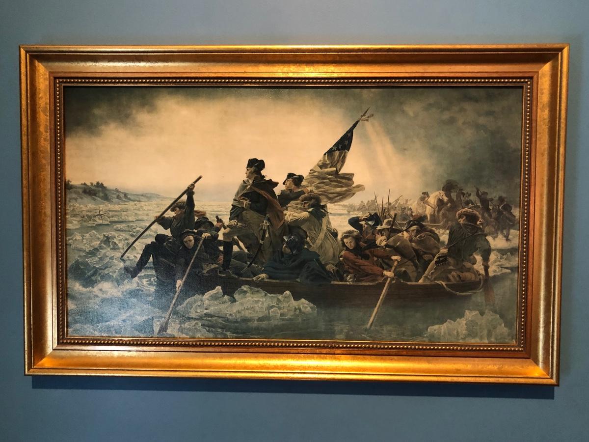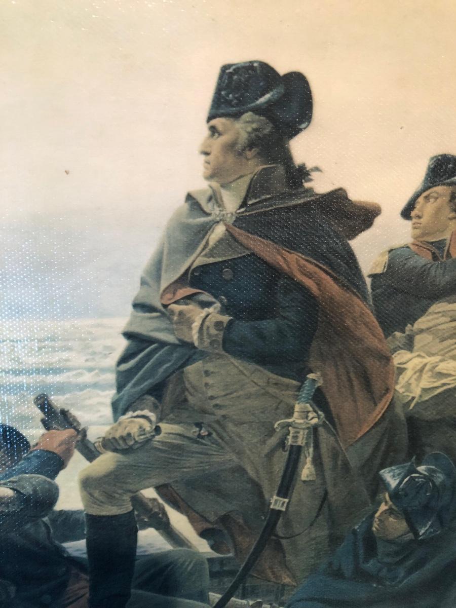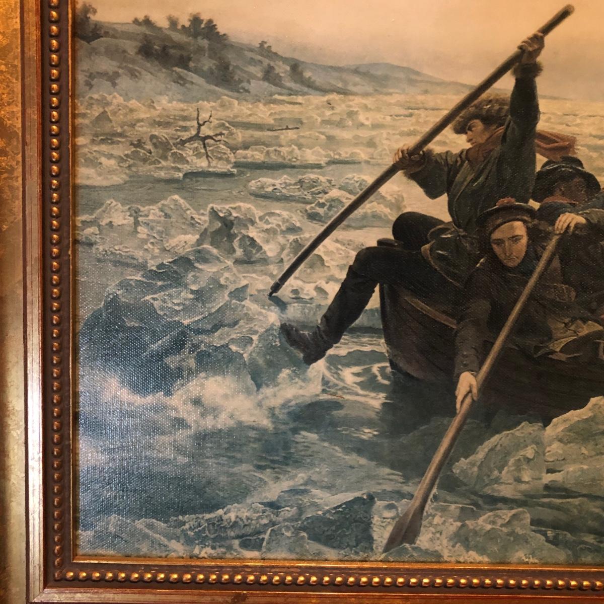 LOT 96MB: Gold Colored Framed Wall Art of the Iconic Washington Crossing the Delaware by Emanuel Leutze