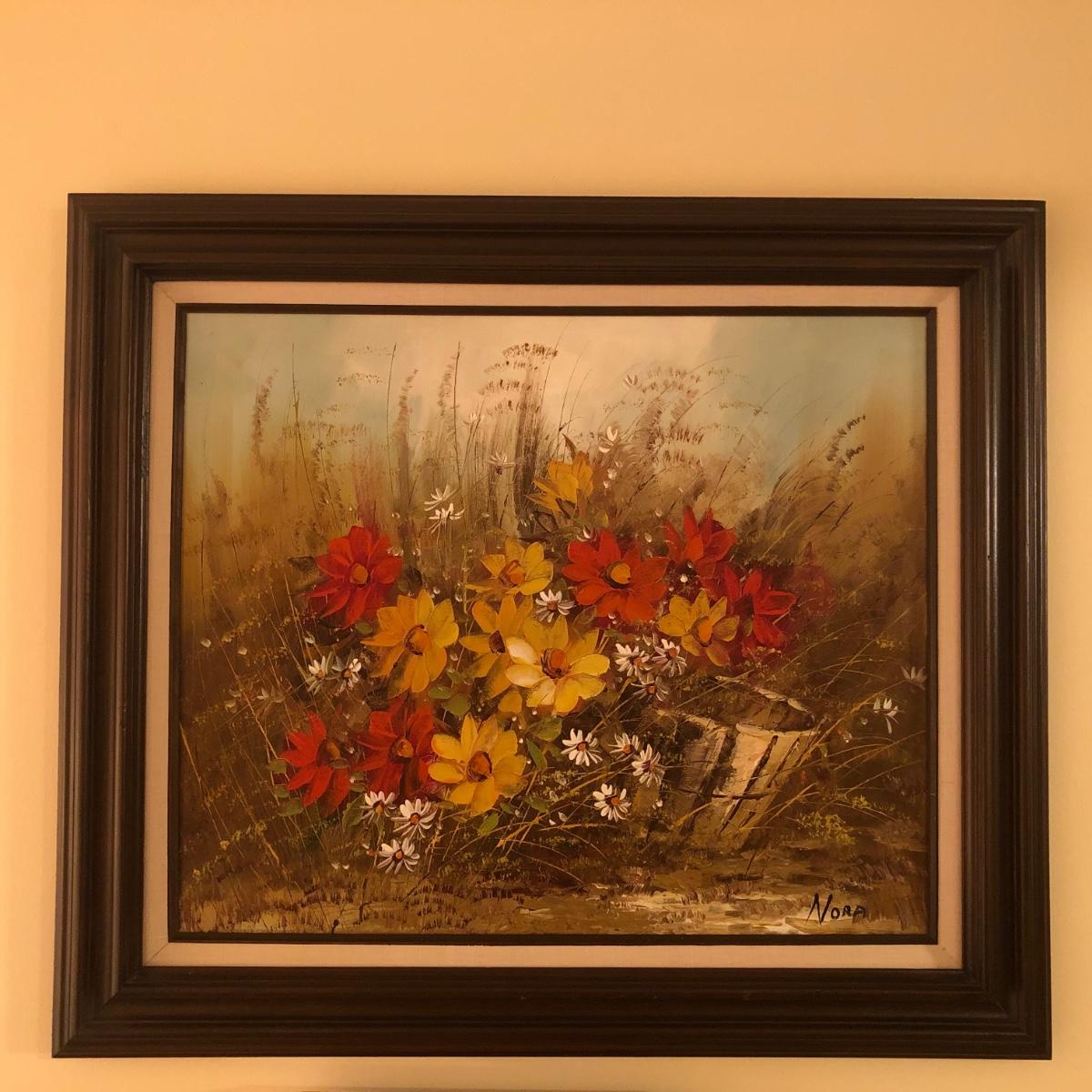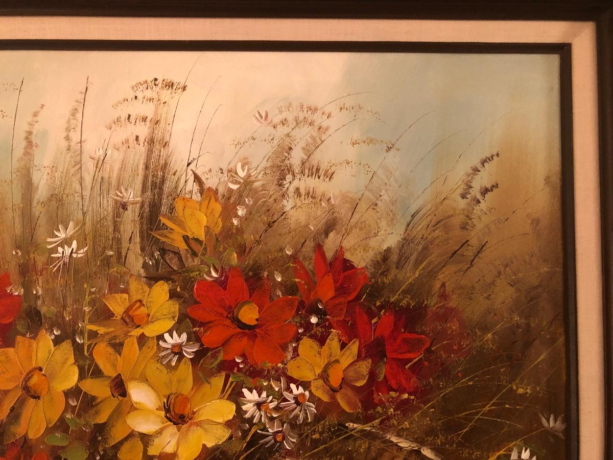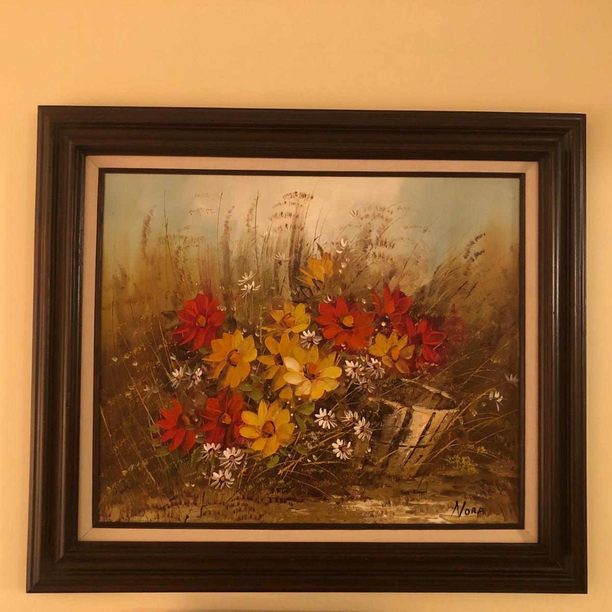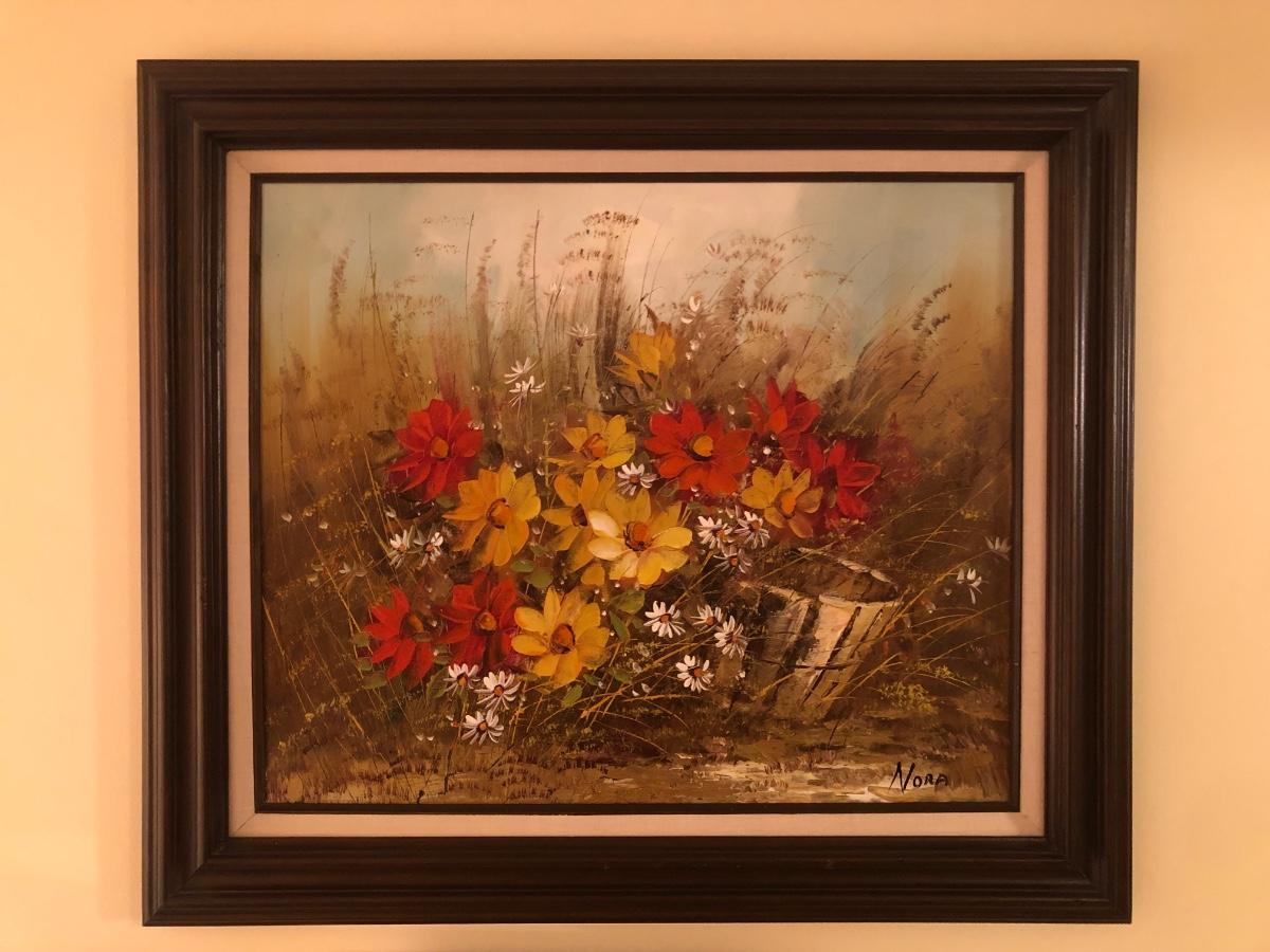 LOT 99U: Beautiful Wood Framed Floral Wall Art Signed NORA