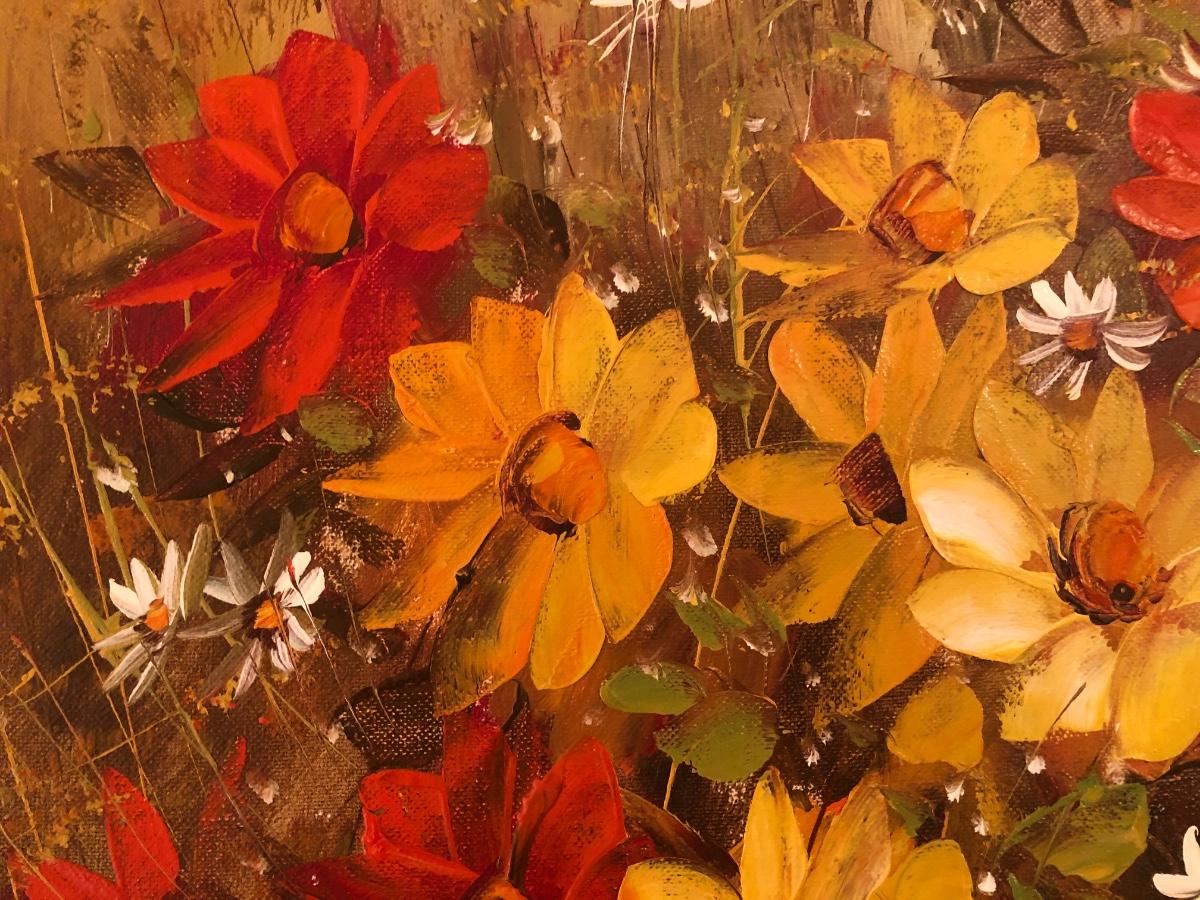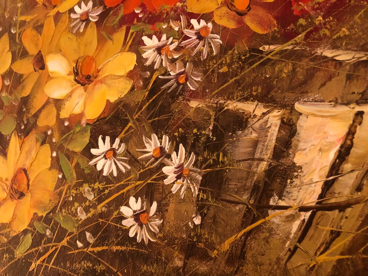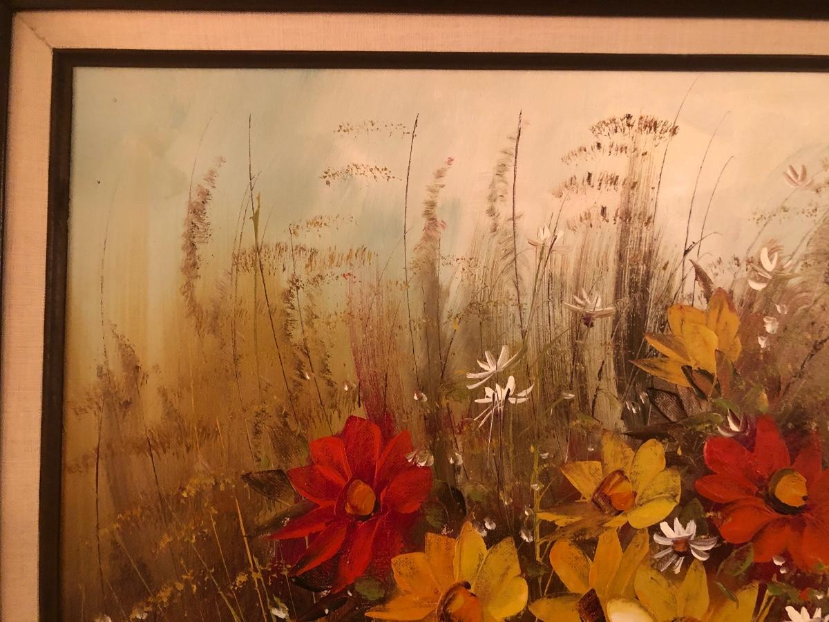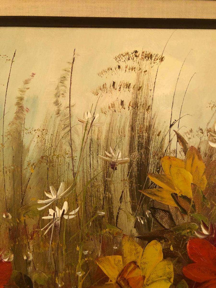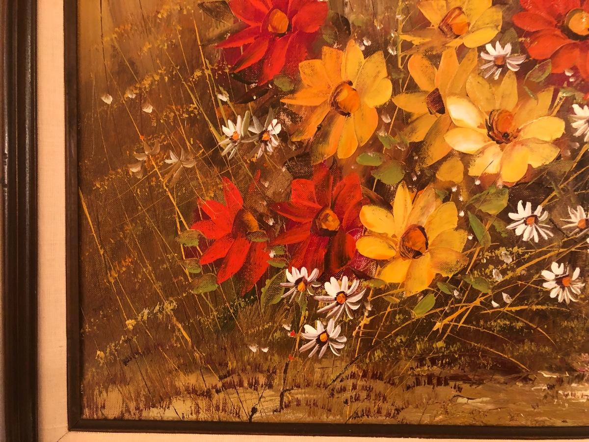 LOT 99U: Beautiful Wood Framed Floral Wall Art Signed NORA