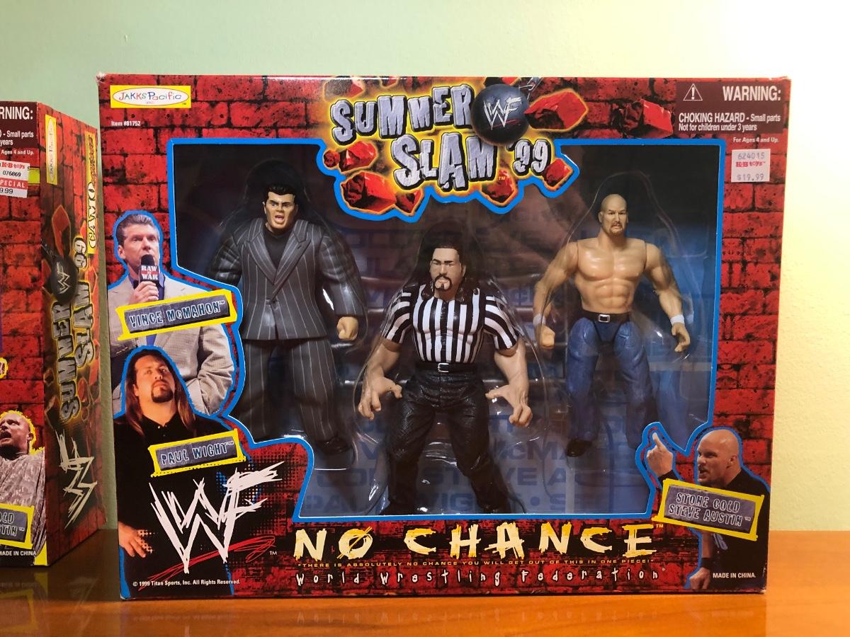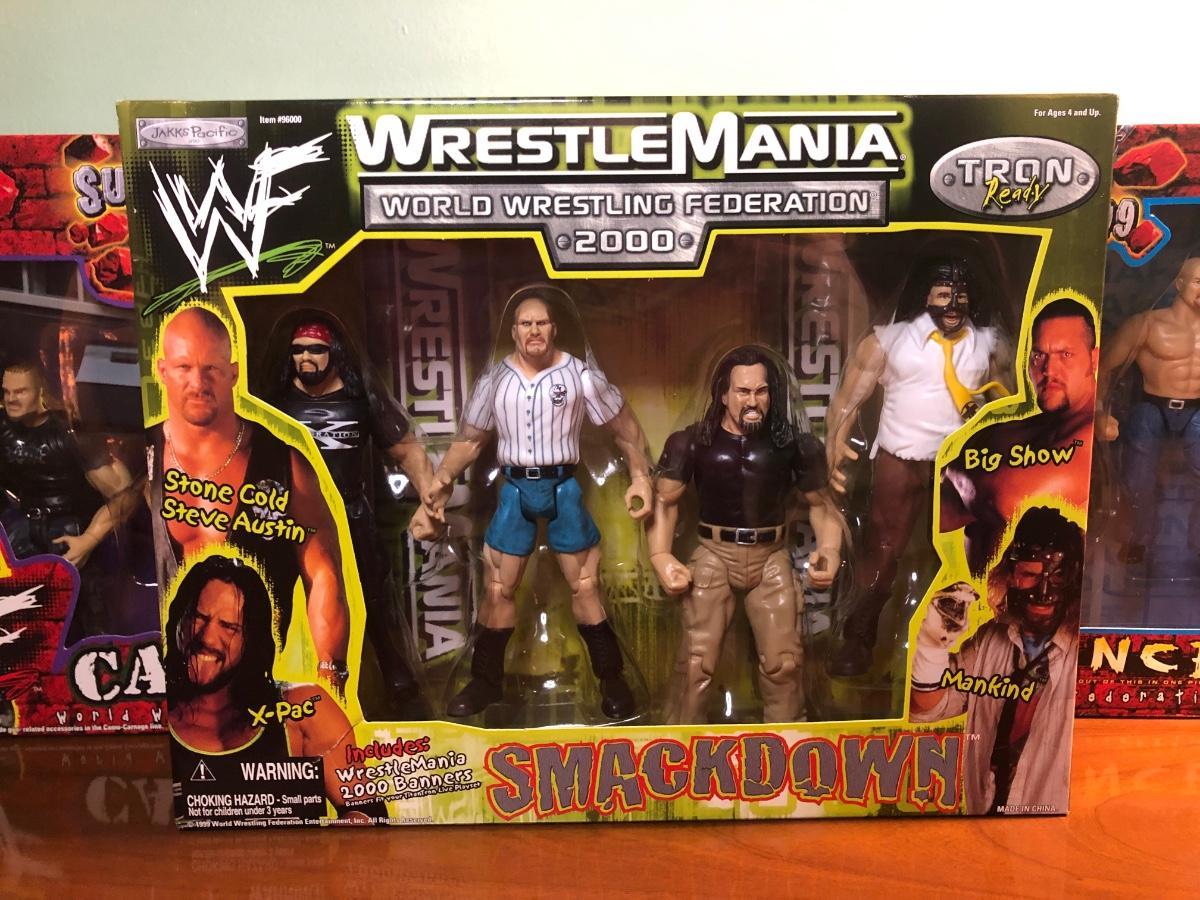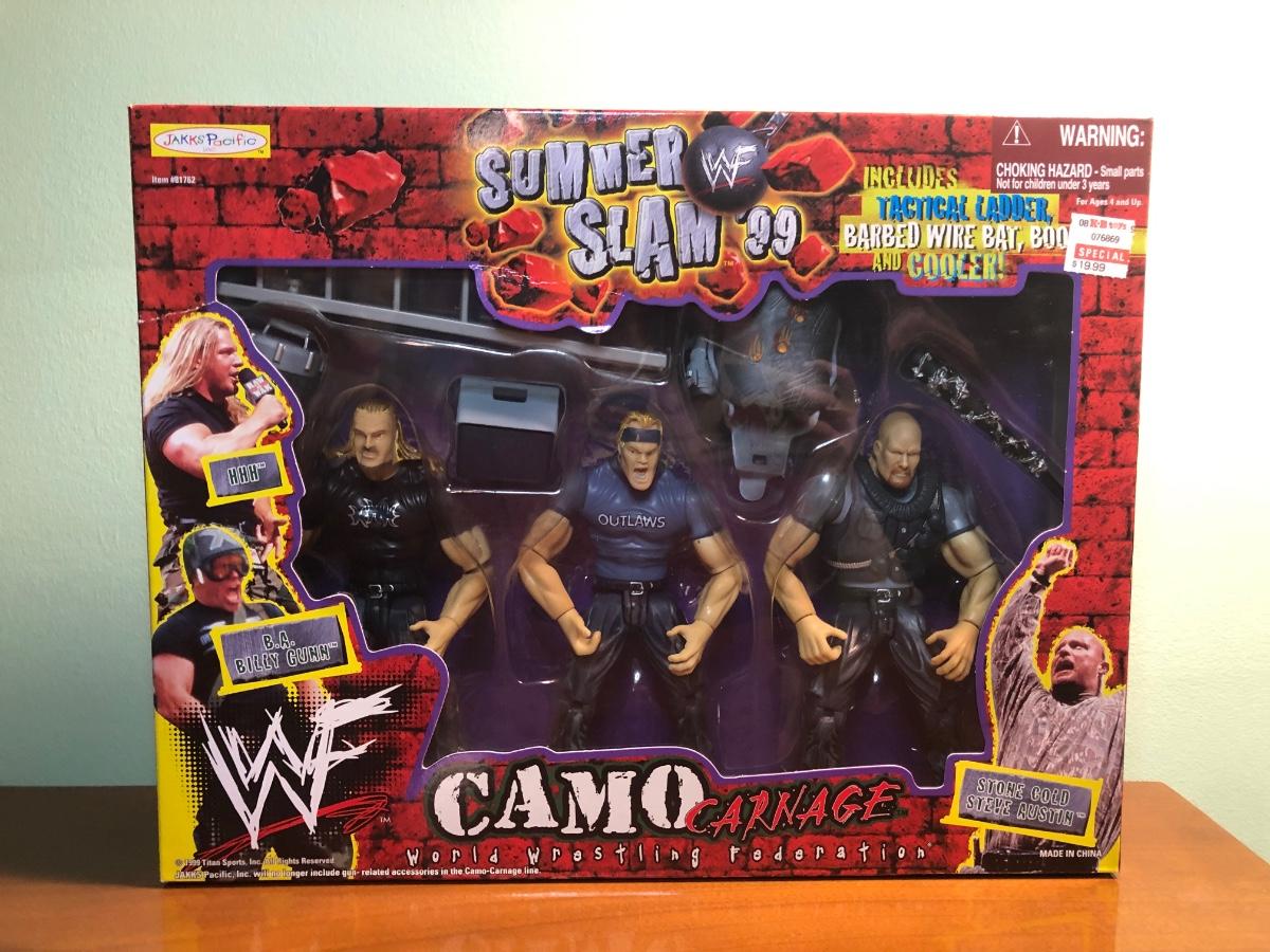 LOT 100MBC: Set of 3 Jaaks WWF Westling 3 & 4 Pack Sets - Wrestle Mania 2000 - Smackdown: Summer Slam '99 - No Chance; and Summer Slam 99" Camo Carnage