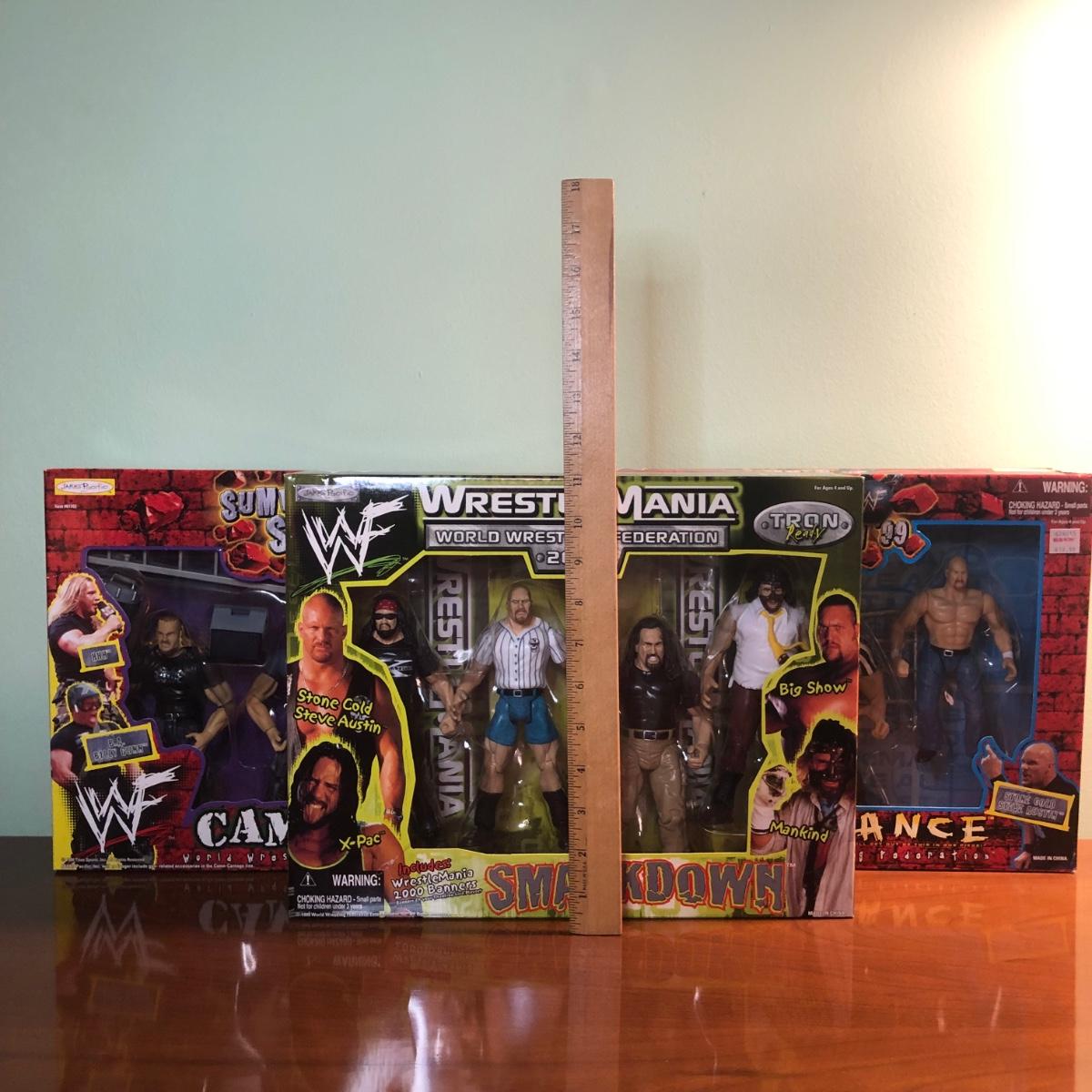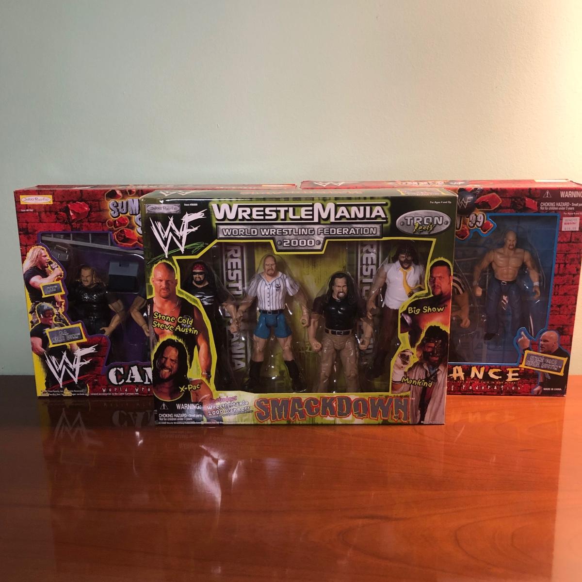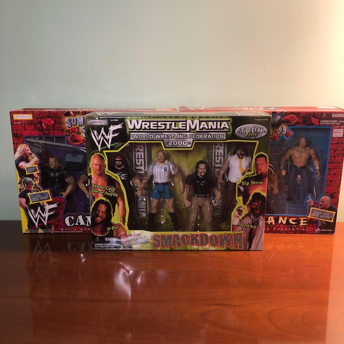 LOT 100MBC: Set of 3 Jaaks WWF Westling 3 & 4 Pack Sets - Wrestle Mania 2000 - Smackdown: Summer Slam '99 - No Chance; and Summer Slam 99" Camo Carnage