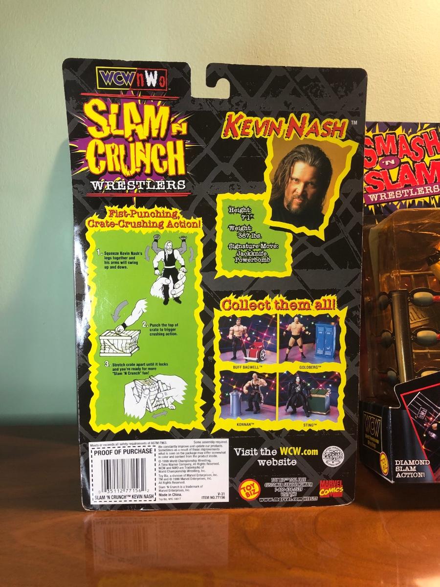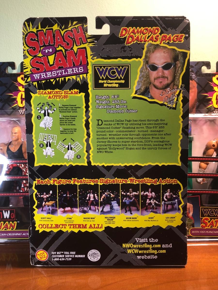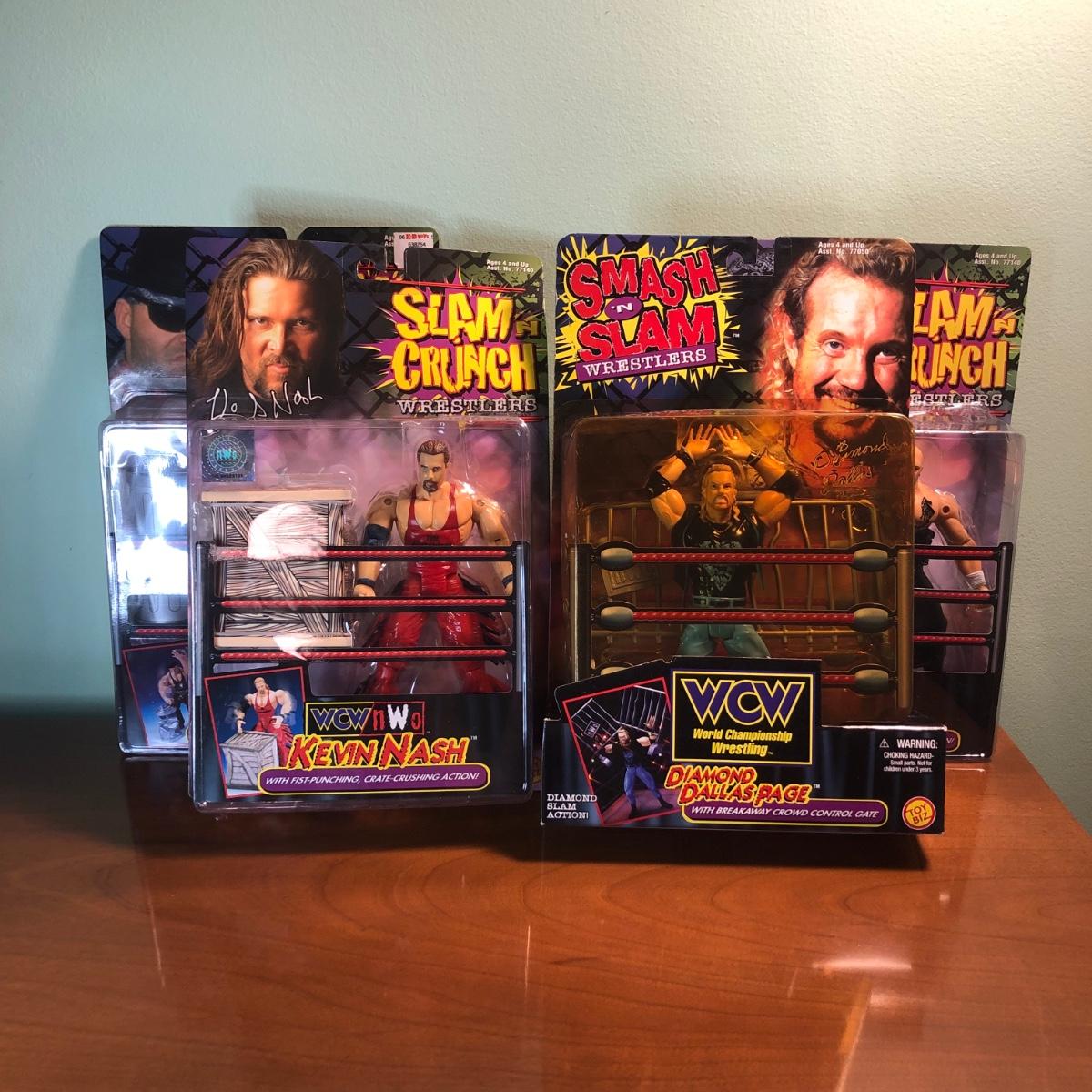 LOT 102MBC: NIP 1999 Toy Biz World Championship Wrestling Figures - Smash 'n Slam Diamond Dallas Page & New World Order Slam 'n Crunch - Kevin Nash, Konnan & Saturn