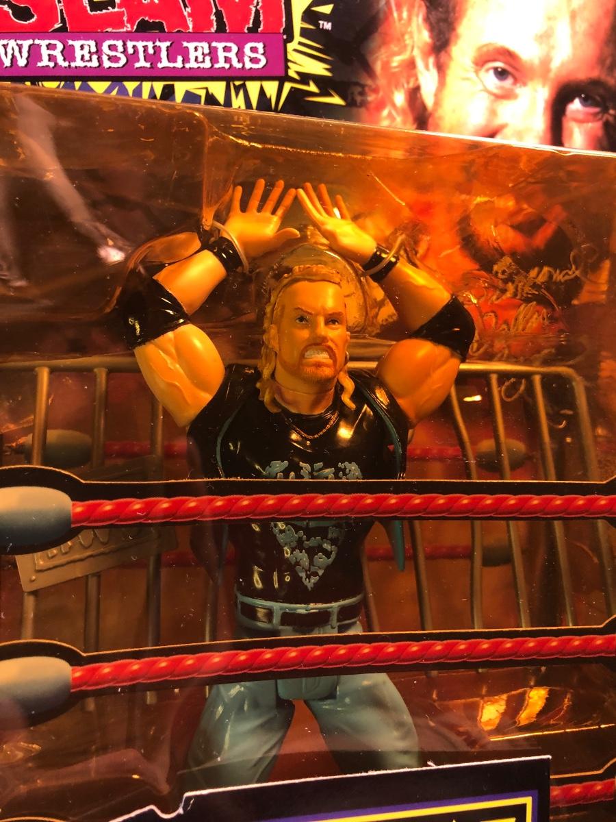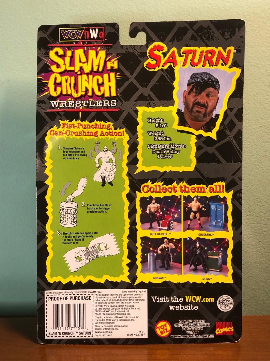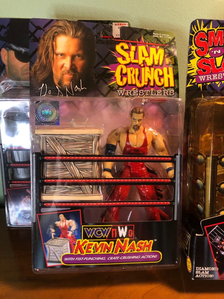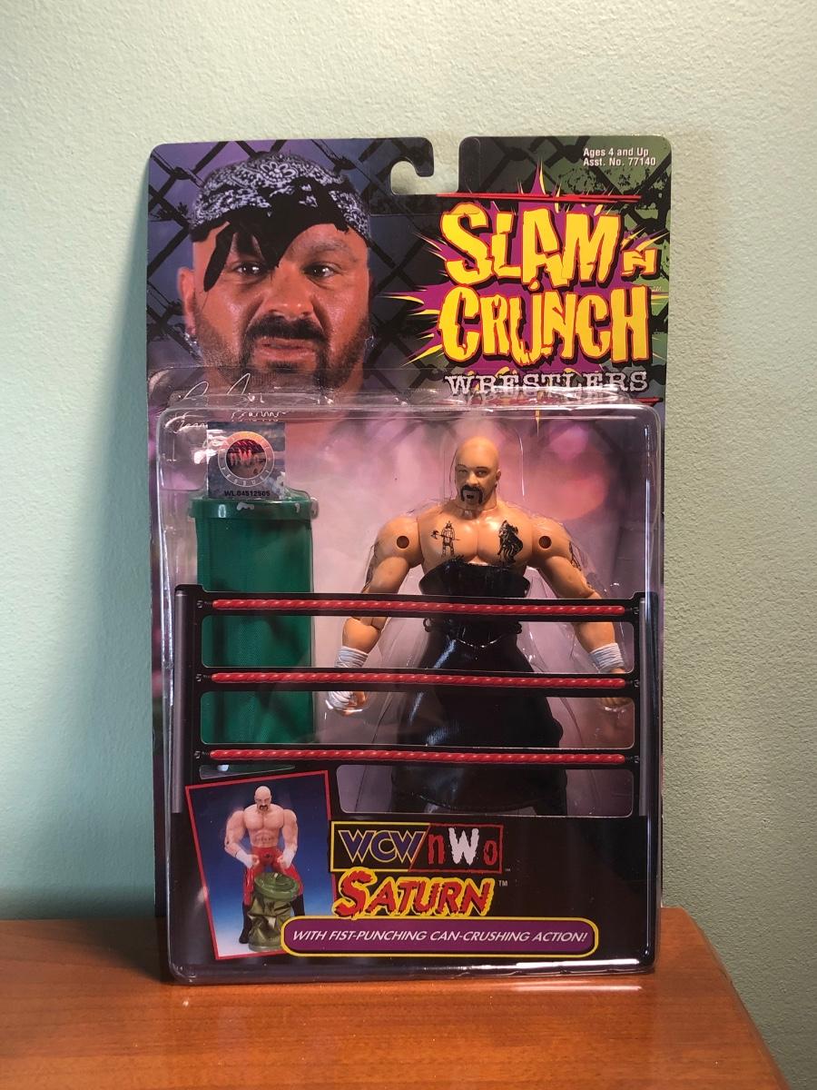 LOT 102MBC: NIP 1999 Toy Biz World Championship Wrestling Figures - Smash 'n Slam Diamond Dallas Page & New World Order Slam 'n Crunch - Kevin Nash, Konnan & Saturn