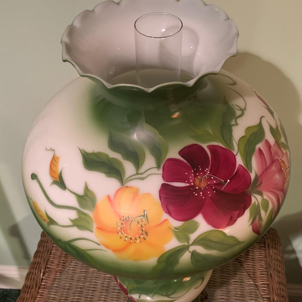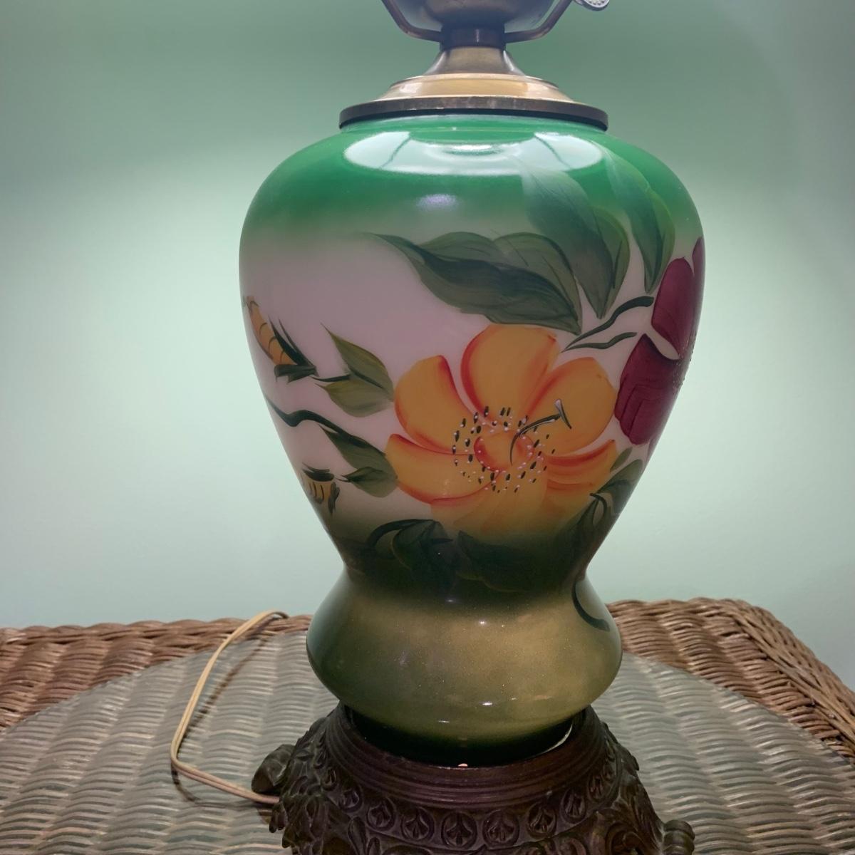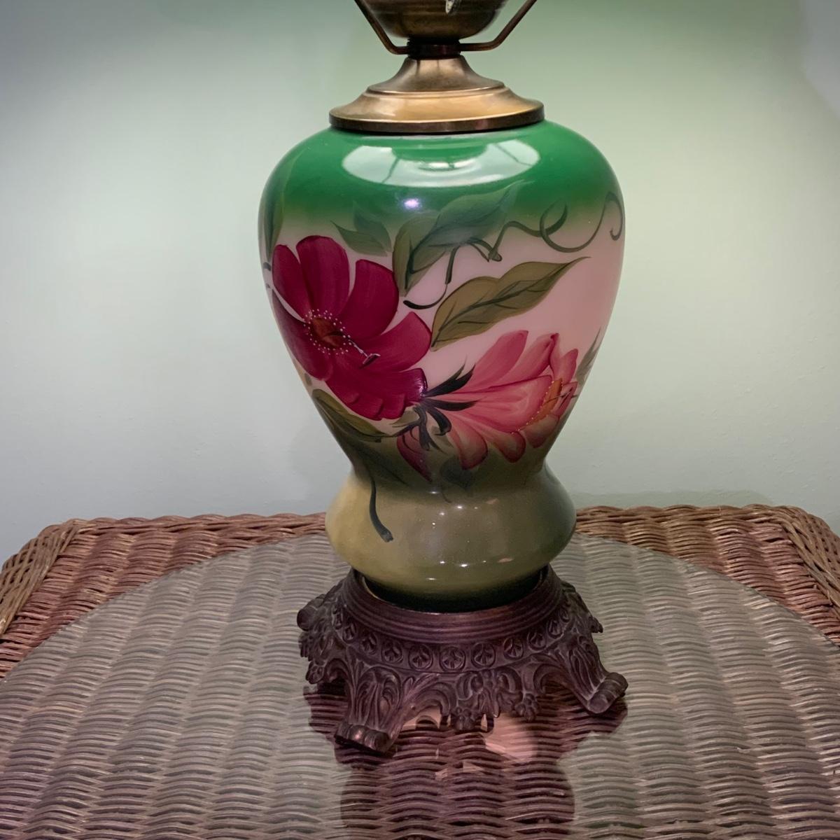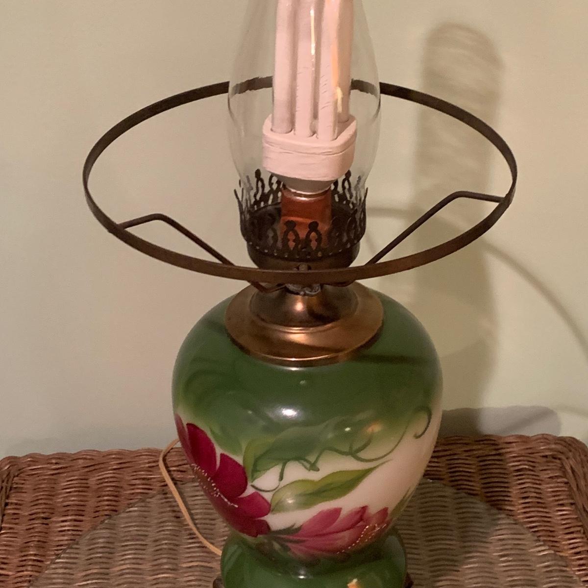 LOT 113: Vintage Floral Hurricane Style Electric Lamp