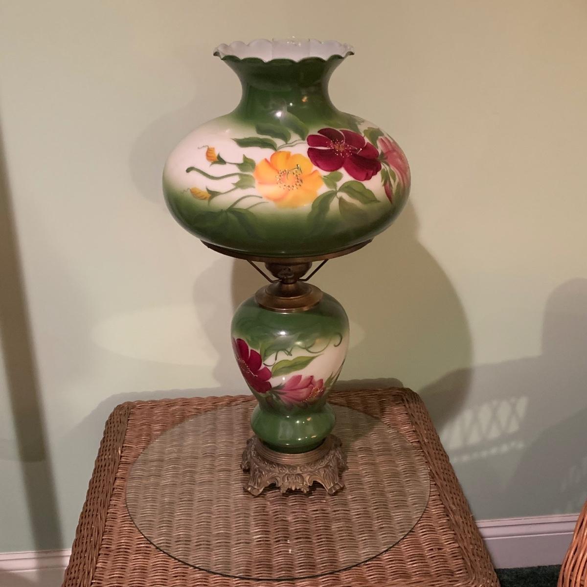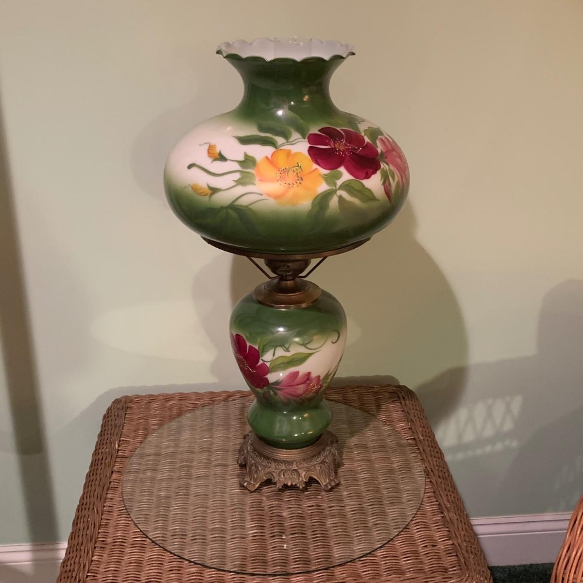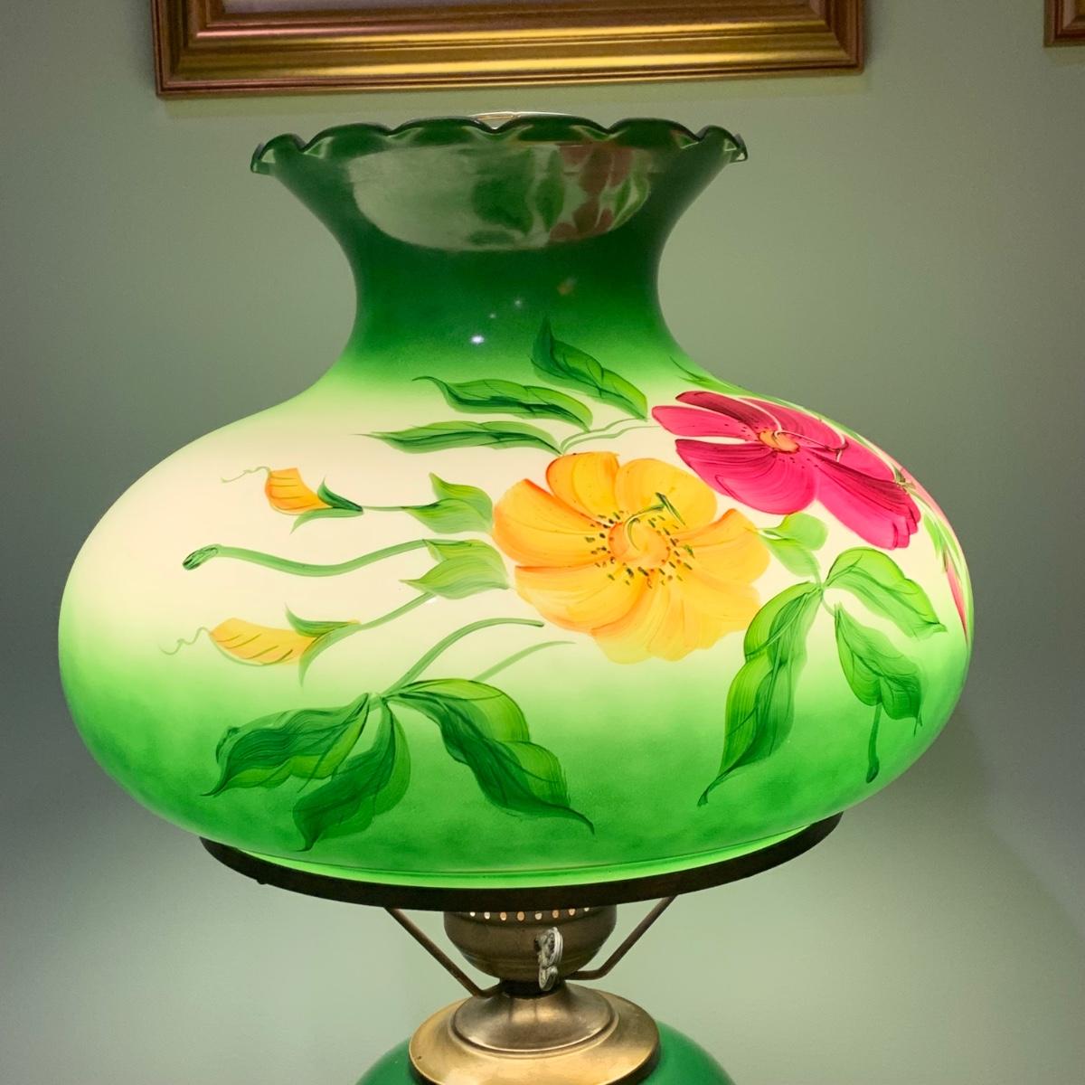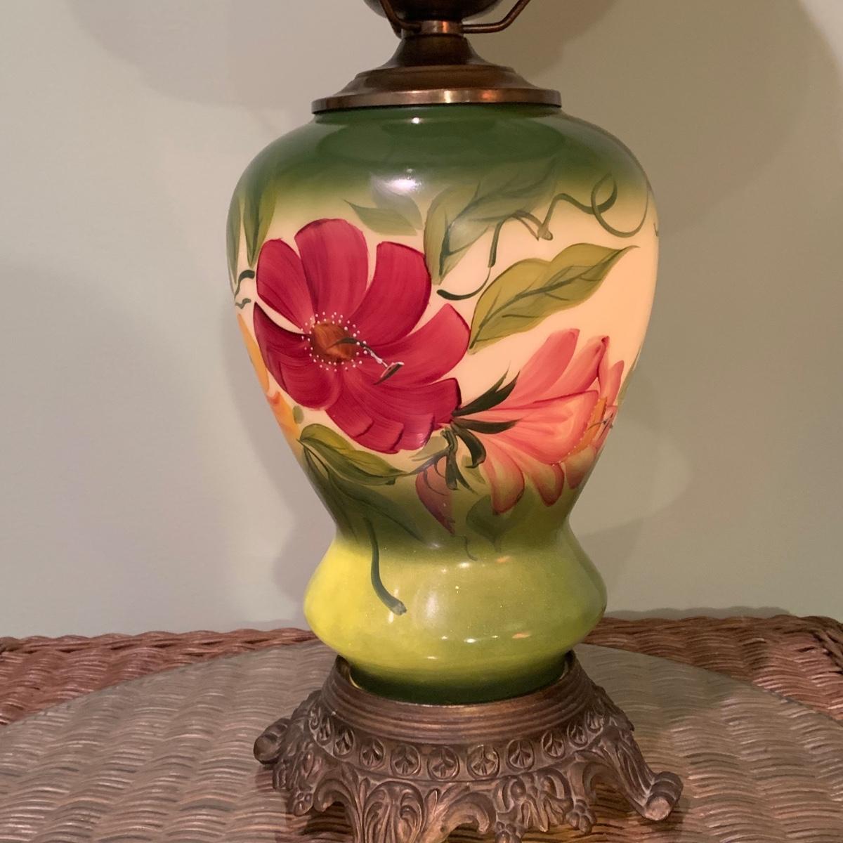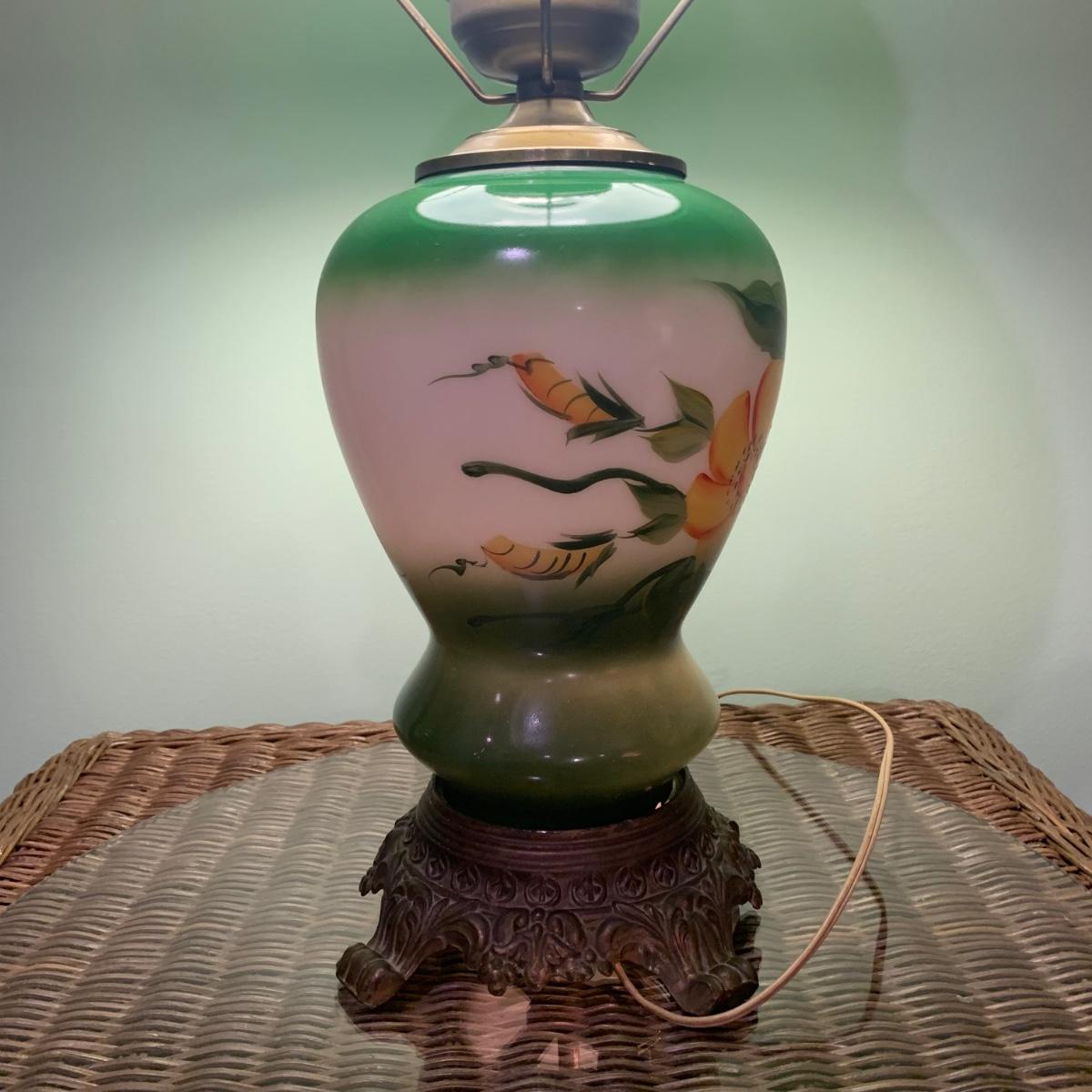 LOT 113: Vintage Floral Hurricane Style Electric Lamp