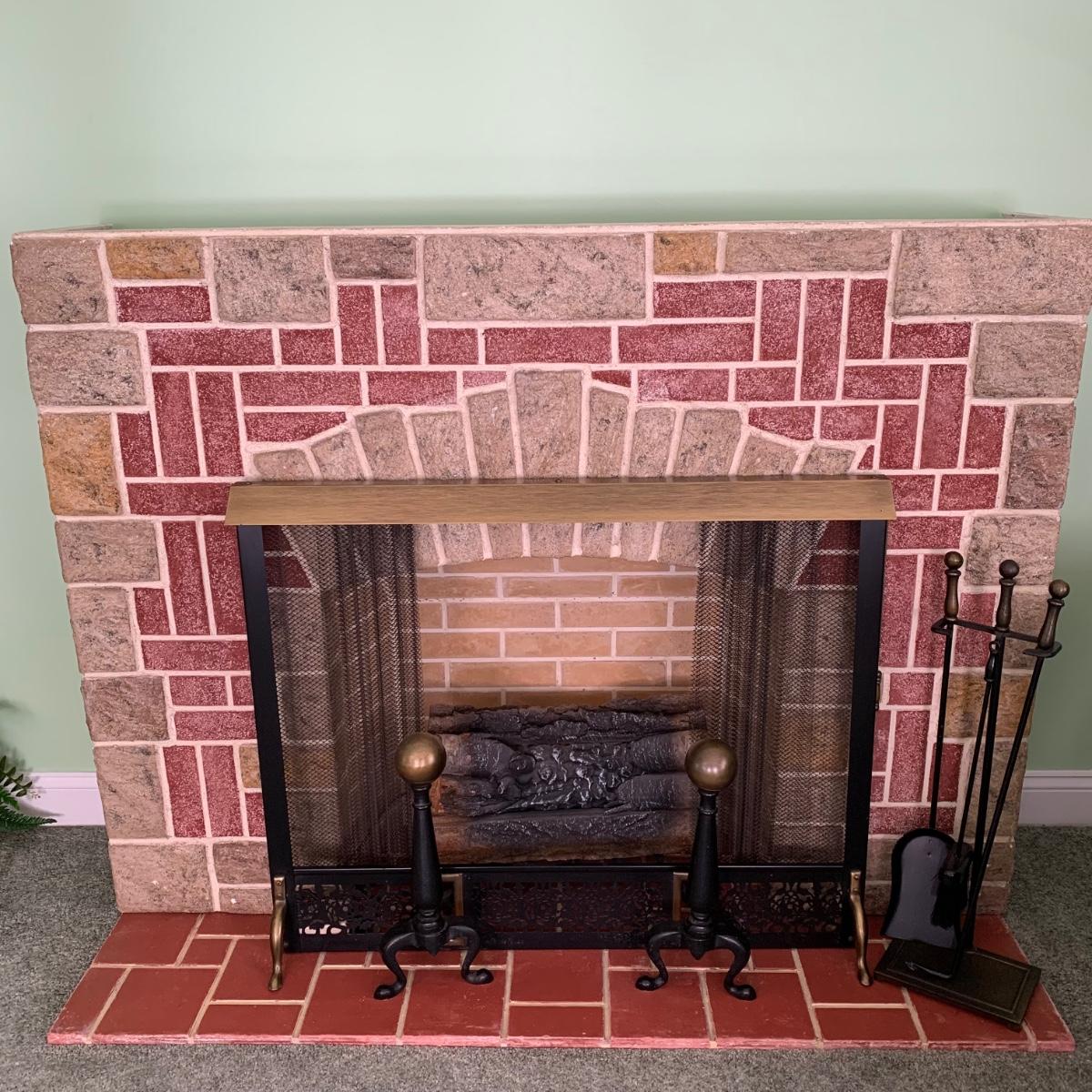LOT 120L: Brick & Stone Faux Fireplace with Accessories