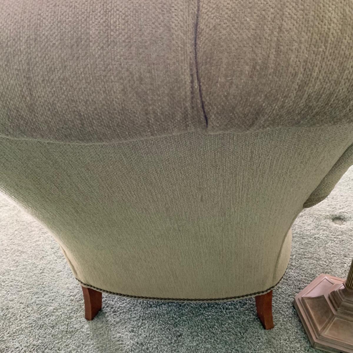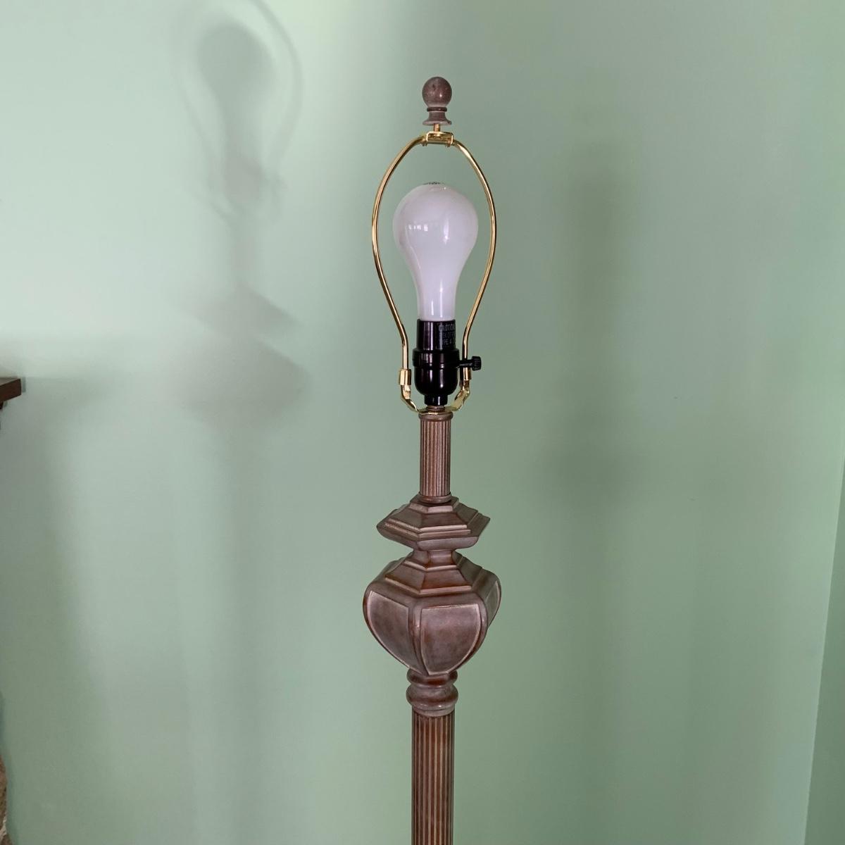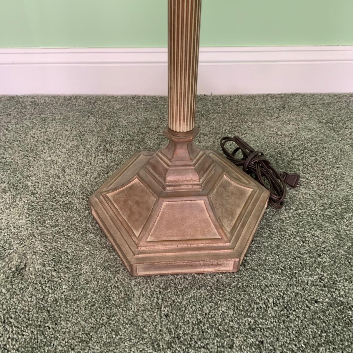 LOT 121L: Pre-Loved Upholstered Chair in Tan & Ceramic Based Floor Lamp